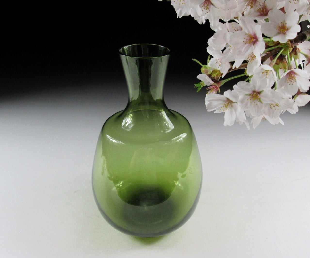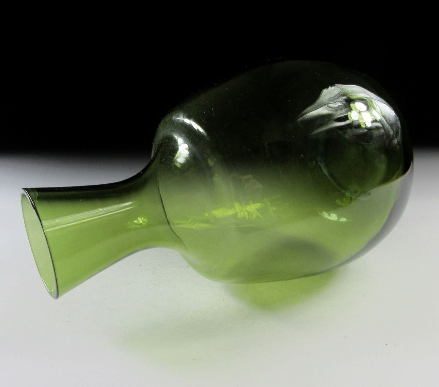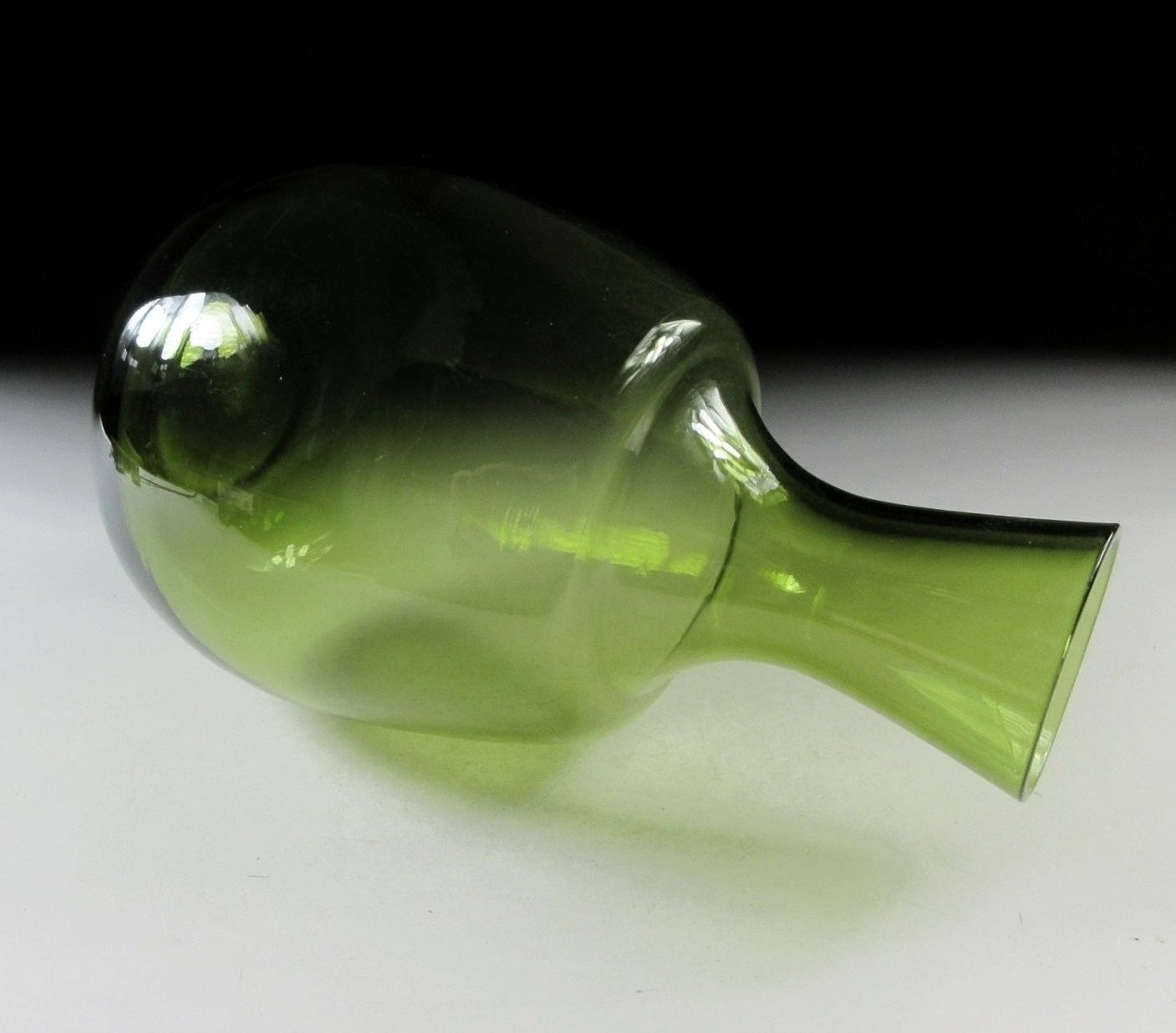 This listing is for a glass vase made around 40-50 years ago. It is made of beautiful green coloured glass and the opening is wide enough to accommodate a decent sized bunch of flowers. A few calla lilies would look especially beautiful in this piece, and the lovely fresh green colour is perfect for spring and early summer.