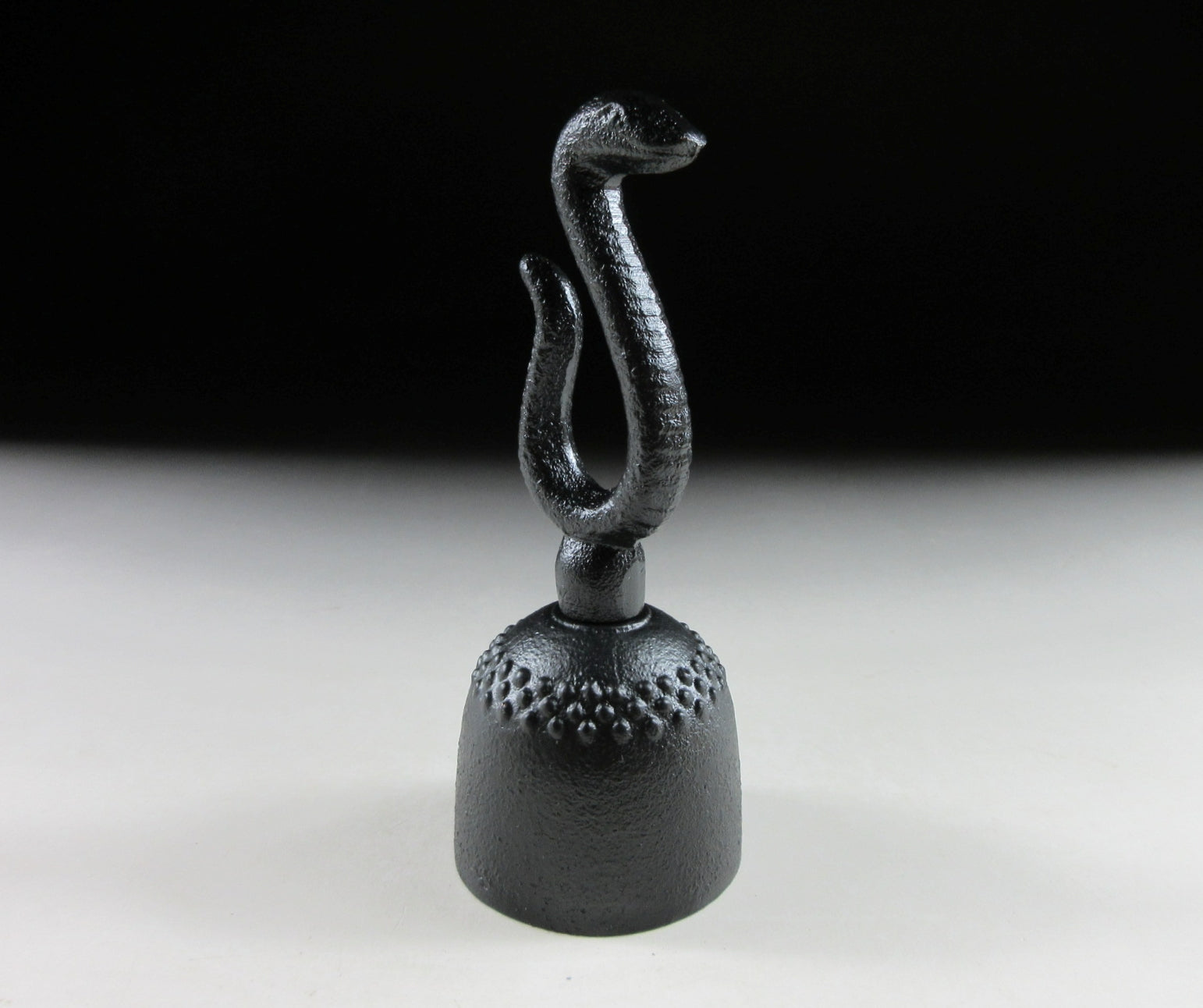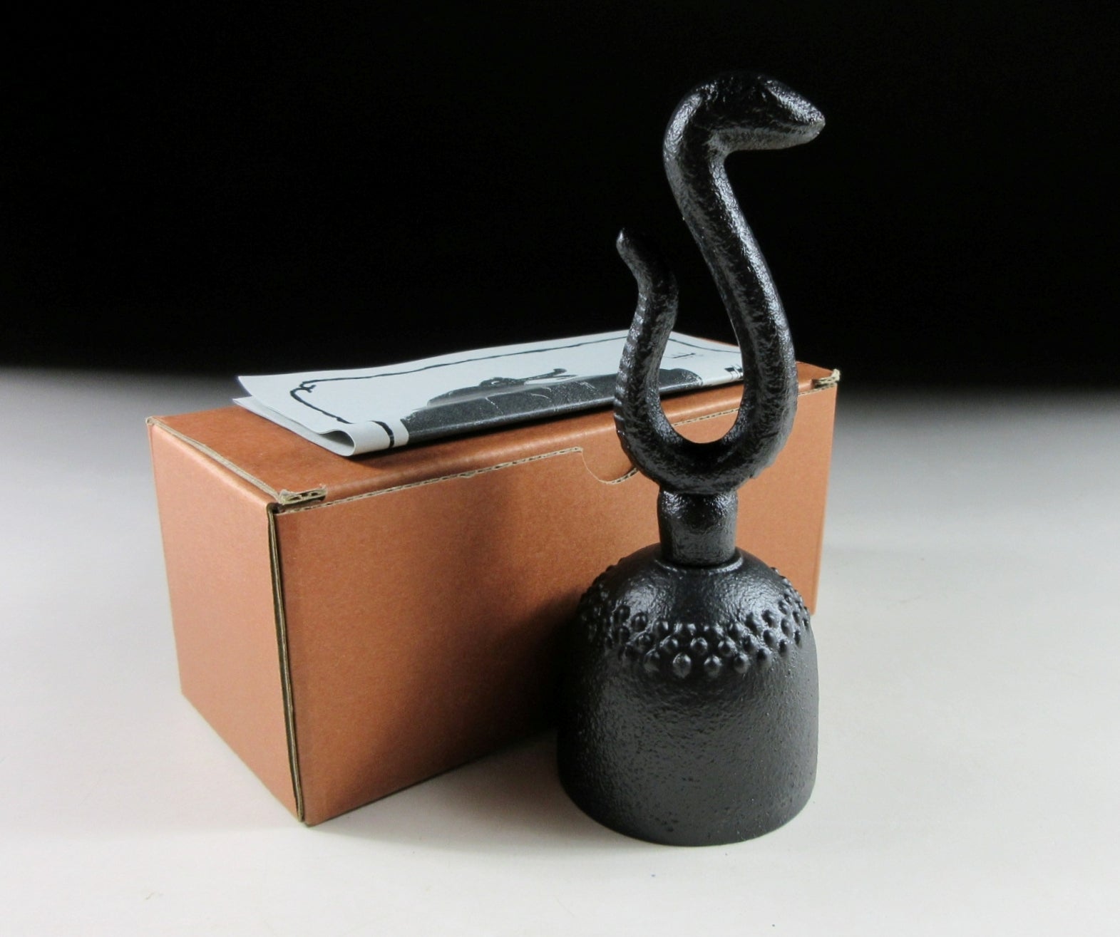 This listing is for a Nambu tekki tea ceremony bell made by Shuzendo. During tea ceremony, a bell can be used to signal the start of the ceremony or as a decorative item during the New Year. The bell in this listing is made of iron and the handle is moulded to resemble a snake. This piece was made to commemorate the Year of the Snake in 2025, however if you were born in the snake year you may wish to use it every year. It makes a pleasant sound when used, and comes with its original paper storage box. It also comes with a Japanese language profile paper about how to care for Nambu products.