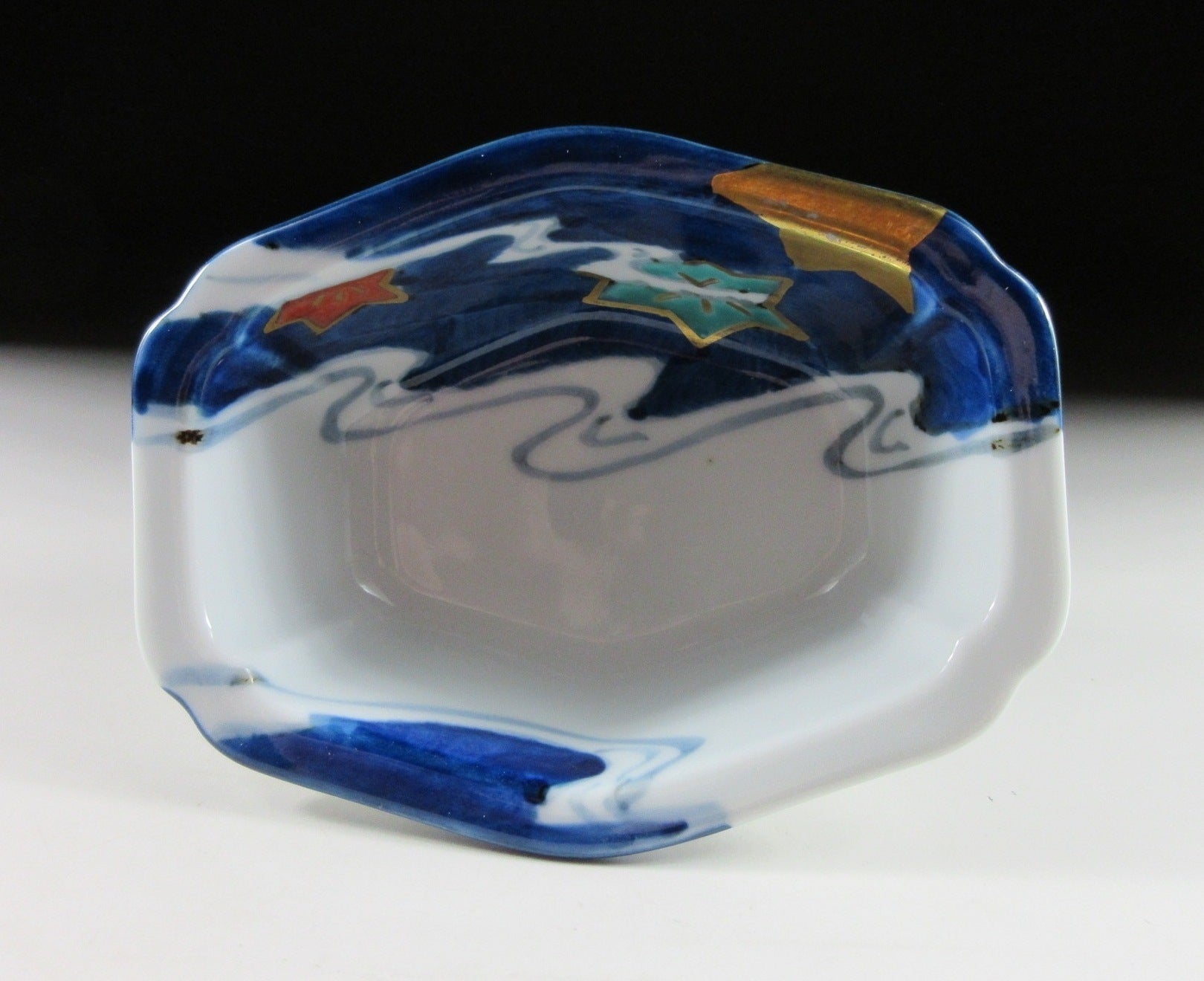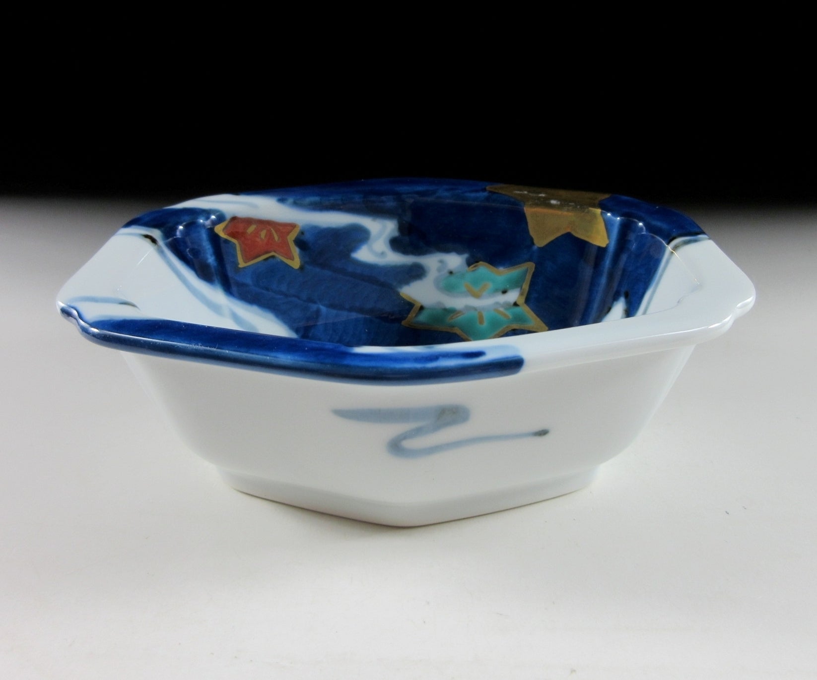 This listing is for a SMALL six-sided Arita-ware dish made around 10 years ago. It is made of porcelain and decorated with colourful momiji leaves and cobalt underglaze. This piece could be placed on a bathroom vanity and used for rings, watches and earrings. You could also use it for holding cotton buds or cotton balls. The stamp of the kiln can be found on the bottom.