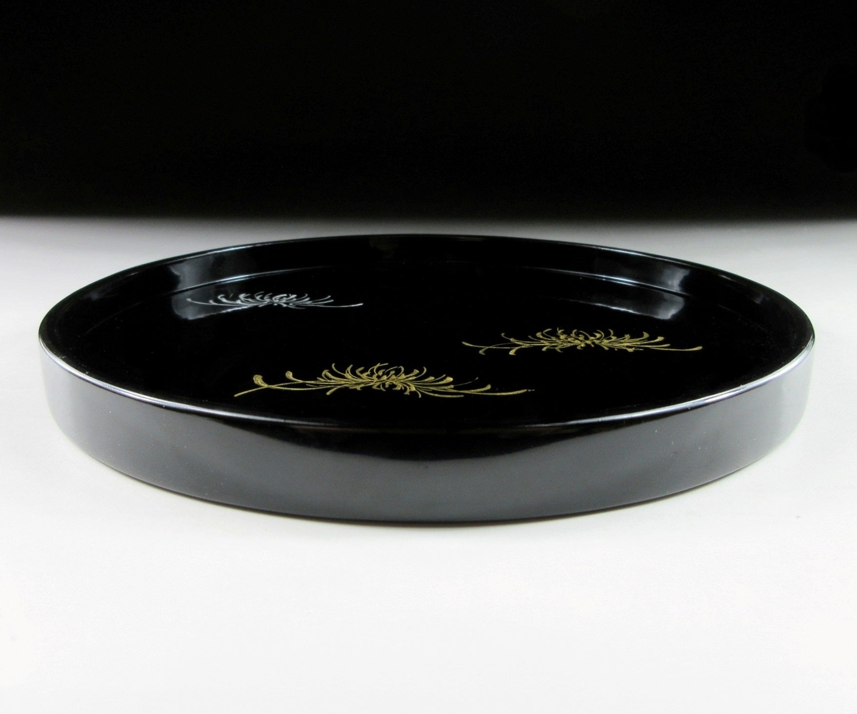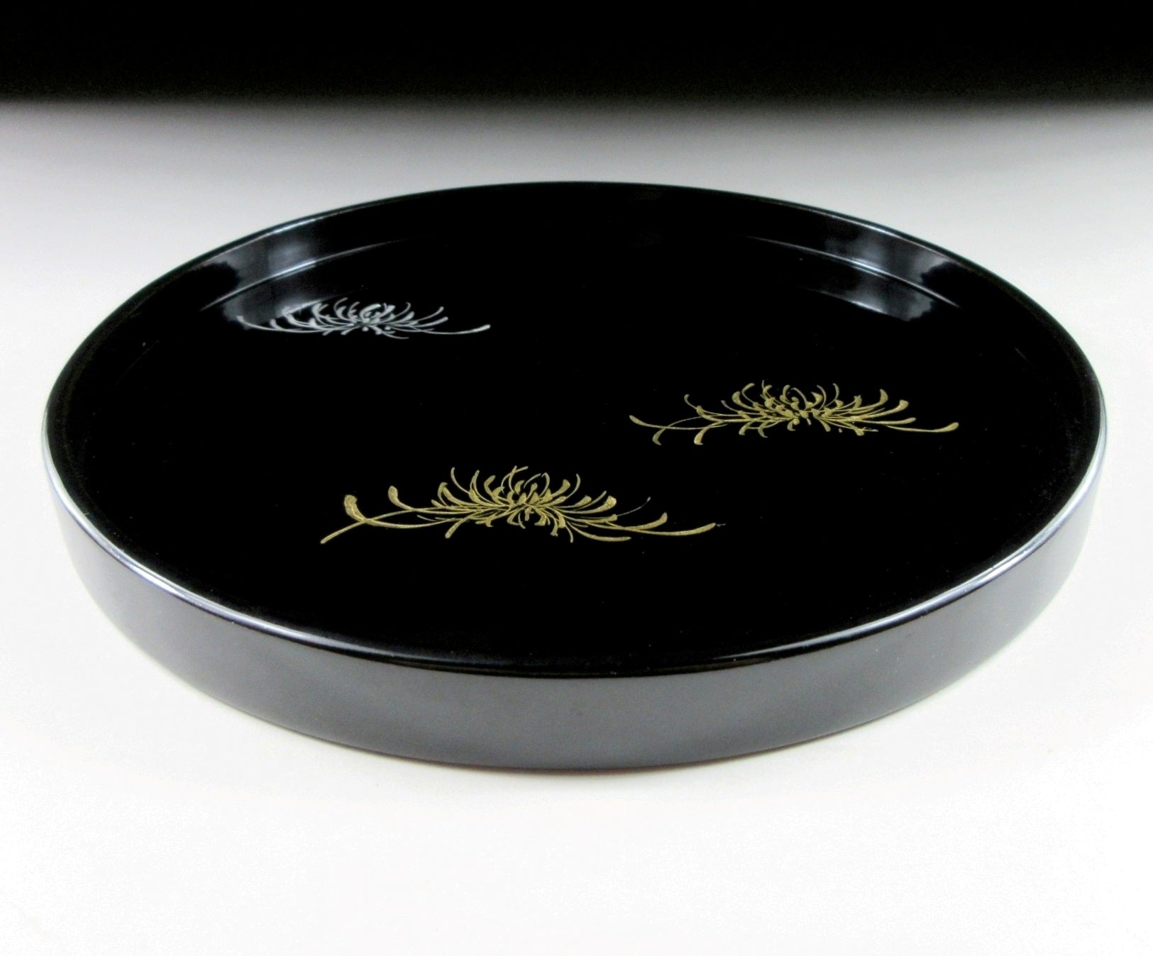This listing is for a splendid Wajima-nuri tray produced for Konishi Shogoro. It is made of wood and decorated with gold and silver makie chrysanthemums over a black lacquered base. It’s rather small in size and is ideally suited for serving a bowl of matcha along with some sweets. It comes with its original paper storage box, as well as a Japanese language profile paper. *PLEASE CHECK THE MEASUREMENTS CAREFULLY BEFORE ORDERING.