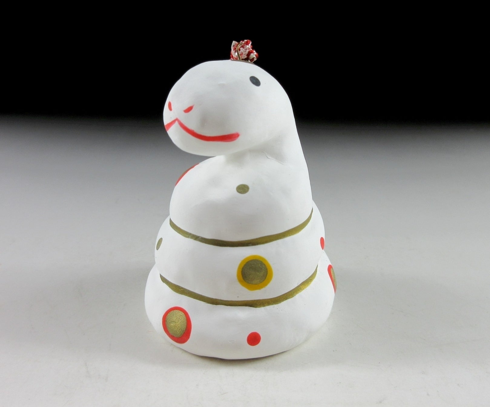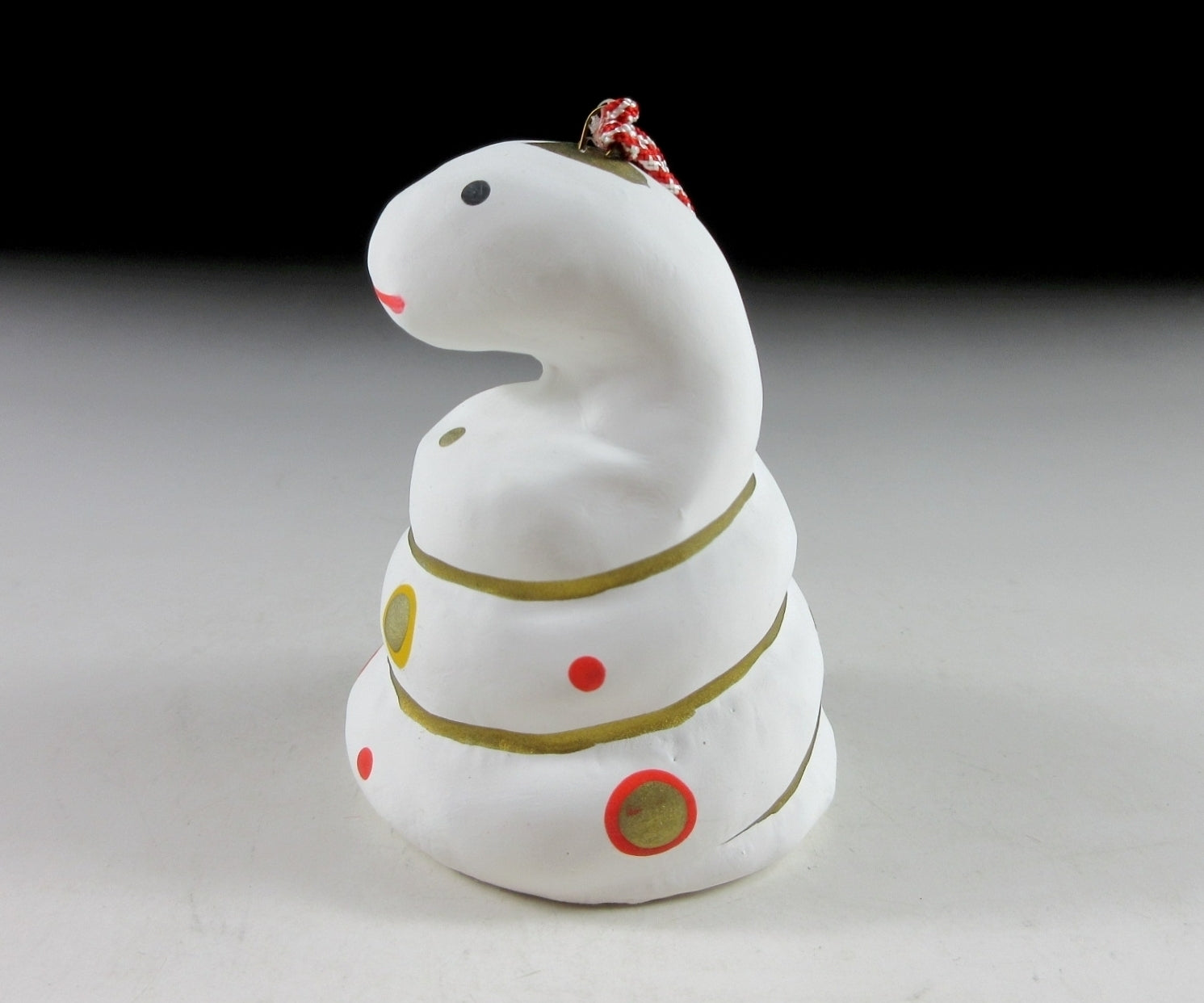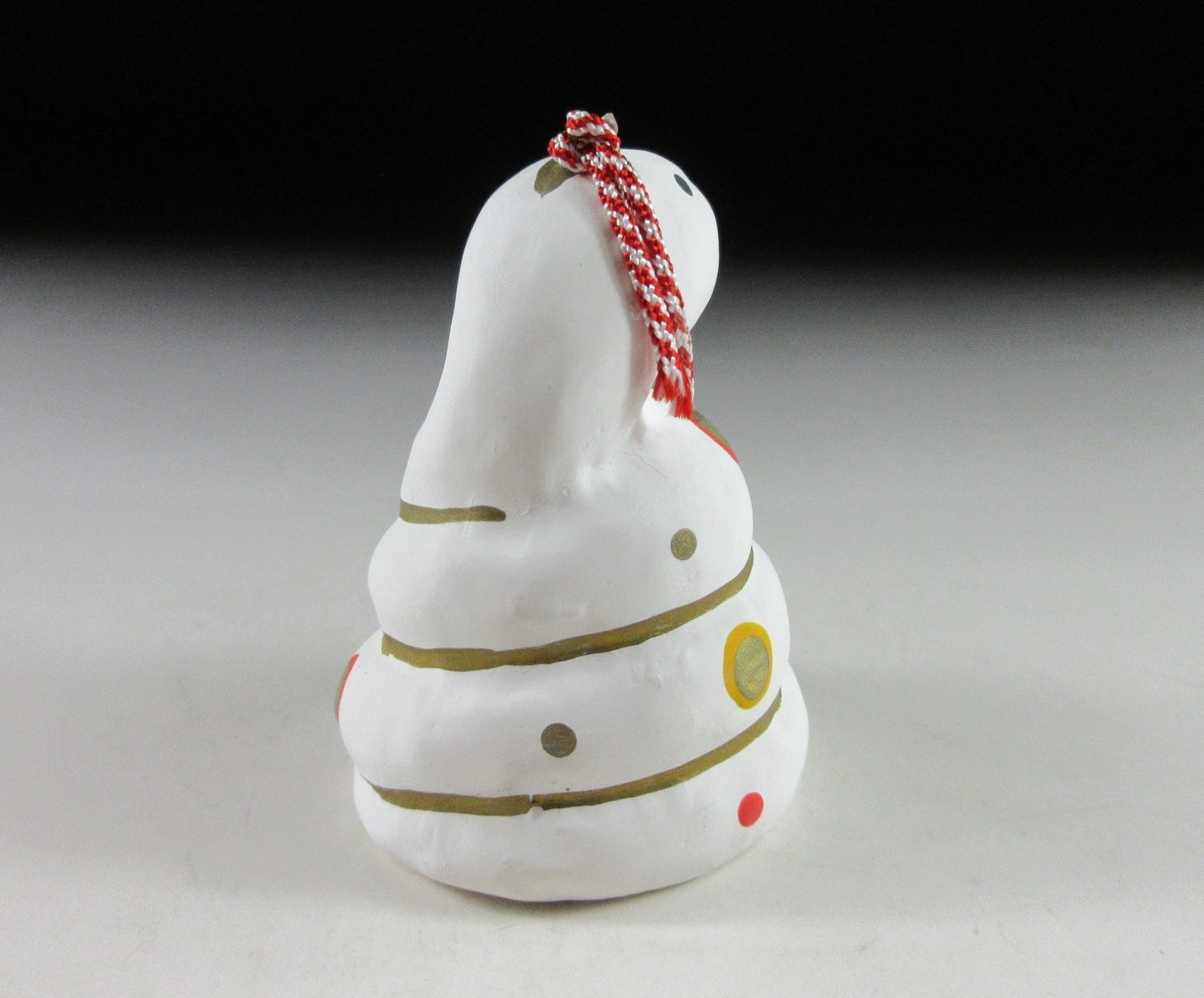 This listing is for a small papier-mâché snake with a metal bell inside. It is a lucky charm to celebrate the beginning of the New Year, 2025 being the Year of the Snake. White snakes are considered to be good luck in Japan, and are a symbol for Benten, the Japanese goddess of wealth. It comes with a small red mat, as well as two Japanese language blessings and information about the twelve zodiac animals. It also comes with a paper storage box so it can be stored until the next Year of the Snake.