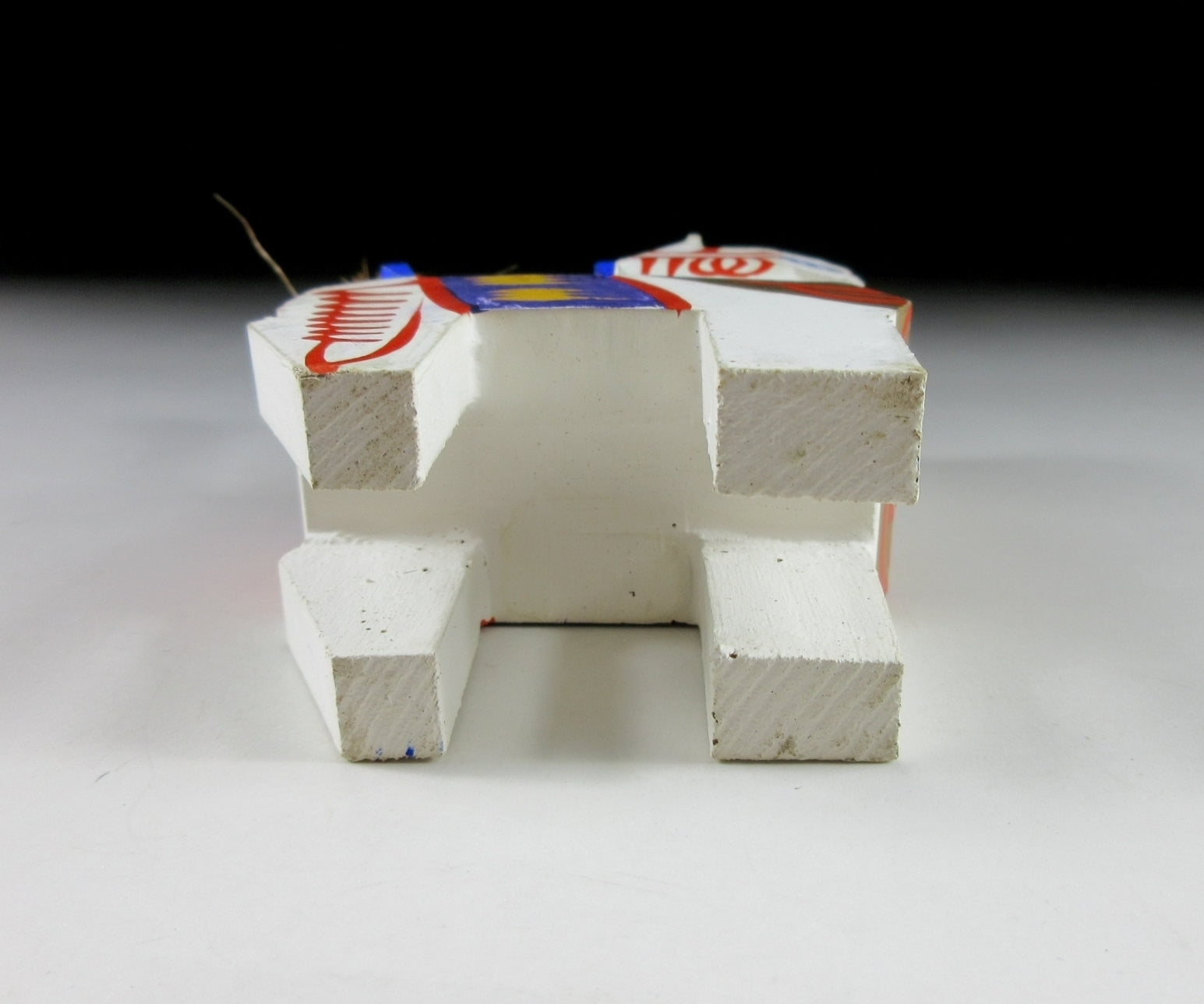 Some of the paint is worn and has chipped off, and there are some marks on the white painted parts and on the horse’s behind. The paper box and profile paper are both discoloured.
