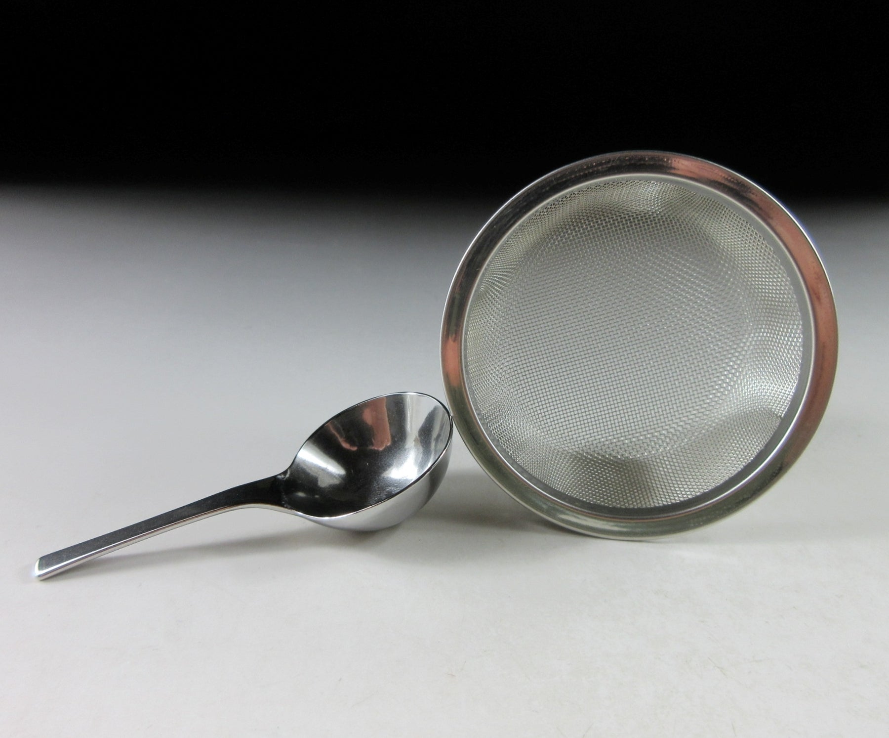 This listing is for a stainless steel matcha sieve with paper storage box. Matcha powder is scooped into the mesh and strained by the vibration of the metal fittings. Straining matcha before preparing tea breaks up lumps and enhances the flavour of the tea.