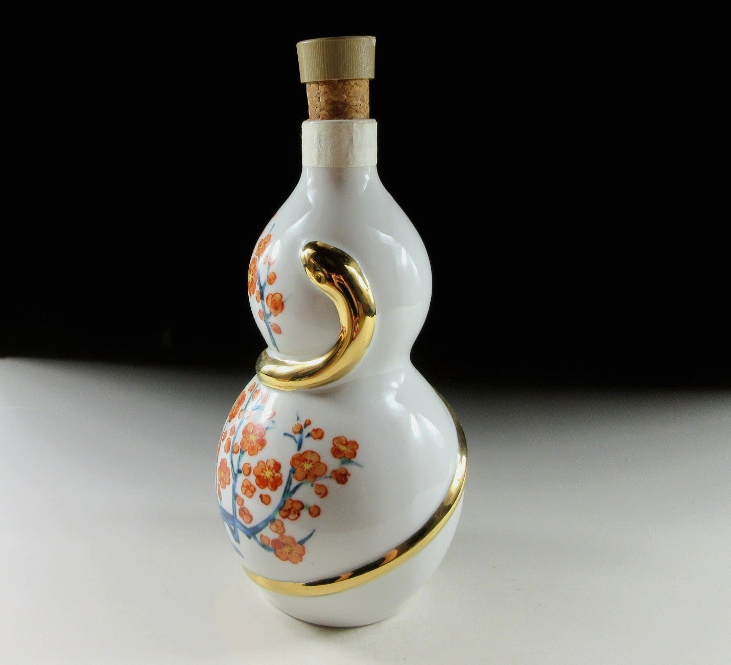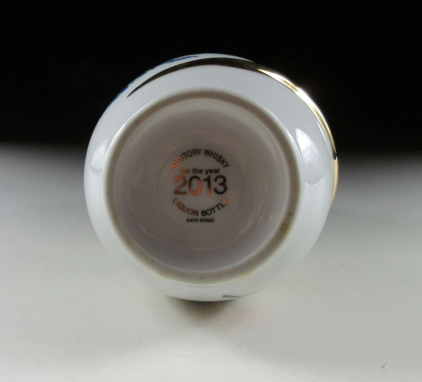 This listing is for an EMPTY Suntory Royal ceramic bottle. Each year Suntory releases a special zodiac edition of whisky, and this bottle was made to commemorate the Year of the Snake back in 2013. It holds 600ml and still has its original cork. Please note that this bottle is empty, the whisky is long gone. It would make a lovely vase or bar decoration.