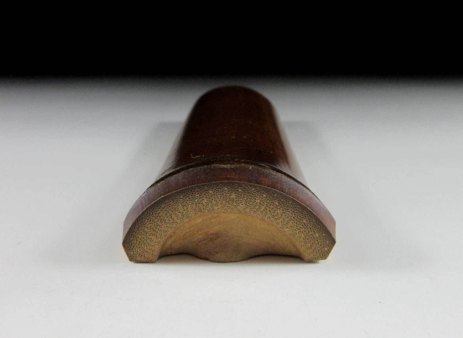 This listing is for a Takayama ‘susutake’ smoked bamboo chago. A chago is a scoop for taking tea leaves from a chatsubo. They are generally made of bamboo and shaped like half a cylinder. The bamboo used for this particular chago gets its name from the colour of bamboo roofing in old thatched-roof minka. Over time, bamboo roofing beams become darkened due to constant exposure to the smoke from the central hearth. Susutake tea utensils undergo a long curing process, which makes them very tough and durable. This item was made in Nara using locally sourced bamboo.