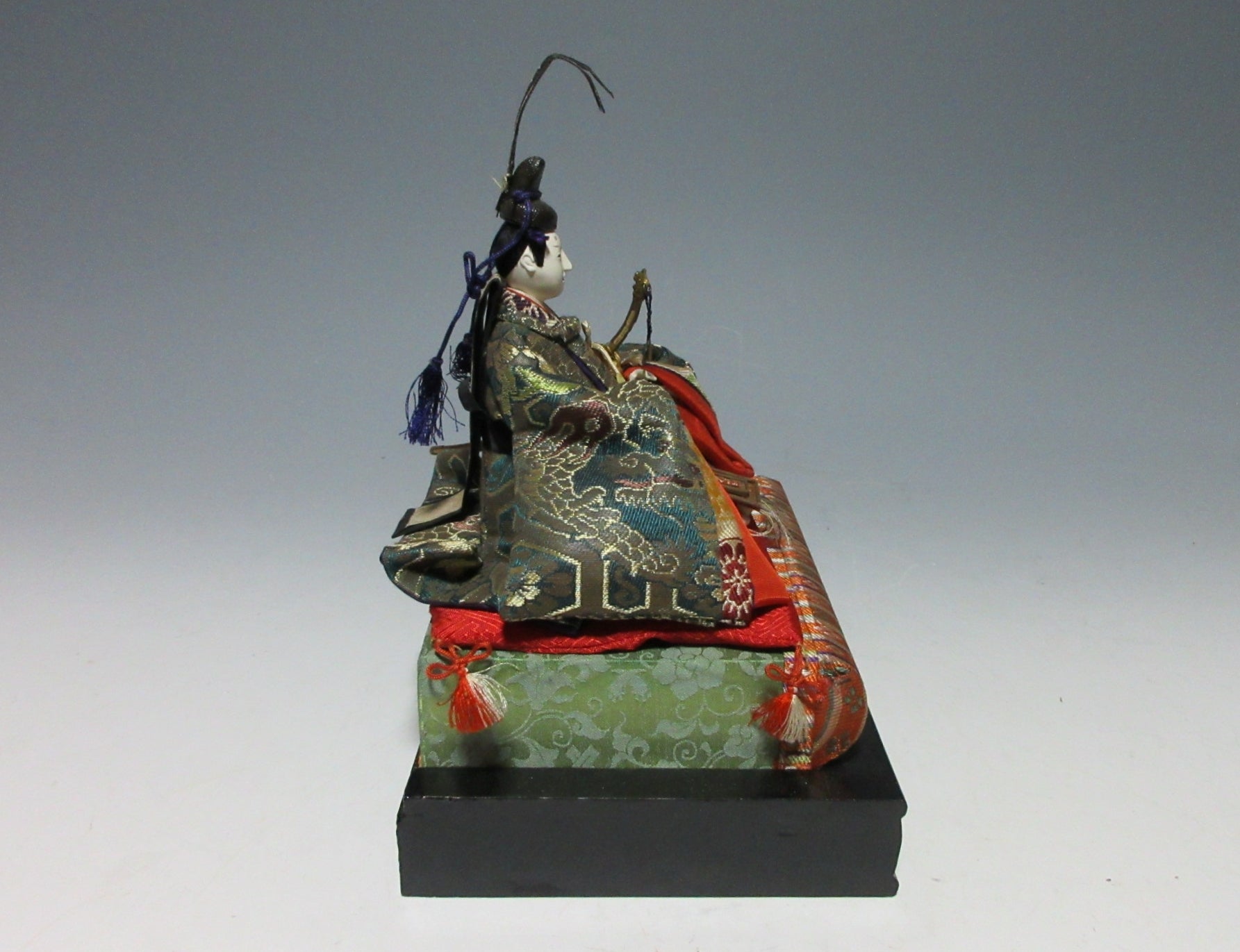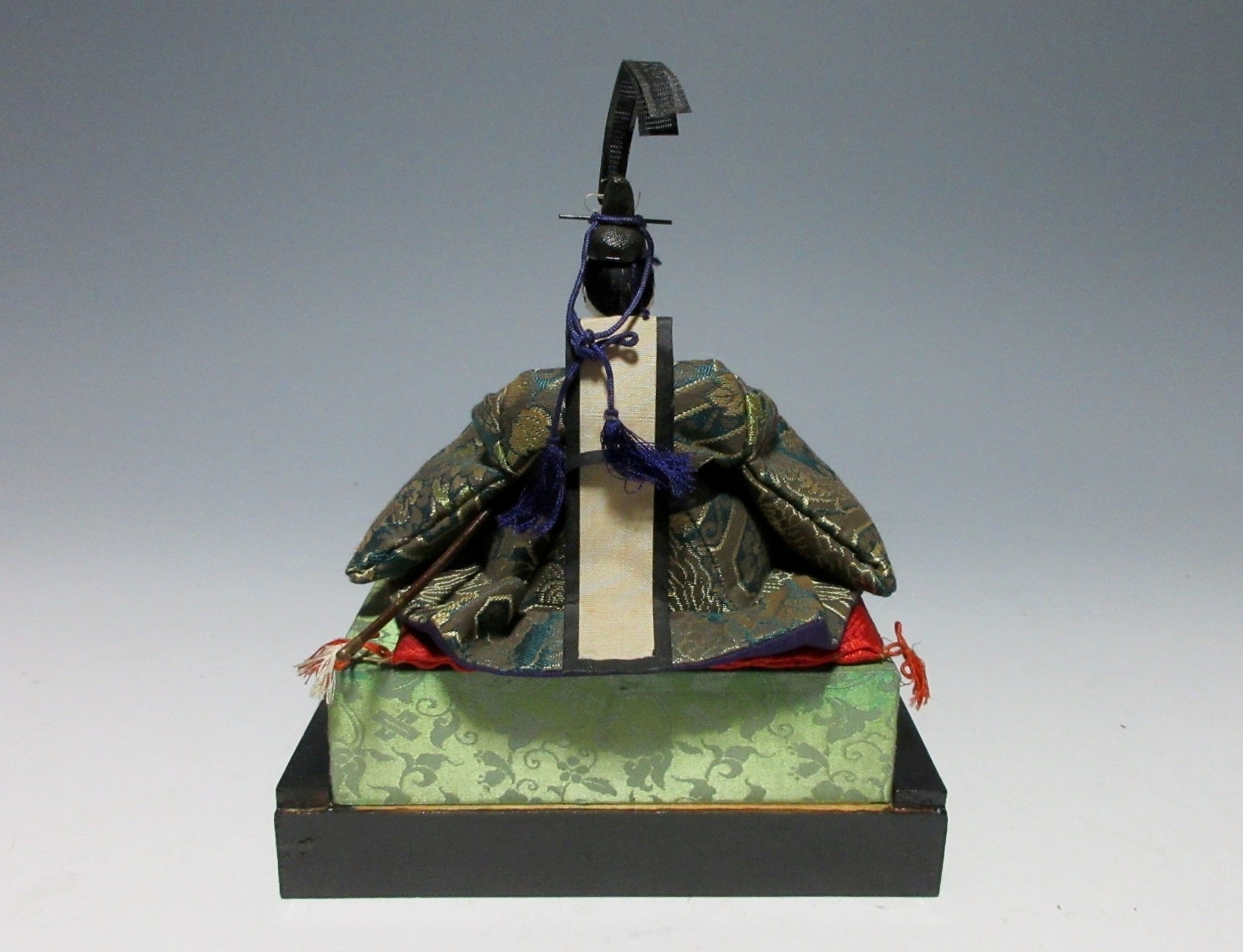 This listing is for an Emperor and Empress Dairi-bina doll pair dating back to the early 1930s. They were created for Mitsukoshi Ginza Department store and belonged to a local family here in Setagaya in Tokyo. Their costumes are made of silk and are in excellent condition considering the age of the dolls. It’s difficult to find dolls in such good condition as children often couldn’t resist the temptation to play with them. The dolls faces and limbs are painted with gofun pigment and their eyes are made of carved bone. Each doll is seated on a wooden stand decorated with lacquer and silk. According to various blog entries these dolls were possibly made by Maruhei Ooki Doll shop in Kyoto. They come with their original wooden storage box and were very well taken care of.