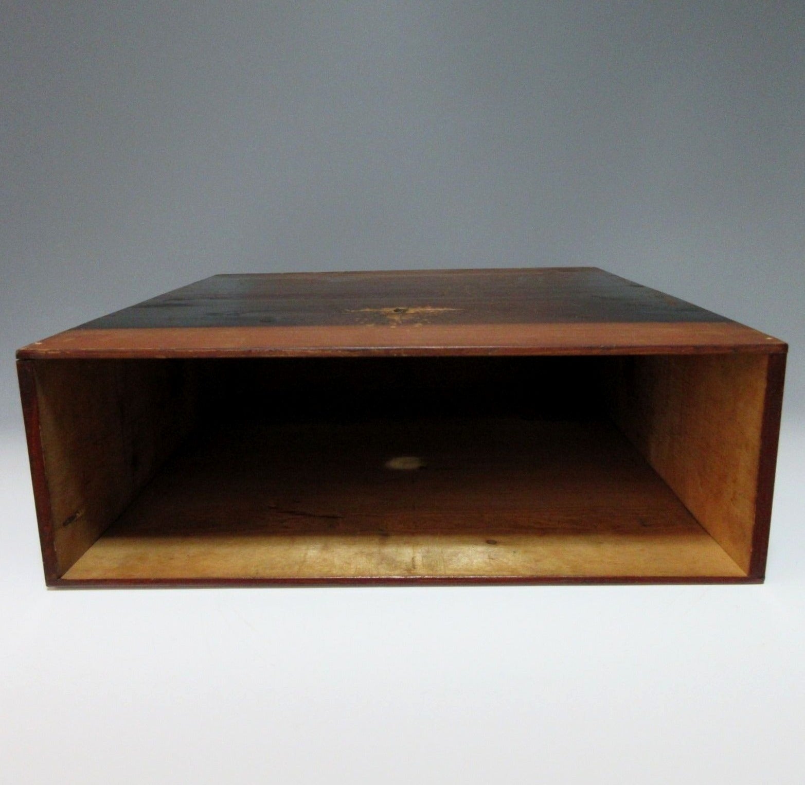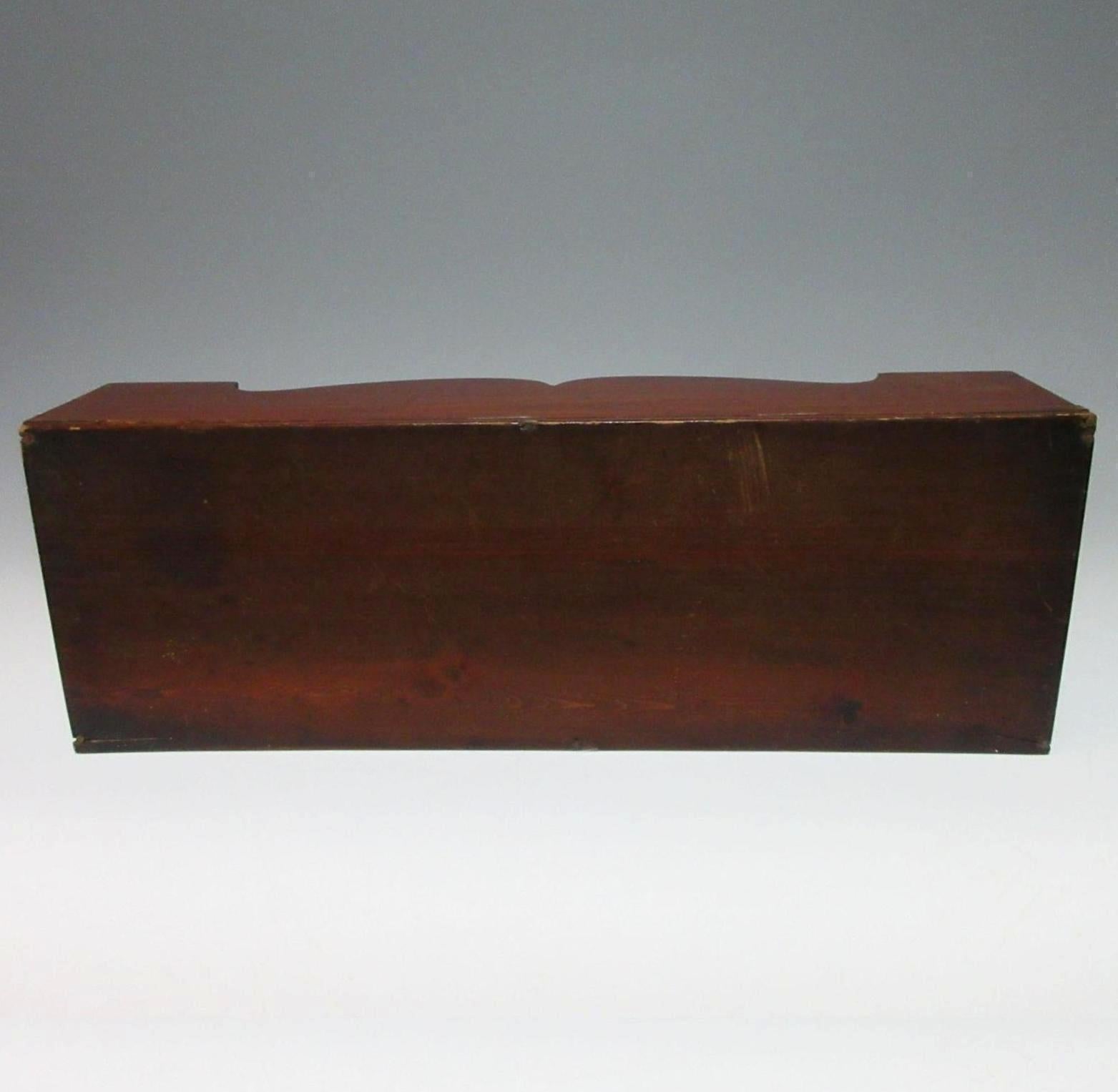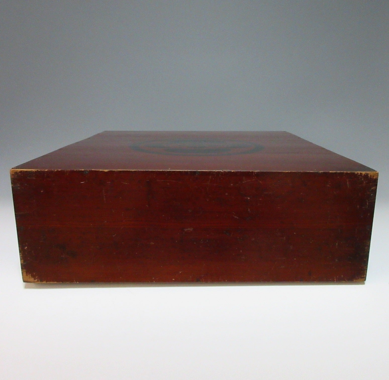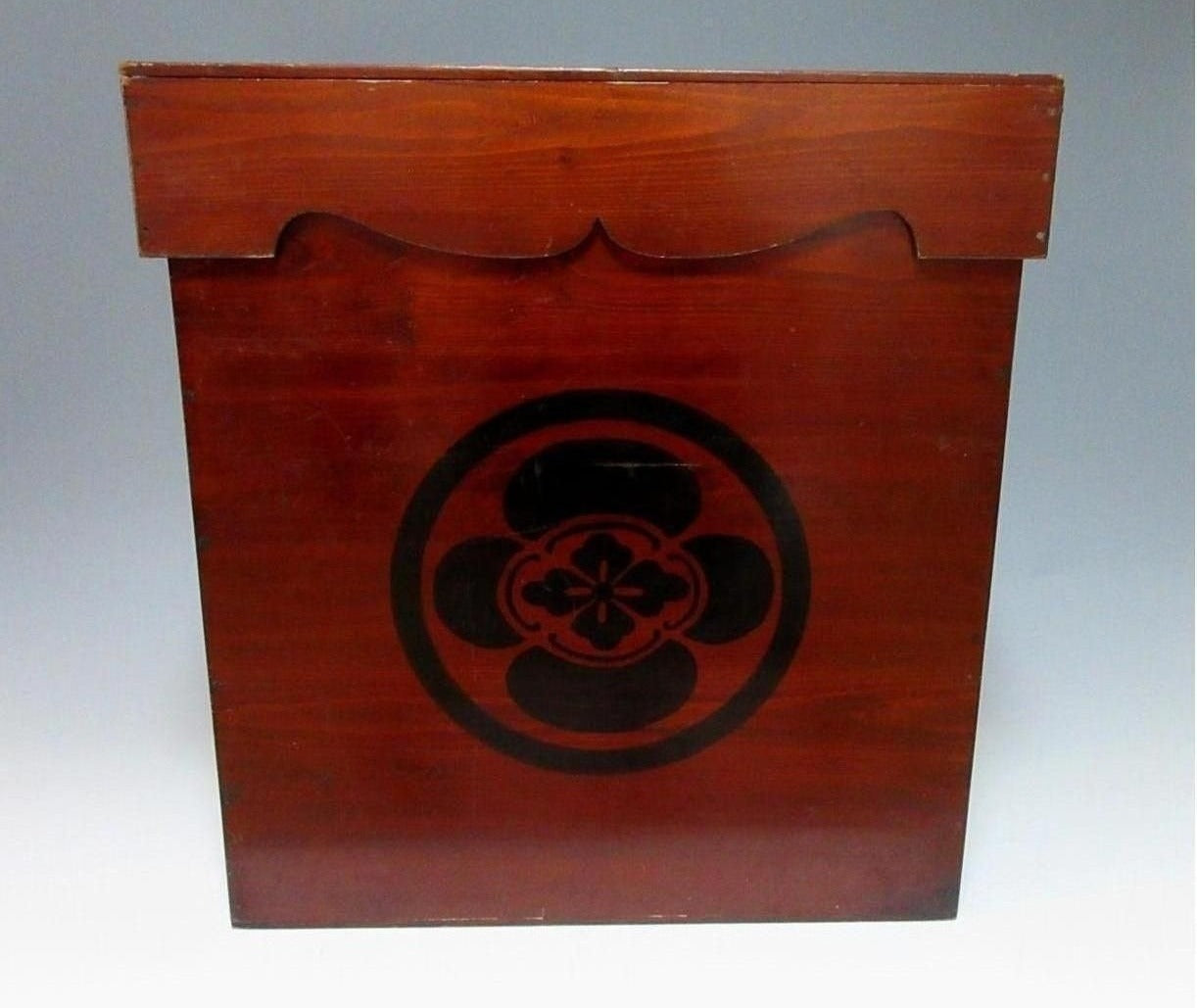 This listing is for an antique chochin paper lantern storage box dated Taisho 5 (1916). It is made of lacquered wood and the front features a kamon family crest. During the Edo period, it was forbidden to walk without lights at night, so every house had to be equipped with portable lanterns. Each household hung a wooden box decorated with their family crest on the wall, and they stored their lanterns in there. Even now there are still some old folk houses dating back to the Edo-Taisho periods with these wooden boxes tucked away or hanging on their wall. This particular box came from an old house in Niigata. The owner’s name and district is written under the lid, as well as the date. It’s still in usable condition and would make a great piece of décor. Please read below regarding the condition.