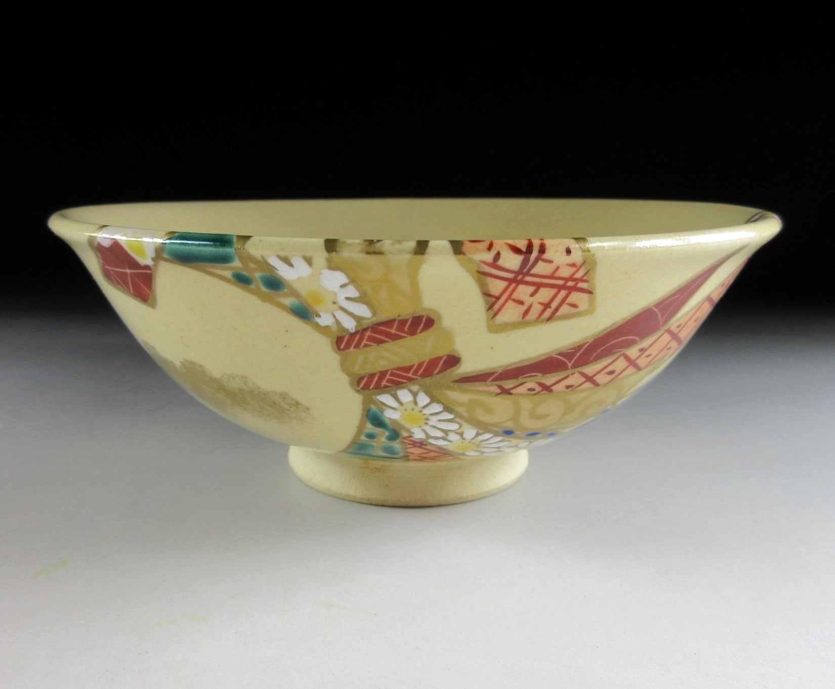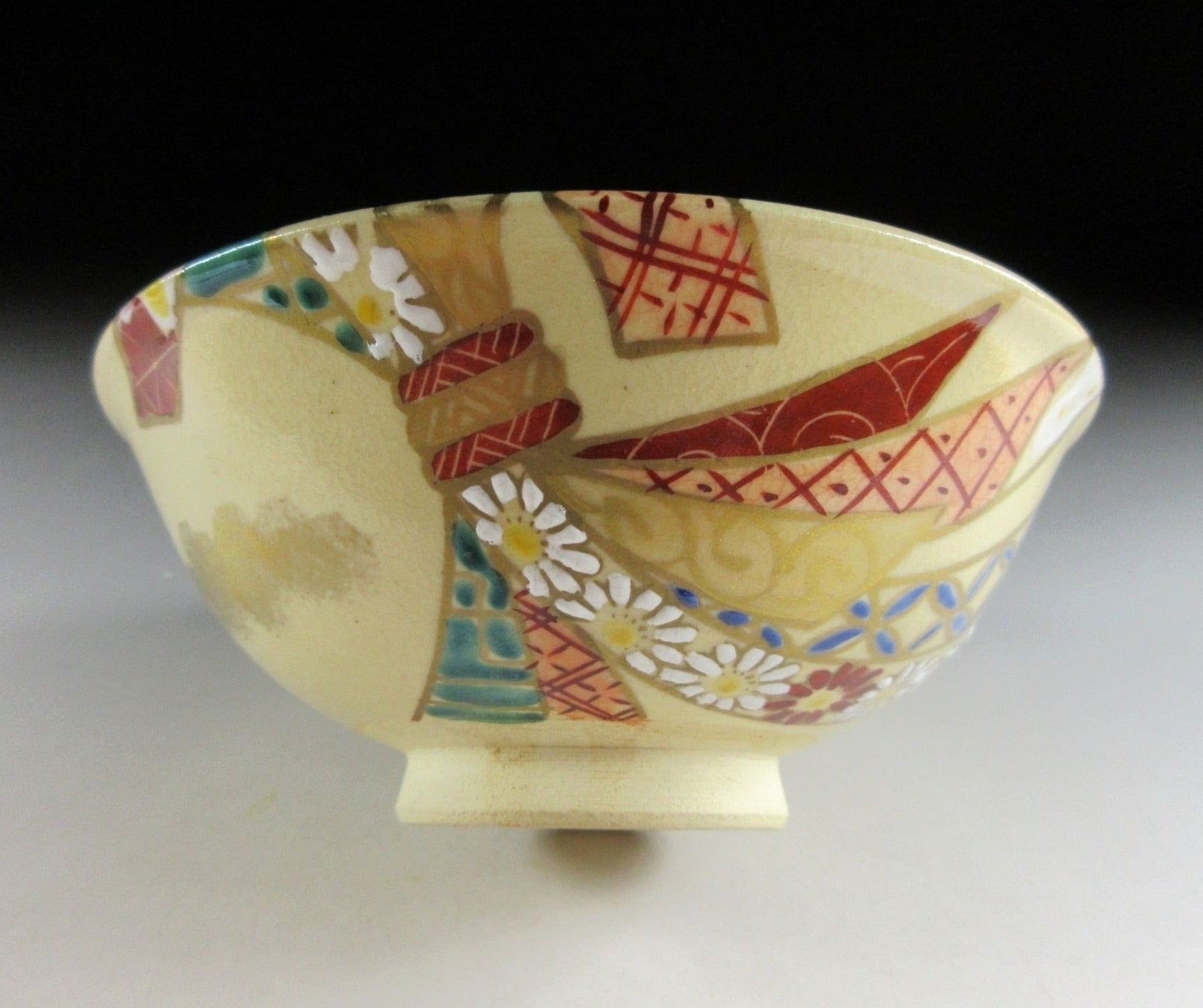 Kyo-ware originated in the 17th century in Kyoto and features overglaze enamel pigments on a porcelain base. The porcelain base acts as white canvas, allowing for beautiful and superior quality designs to be painted. Kyo-ware artisans traditionally produced chawan and utensils for the tea ceremony, however contemporary potters specialize in tableware, tea ceremony items, incense holders, and okimono. Kyo-ware was designated as a traditional craft in 1977.