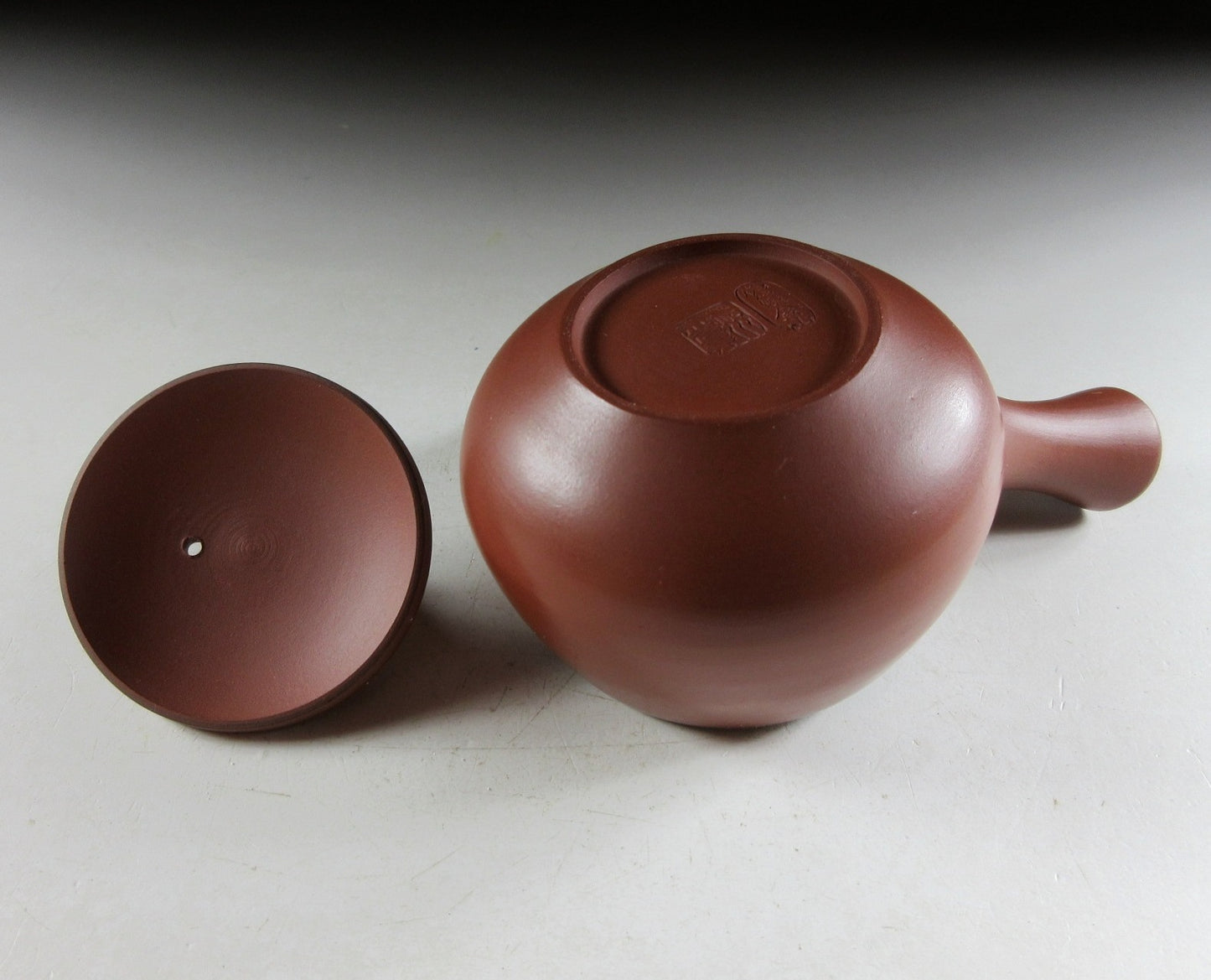 This listing is for a TINY Mumyoi-ware kyusu made around 20-30 years ago and stamped ‘Sado Kinginzan Aikawa’. The stamp means that the clay for this little kyusu was sourced from the Aikawa gold and silver mine on Sado Island. It is wheel-thrown and has a capacity of 100ml, which is only enough for one gulp of tea. The spout area has a built-in strainer on the interior to prevent tea leaves from escaping when pouring, and two stamps referring to the mine can be found on the bottom. *PLEASE CHECK THE SIZE CAREFULLY BEFORE ORDERING, THIS IS A TINY TEAPOT.