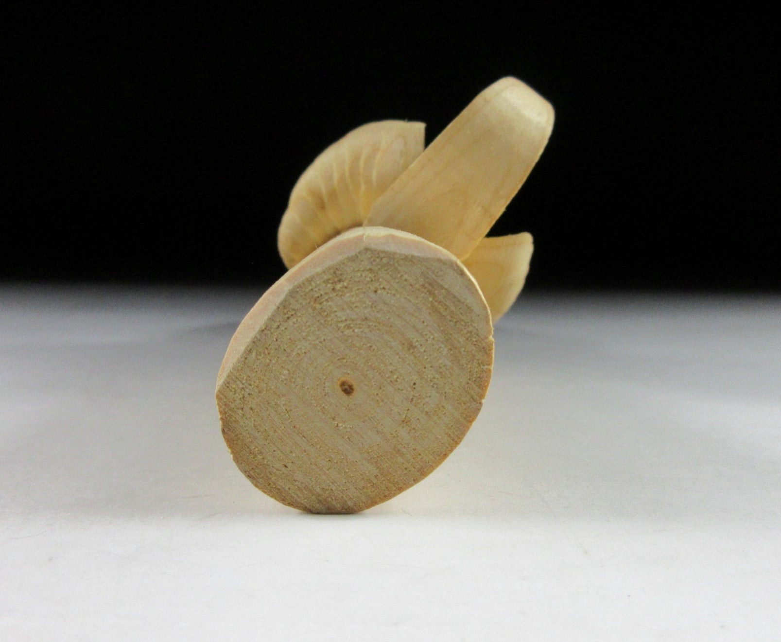 Toda Kanpu VI (b.1949) is a 6th generation ittobori craftsperson and current master of ‘Ganso Sasano Ittobori Takayama’ workshop. His real name is Kazuo, and Kanpu is his yamabushi name. Yamabushi are practitioners of the ancient belief of Shugendo, and engage in activities such as mountain pilgrimages and fire walking rituals. Toda primarily uses koshiabura and enju wood, the wood is cut one year before and dried out before carving. Trees that grow in the shade have softer wood and are easier to carve. Also the enju tree has long been used as a talisman to ward off evil spirits and demons, and is said to bring happiness. Toda is actually the first sasano ittobori craftsperson to carve birds from enju wood. He is not only known for ittobori, he makes baskets as well from wild grape vines. He spends 200 days a year visiting department stores across the country to demonstrate and sell his products. Ittobori was originally just a side job for farmers, Toda was the first to make it his full time job and make a living from it. Toda’s son is also a sasano ittobori craftsman and is now the 7th generation master. **Fellow sellers, this information was researched by Kominka Zakka and CANNOT be used in your own listings.
