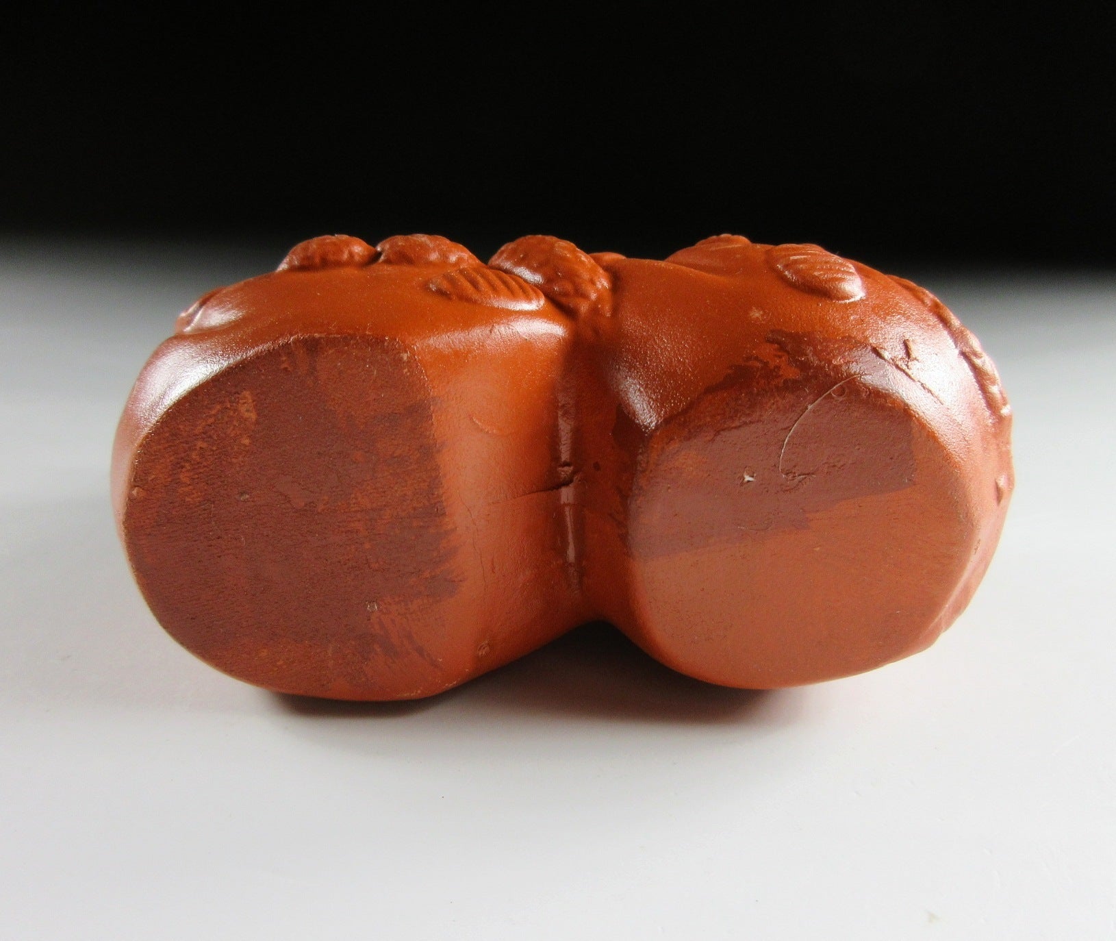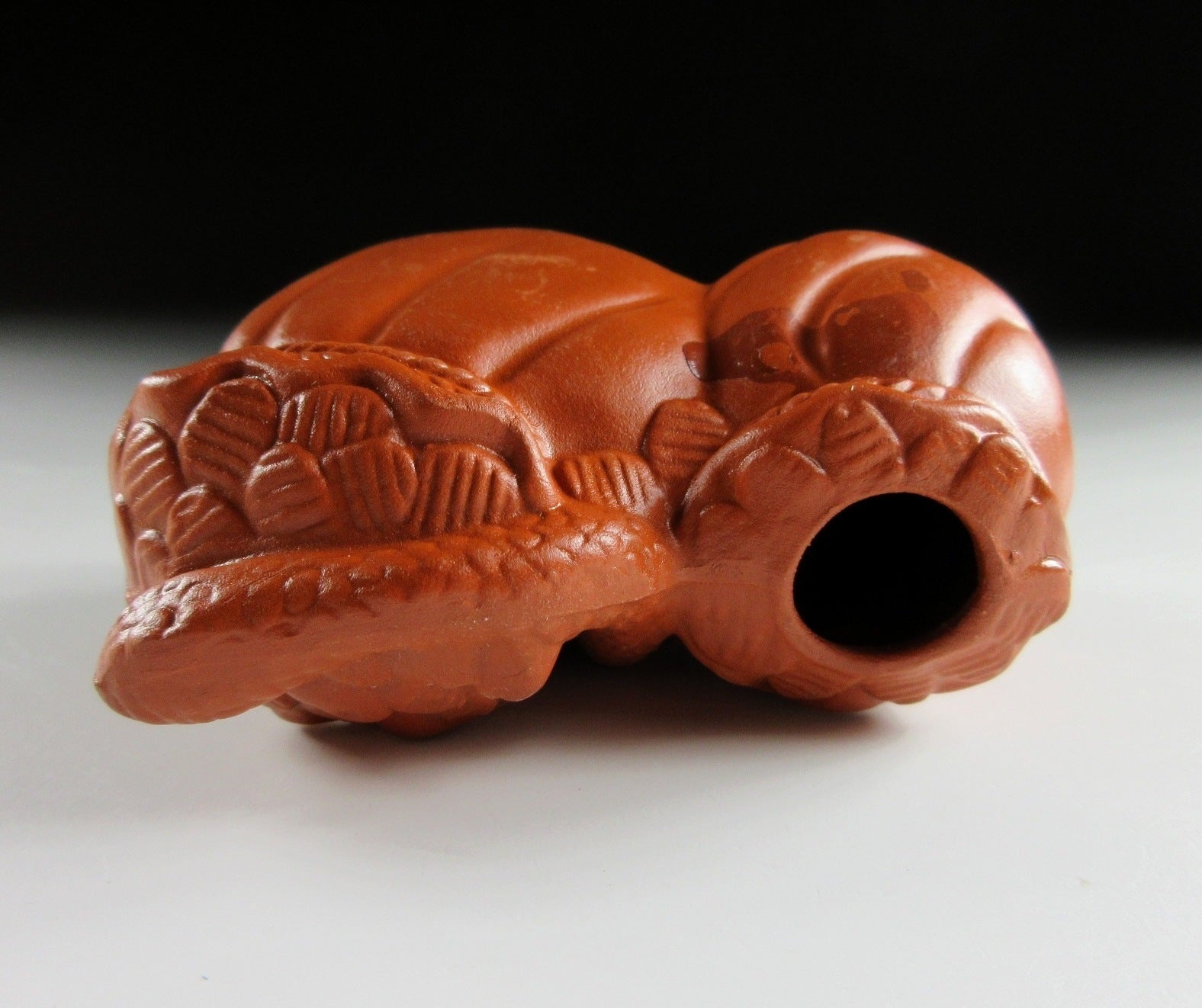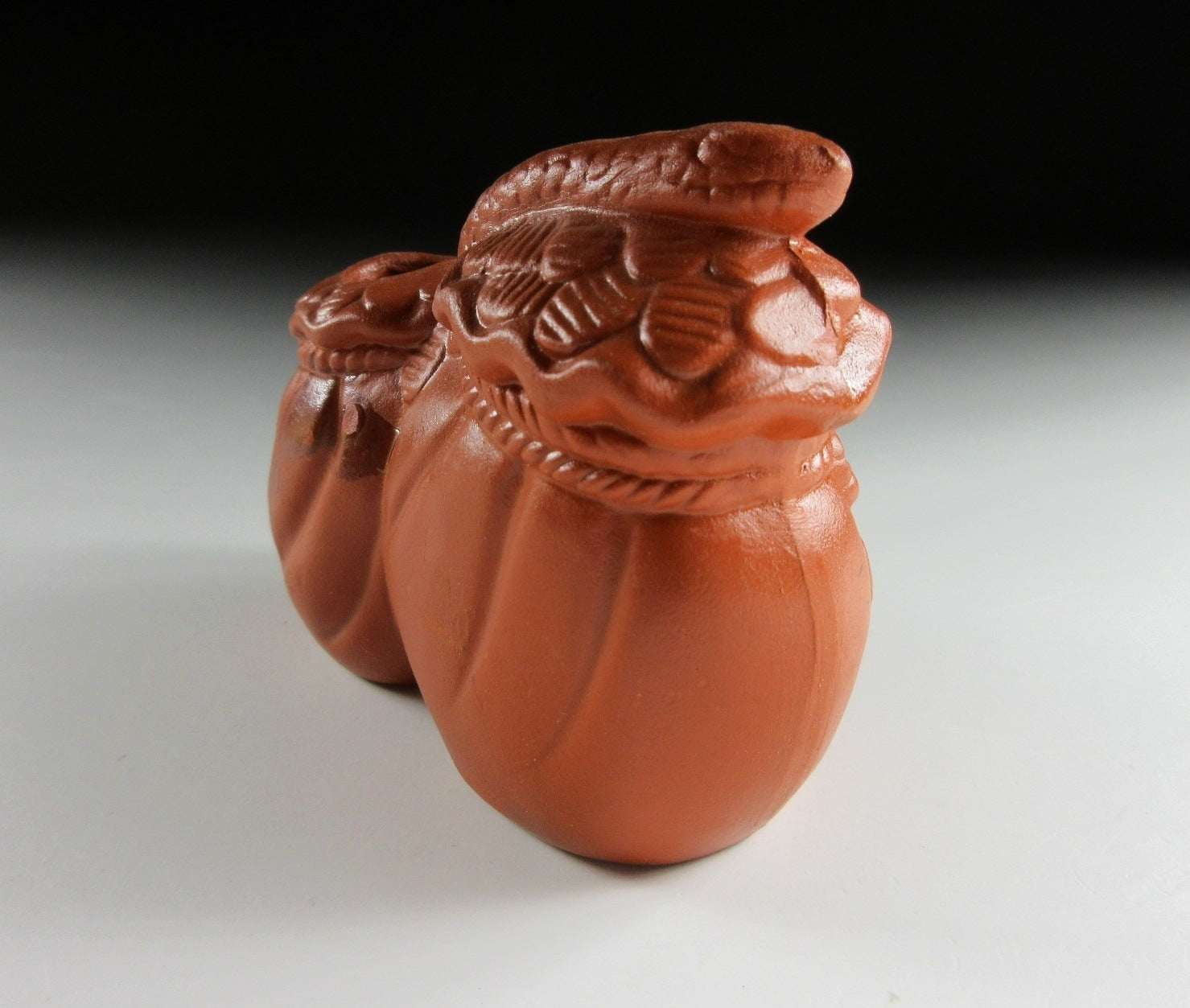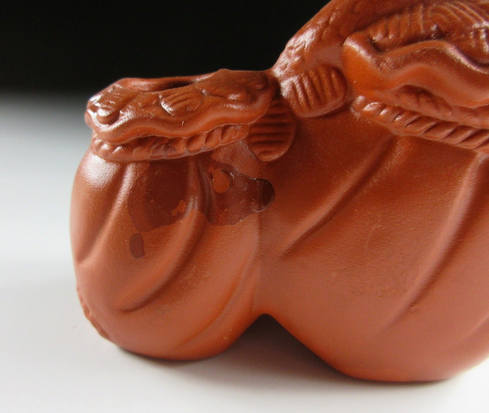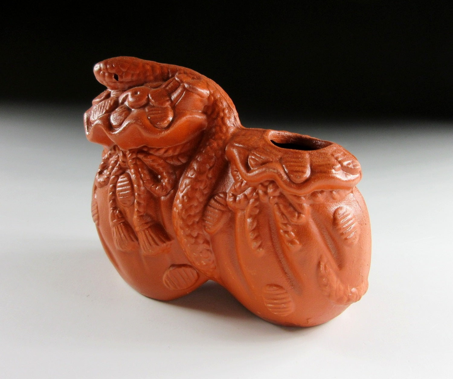 This listing is for a vintage Tokoname-ware toothpick holder possibly made to commemorate the Year of the Snake back in 2001. It has been made using a press mould and coated with red slip. The opening for toothpicks can be found in the money sack closer to the tail of the snake. Toothpick holders are also ideal for growing small air plants.
