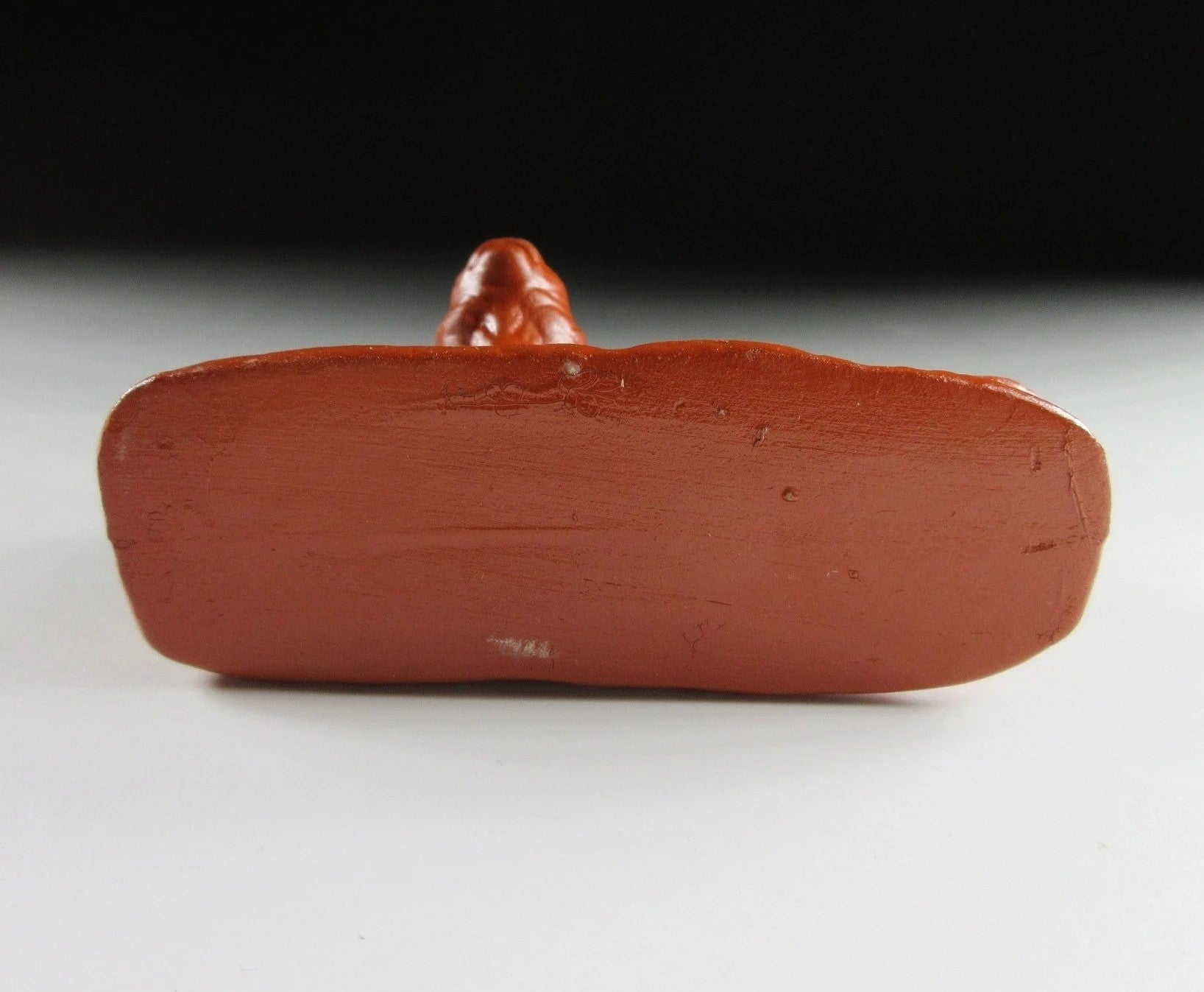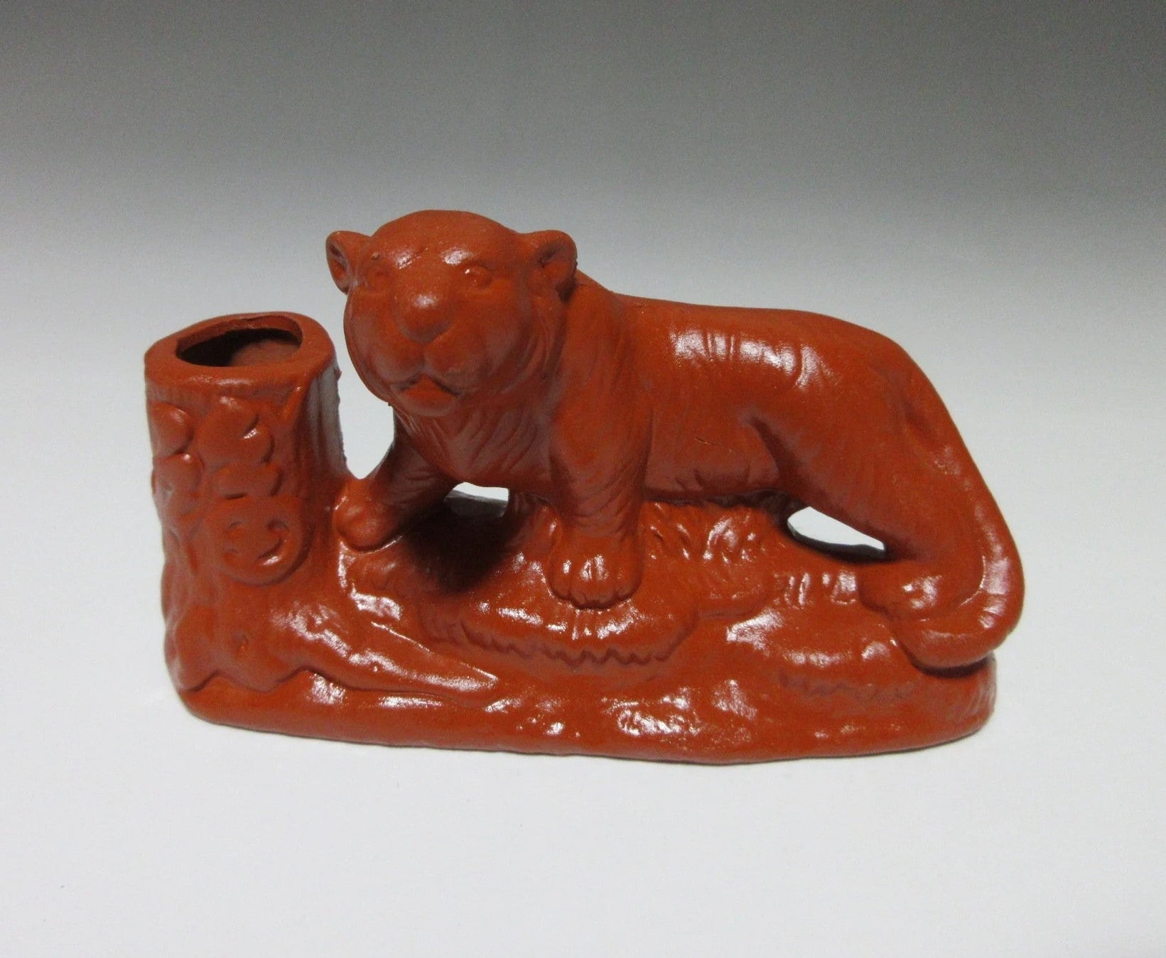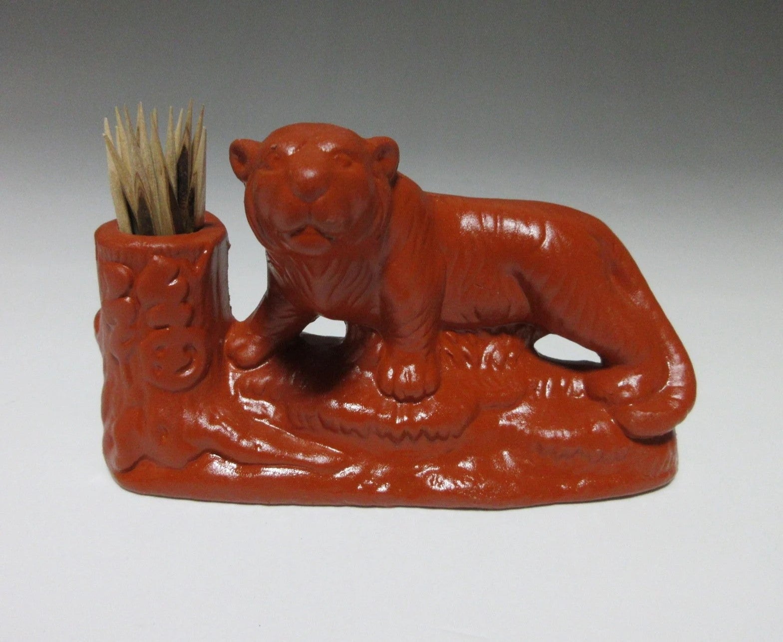 This listing is for a vintage Tokoname-ware toothpick holder possibly made to commemorate the Year of the Tiger back in 1998. It has been made using a press mould and coated with red slip. The slip is a little glossy depending on the light, I have photos with lighting and photos without to give a better idea. Toothpick holders like these are also ideal for growing air plants.