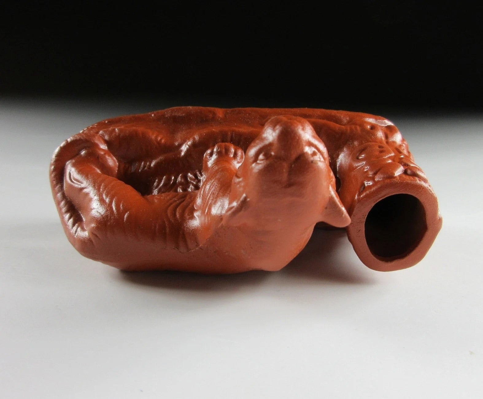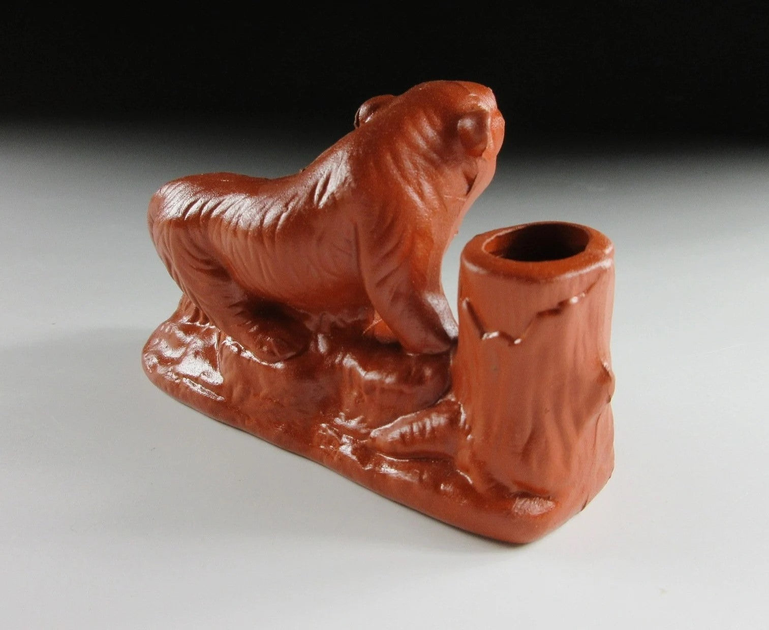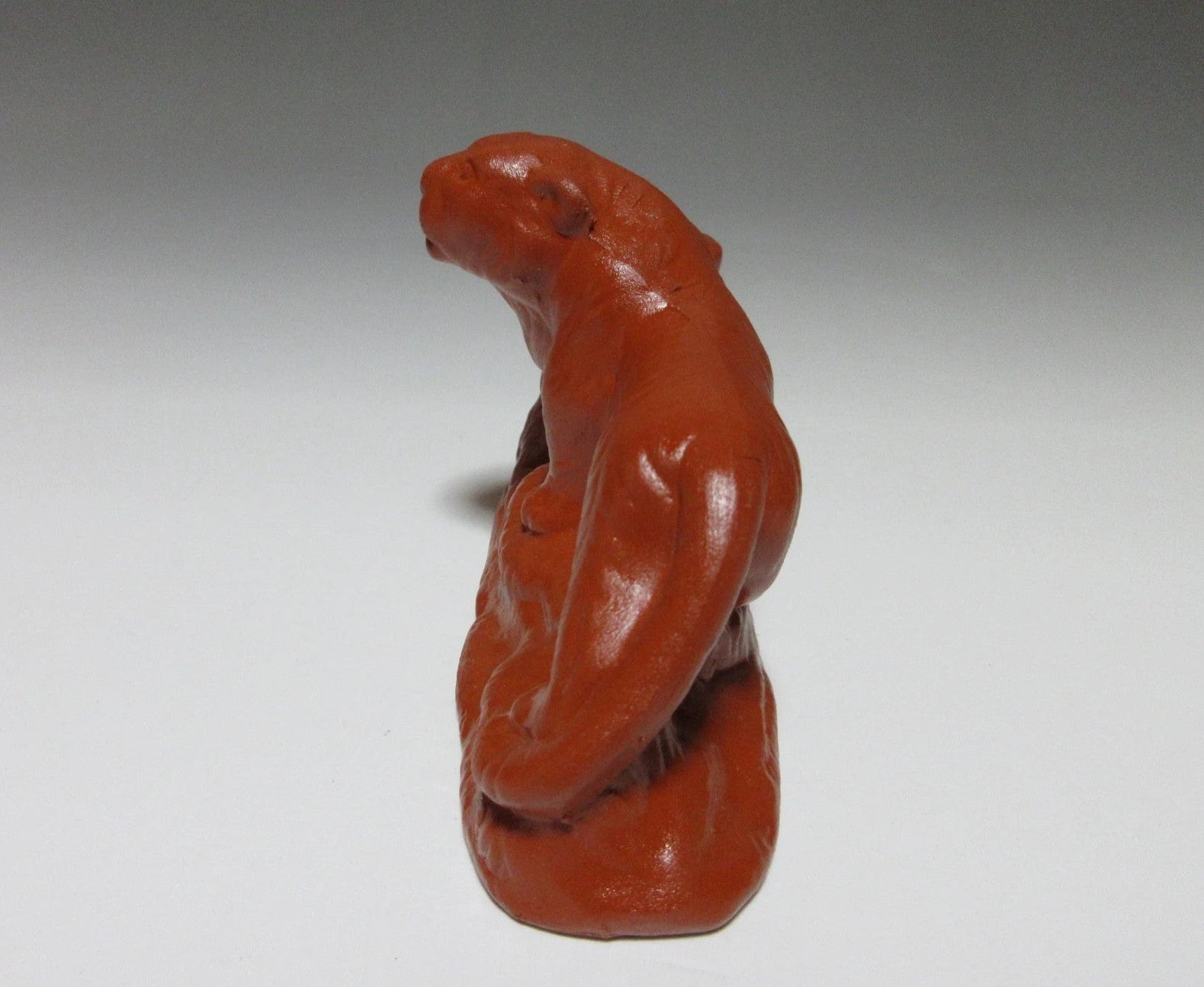 This listing is for a vintage Tokoname-ware toothpick holder possibly made to commemorate the Year of the Tiger back in 1998. It has been made using a press mould and coated with red slip. The slip is a little glossy depending on the light, I have photos with lighting and photos without to give a better idea. Toothpick holders like these are also ideal for growing air plants.