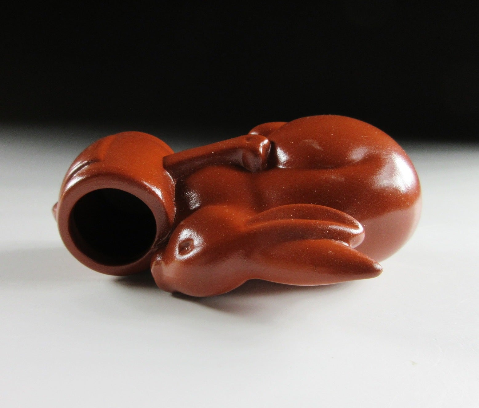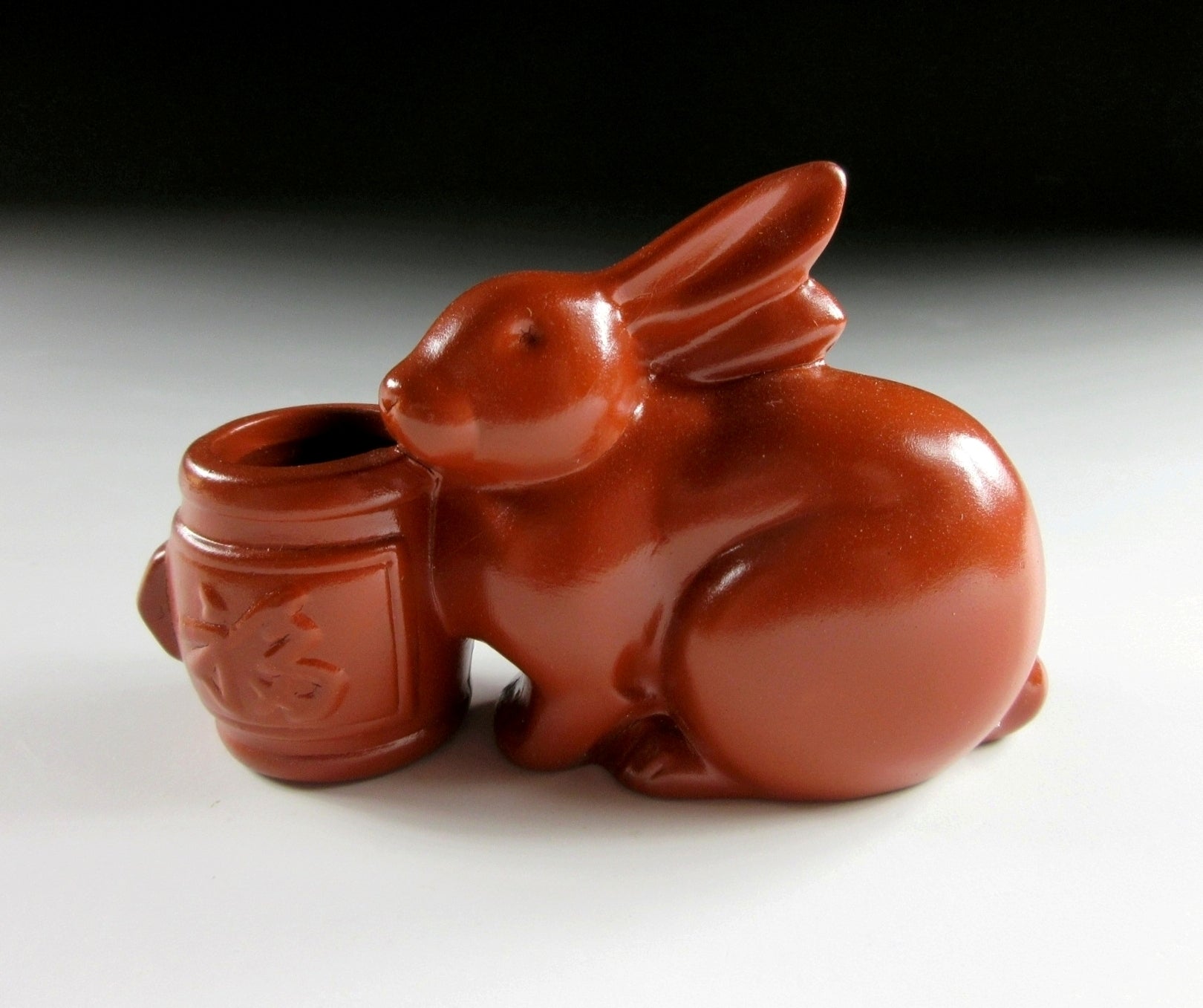 This listing is for a vintage Tokoname-ware toothpick holder possibly made to commemorate the Year of the Rabbit back in 1999. It has been made using a press mould and coated with red slip. The opening for toothpicks can be found in the lucky mallet alongside the rabbit. Toothpick holders like these are also ideal for growing air plants.