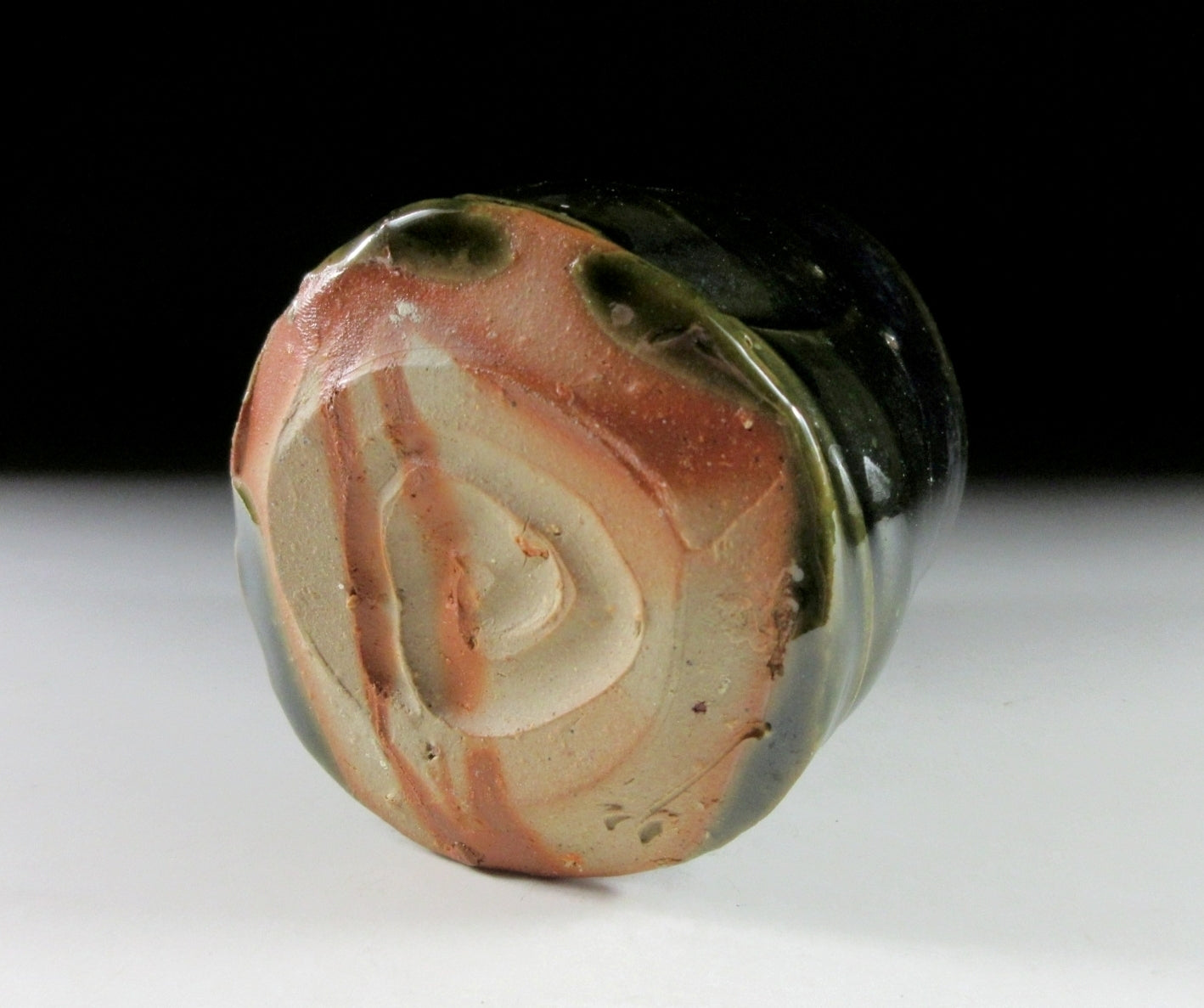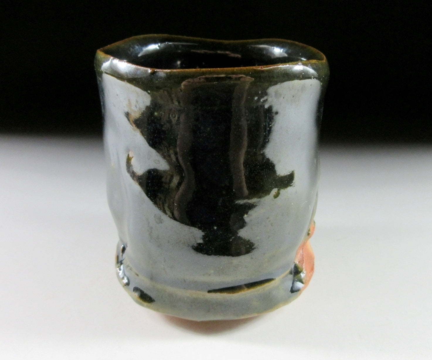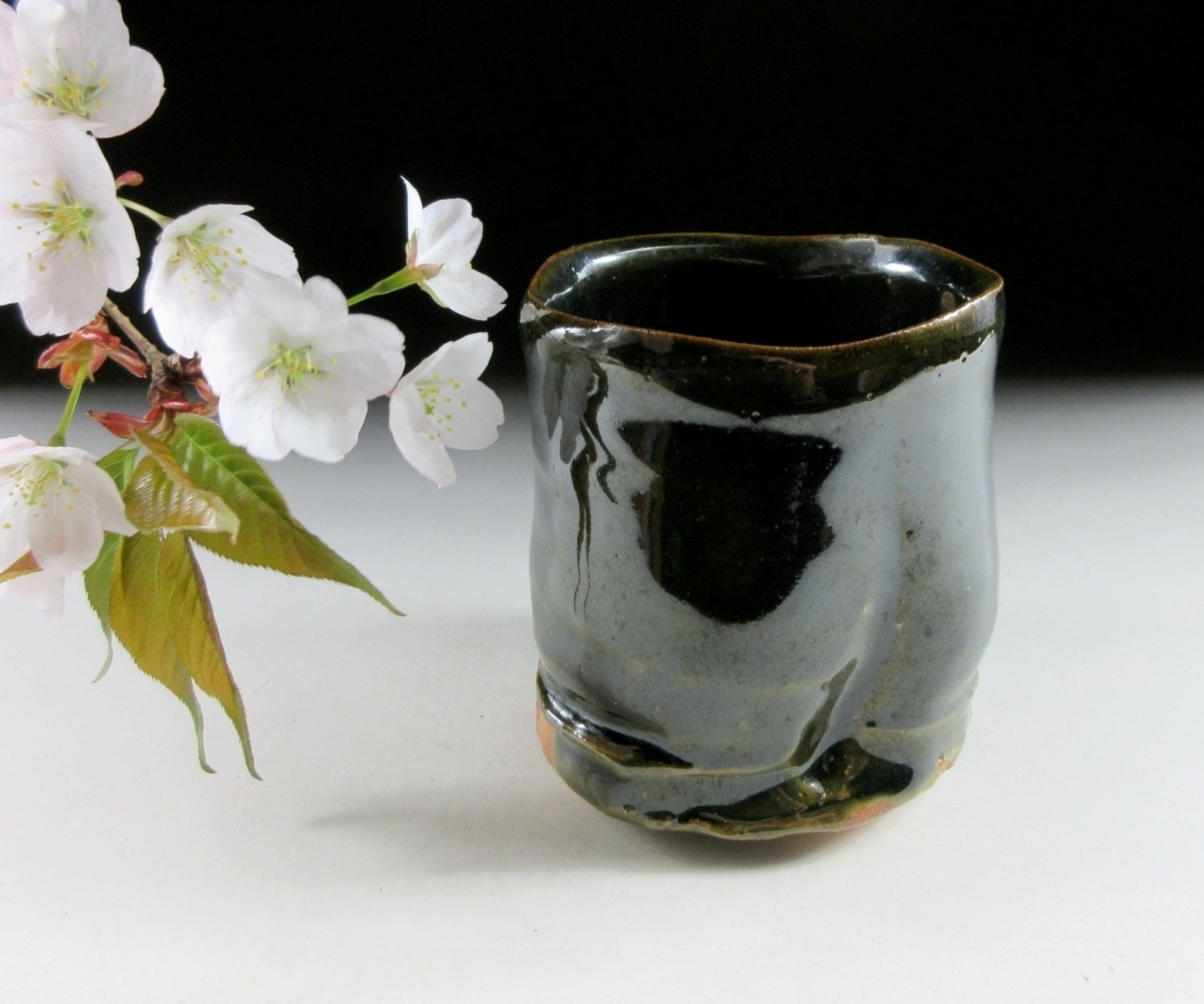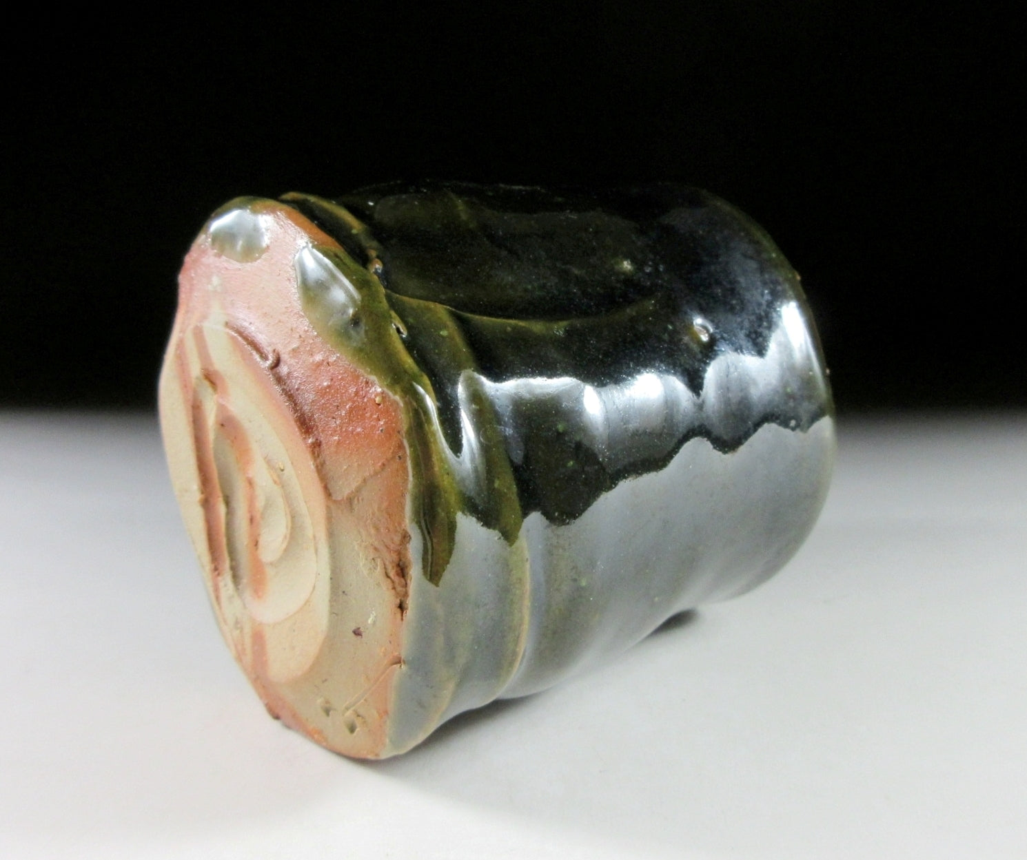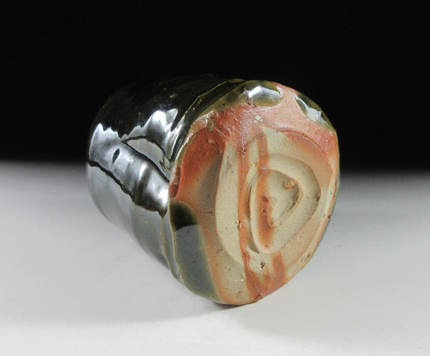 This listing is for a wood-fired Bizen-ware yunomi made by Tomori Yukio. It is hand-turned and a fusion of traditional Bizen techniques with those of Oribe. This style first appeared back in the very early 1990s, which at the time challenged tradition and ushered in a new era of Bizen style pottery. Please note that part of the glaze has a slightly cloudy appearance. The signature of the potter can be found on the bottom, sorry no box for this one.