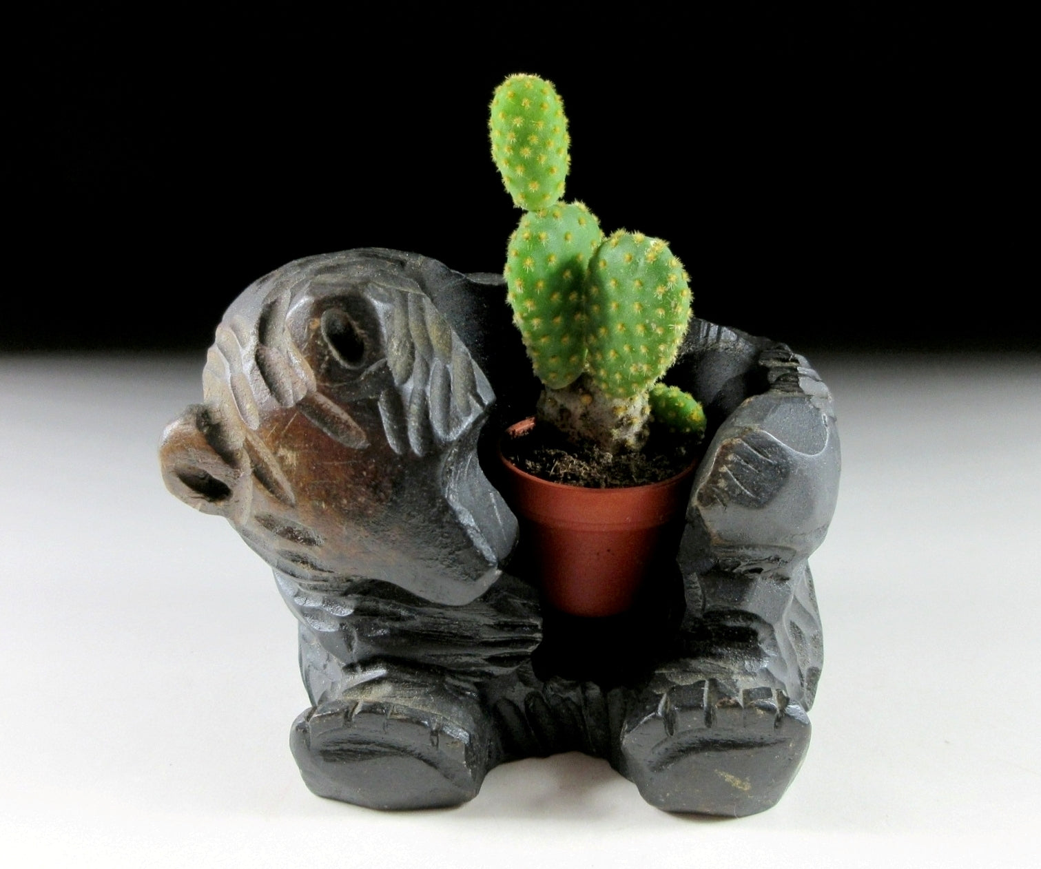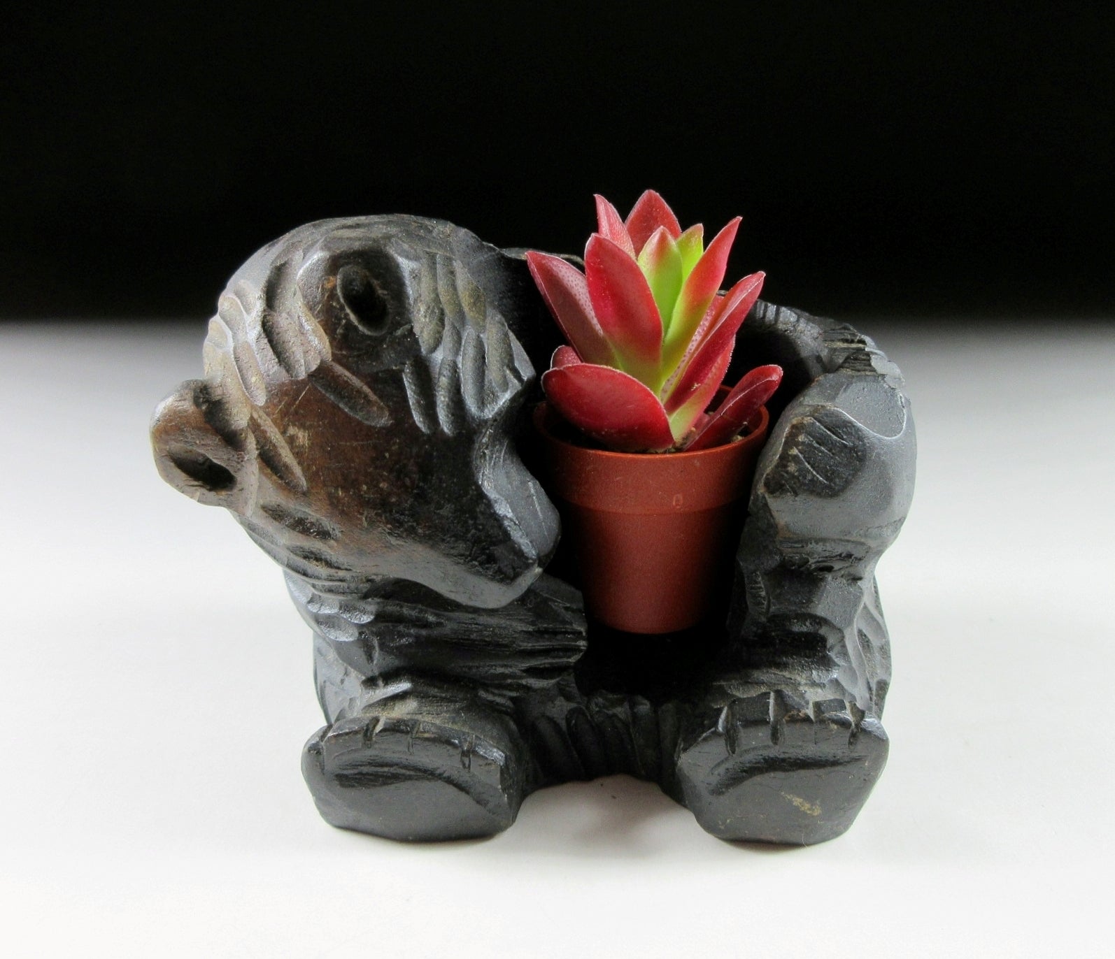 This listing is for a VERY SMALL wooden higuma from the northern island of Hokkaido. This piece was originally made as a holder for a miniature 50ml bottle of Nikka whisky. Suntory collaborated with local craftspeople to produce wooden bears that were carved specifically for different kinds of whisky. The whisky is long gone, so this piece is being sold simply as a holder for air plants, or to hold a small toothpick holder perhaps. Please check the measurements carefully before ordering. The miniature cactus may give the impression that the bear is somewhat larger than it actually is. **ALSO PLEASE NOTE THAT THE PLANTS ARE NOT INCLUDED IN THIS LISTING, IT IS FOR THE WOODEN BEAR ONLY.