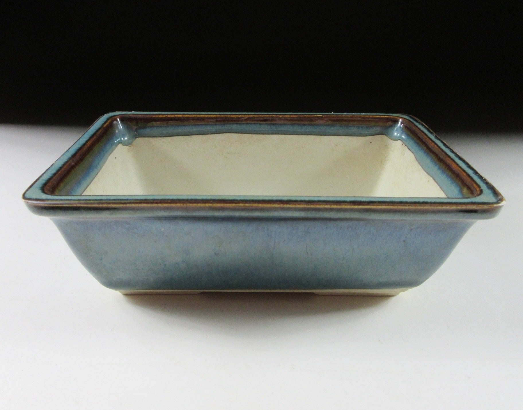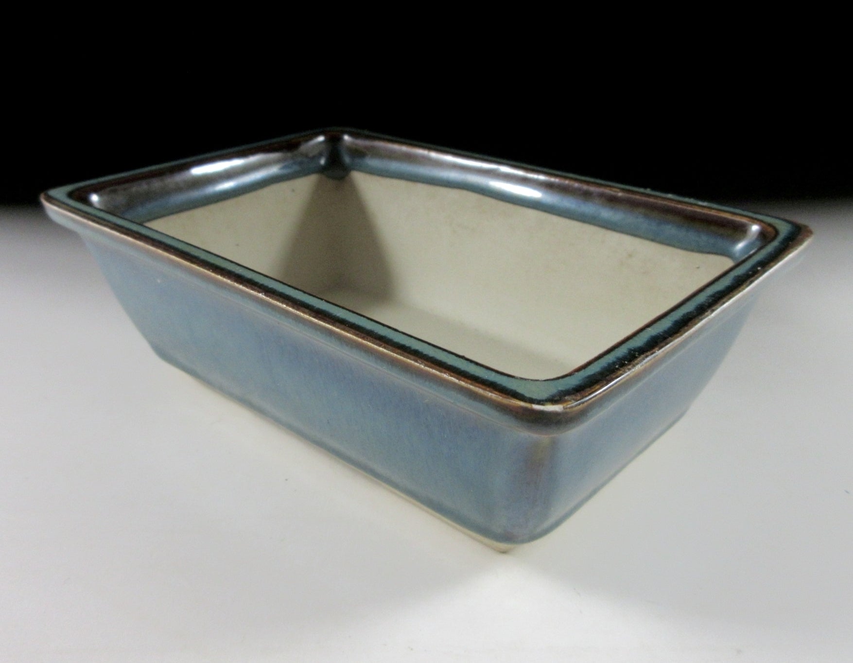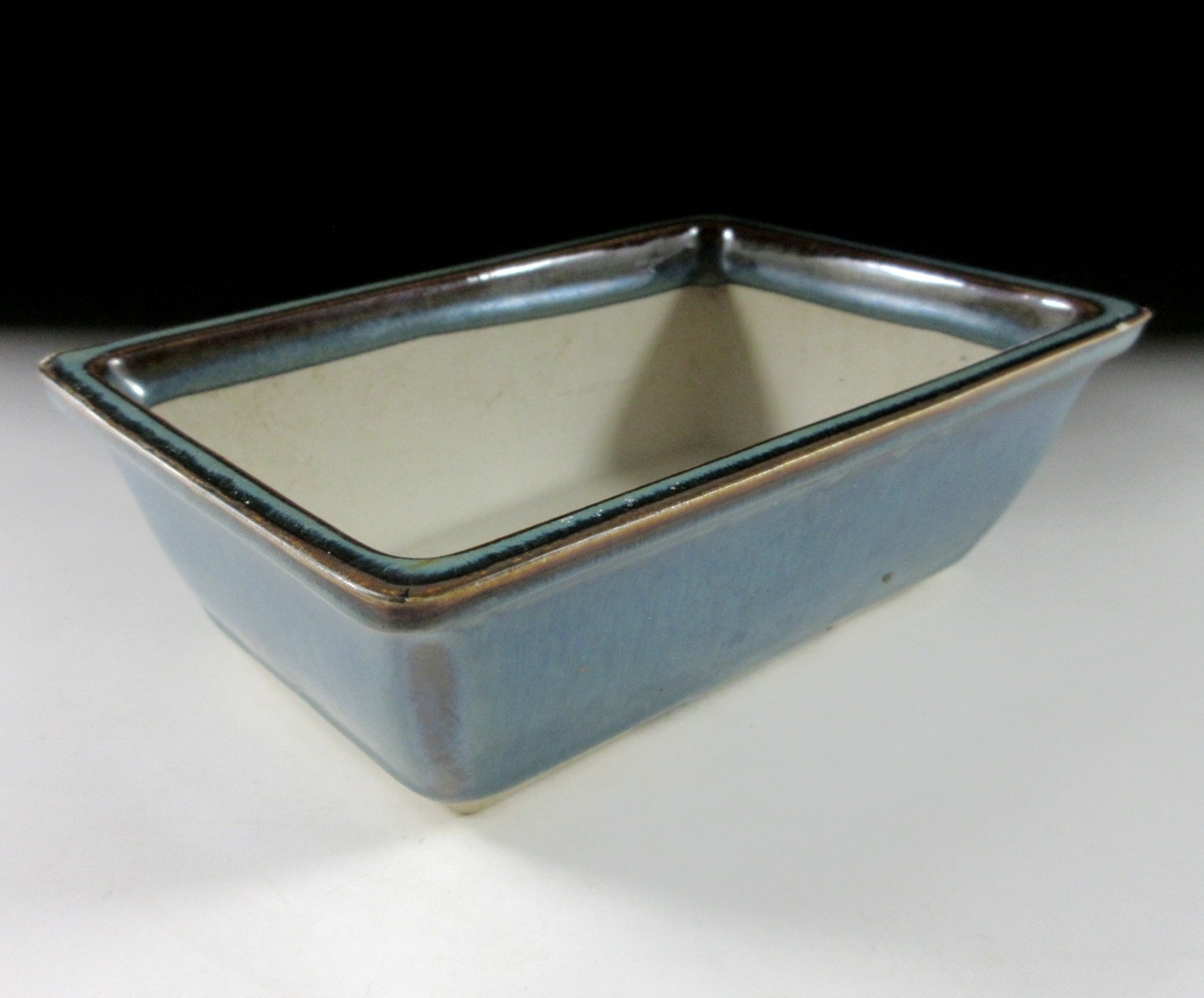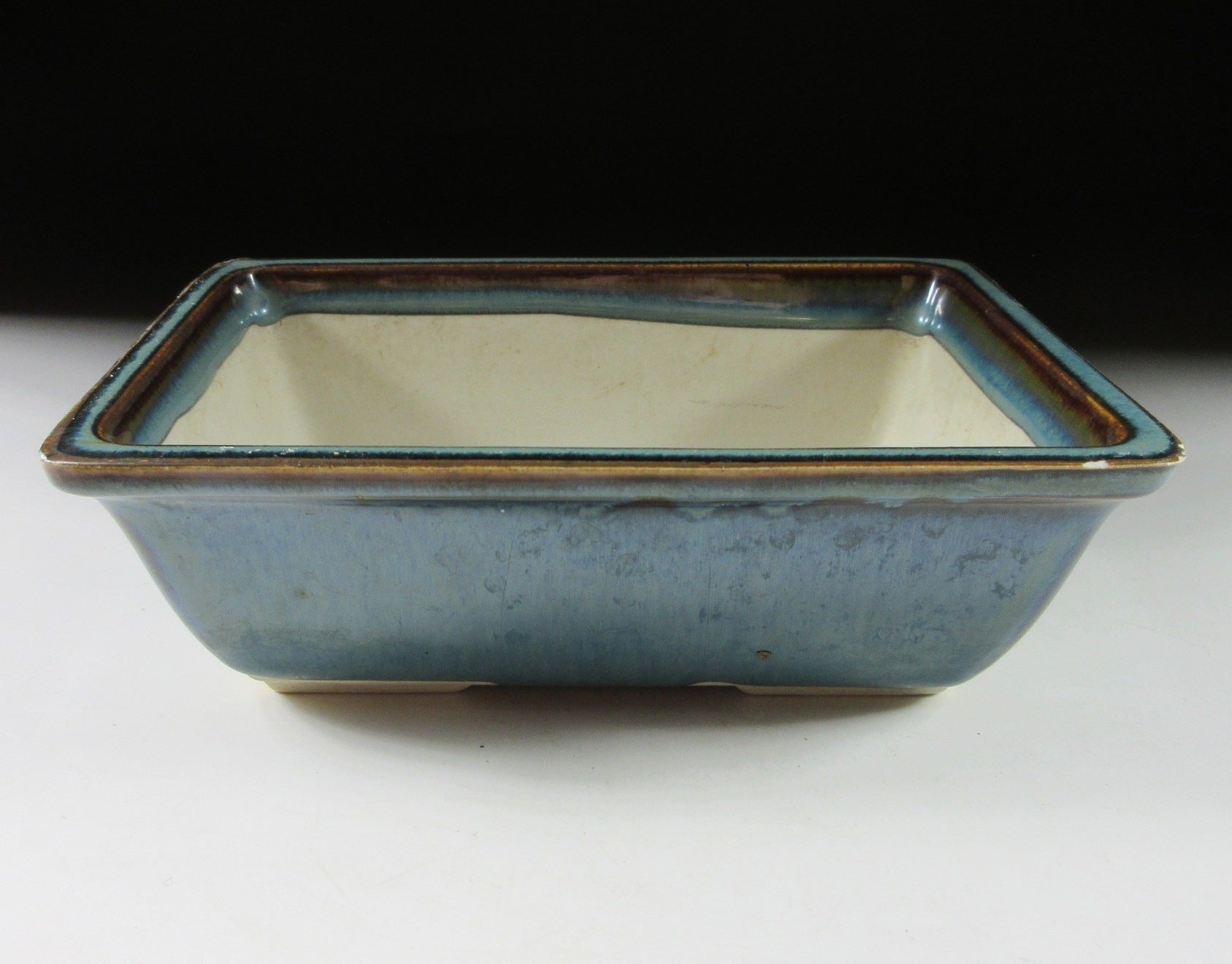 This listing is for a vintage bonsai planter made around 30 years ago. It is made of low-fired stoneware slip, and coated in bluish coloured glaze. These types of pots are made from press moulds and fired in production grade kilns. The size is big enough for growing small types of trees such as junipers.