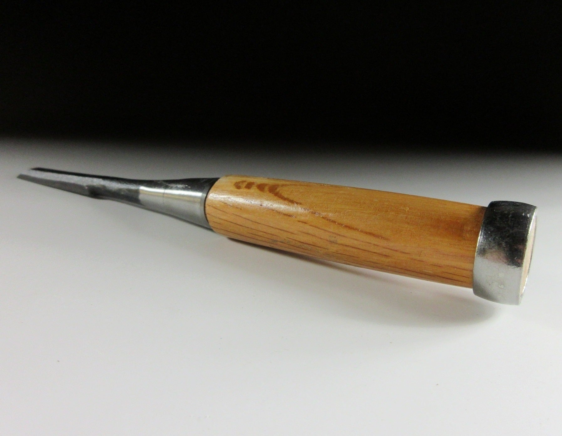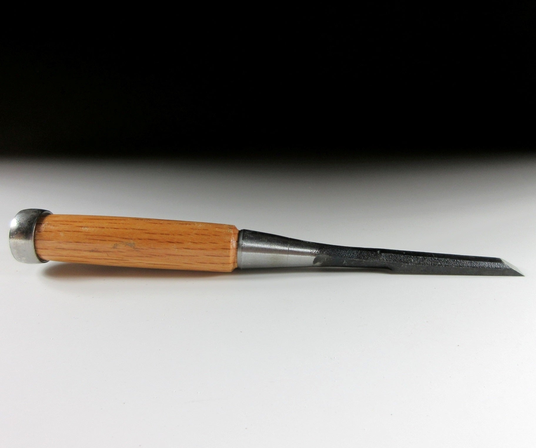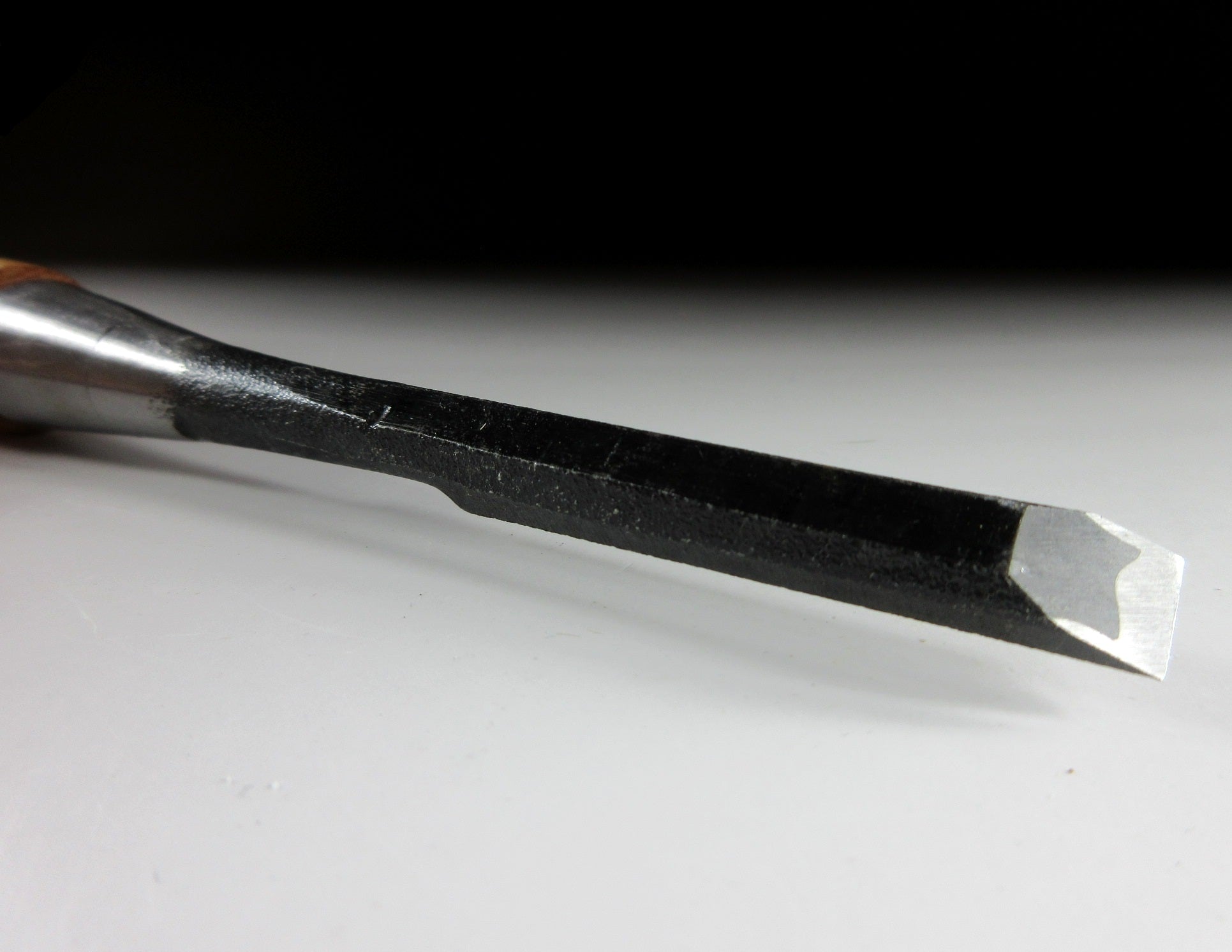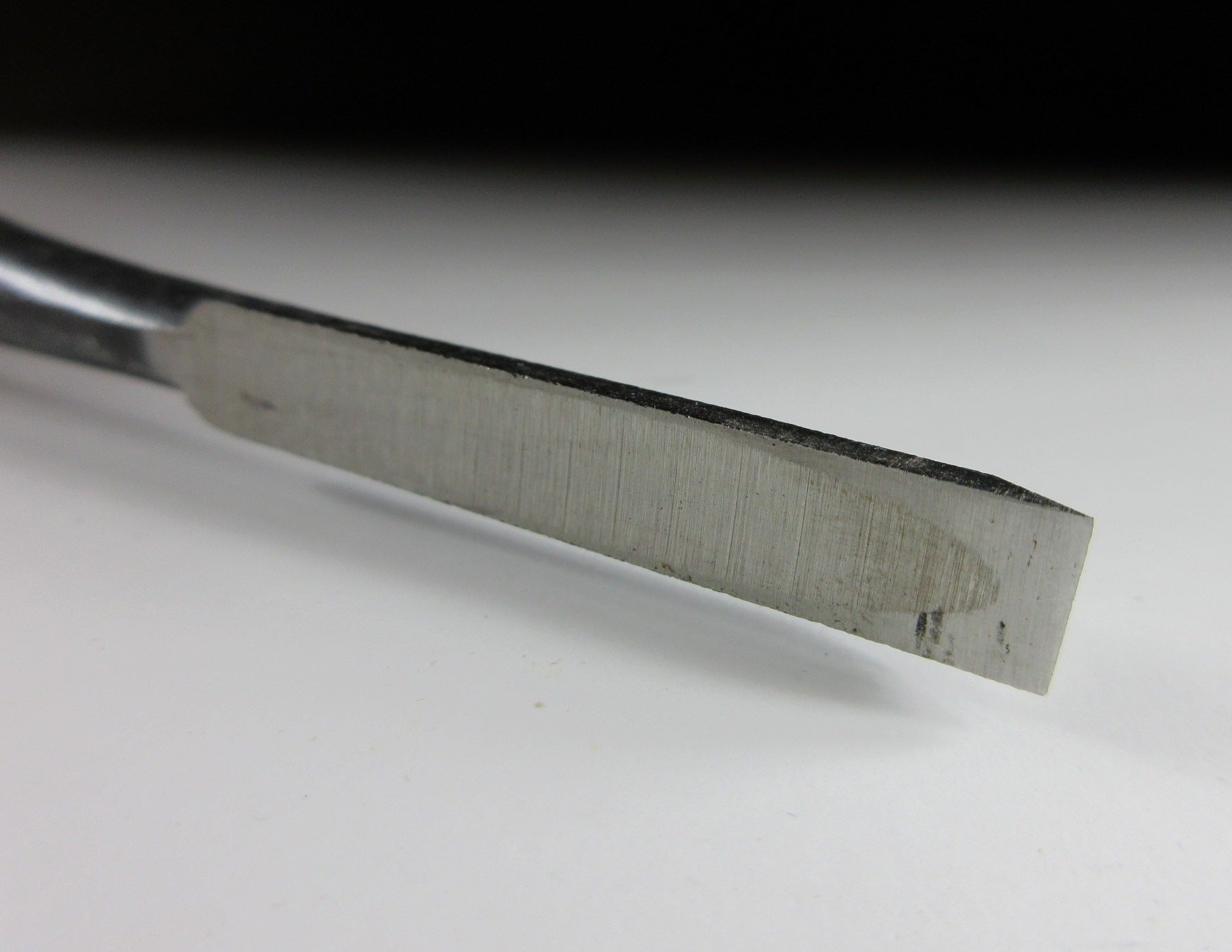 This listing is for a vintage oirenomi made around 20-30 years ago. An oirenomi is a Japanese chisel which consists of two parts. There is the softer piece called the jigane which extends into the handle, and then the hard cutting blade called the hagane. The hagane part is hammer welded to the jigane. The chisel in this listing is made from laminated carbon steel and is die-forged. The blade is narrow and this piece appears to have had little use.