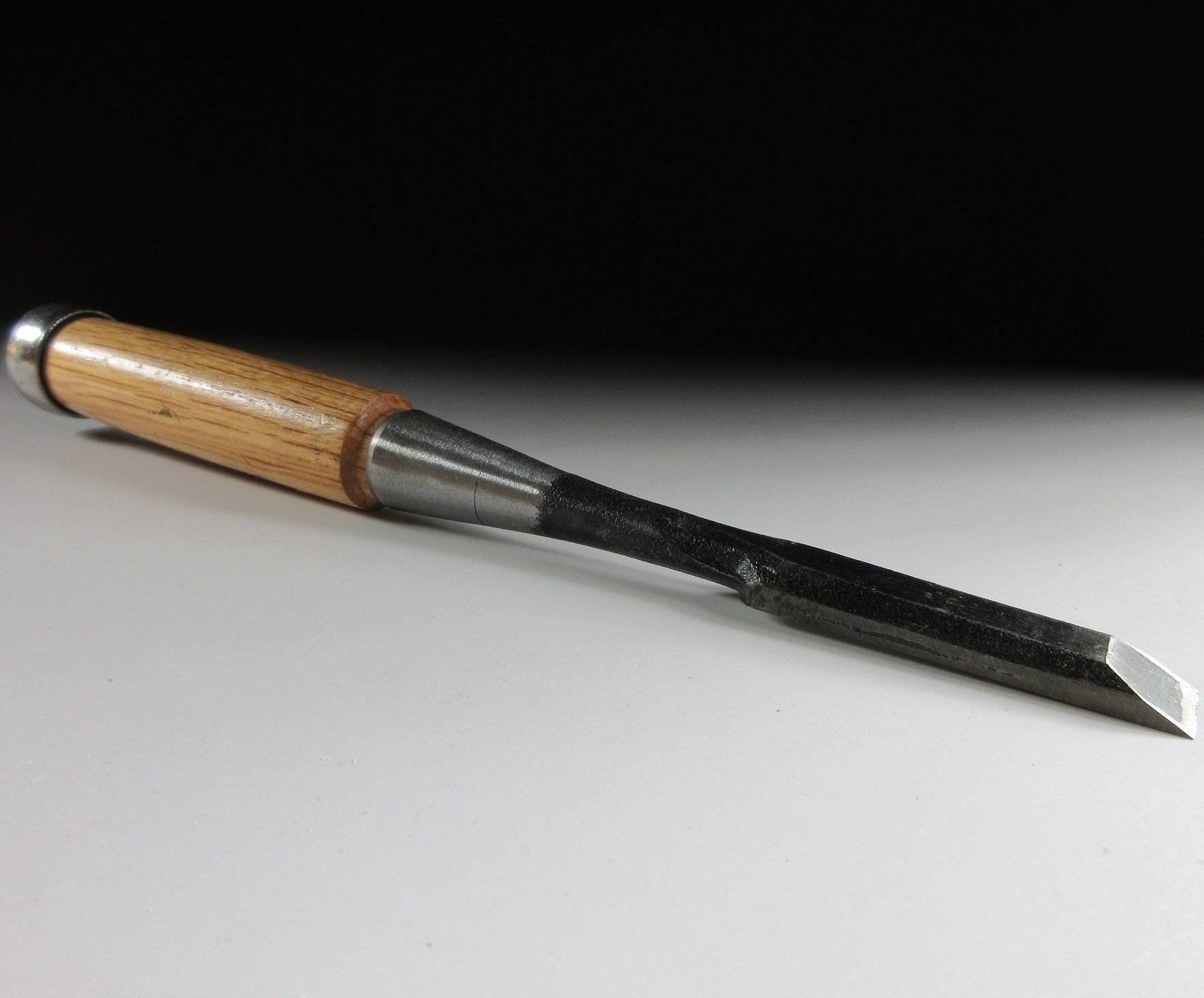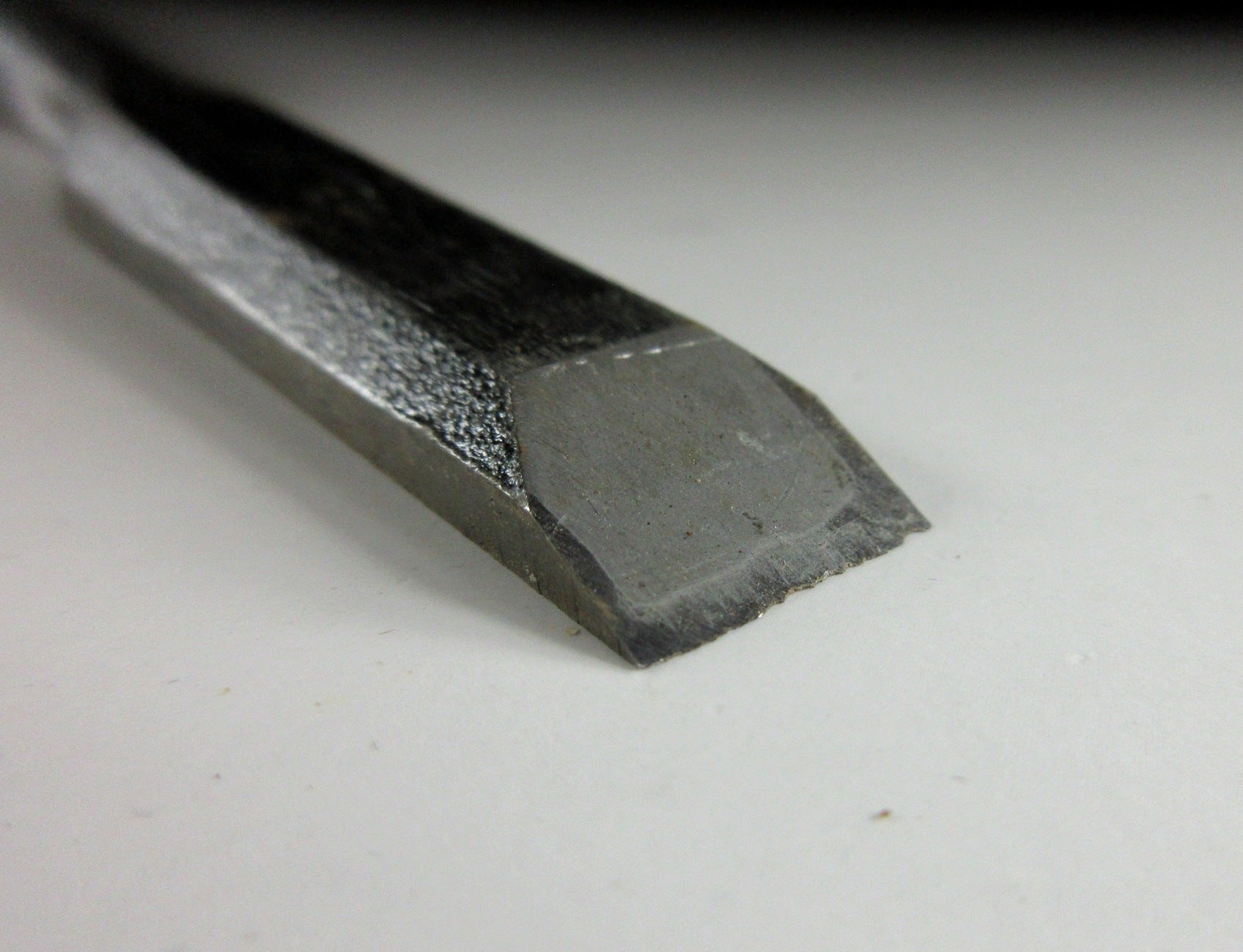 This listing is for a vintage oirenomi made around 20-30 years ago. An oirenomi is a Japanese chisel which consists of two parts. There is the softer piece called the jigane which extends into the handle, and then the hard cutting blade called the hagane. The hagane part is hammer welded to the jigane. The chisel in this listing is made from laminated carbon steel and is die-forged. The blade is reasonably wide and this piece appears to have had some use but is still in good condition.