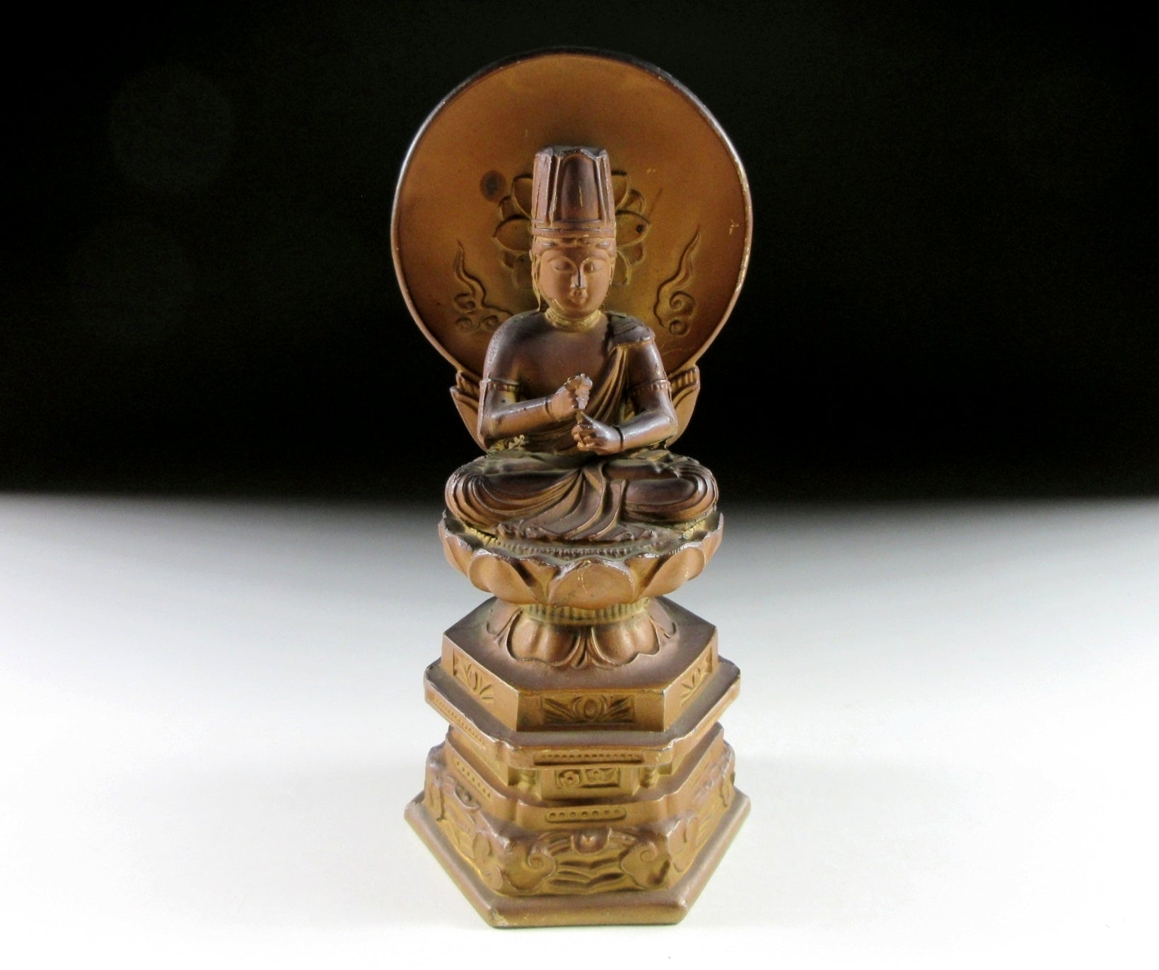 Dainichi Nyorai is the Japanese translation of the Sanskrit name ‘Maha Vairocana’. Dainichi translates as ‘Great Sun’, and he is considered the life force that illuminates the universe. He is also worshipped as the Central Buddha of the Universe, and the supreme deity of Esoteric Buddhism in Japan.