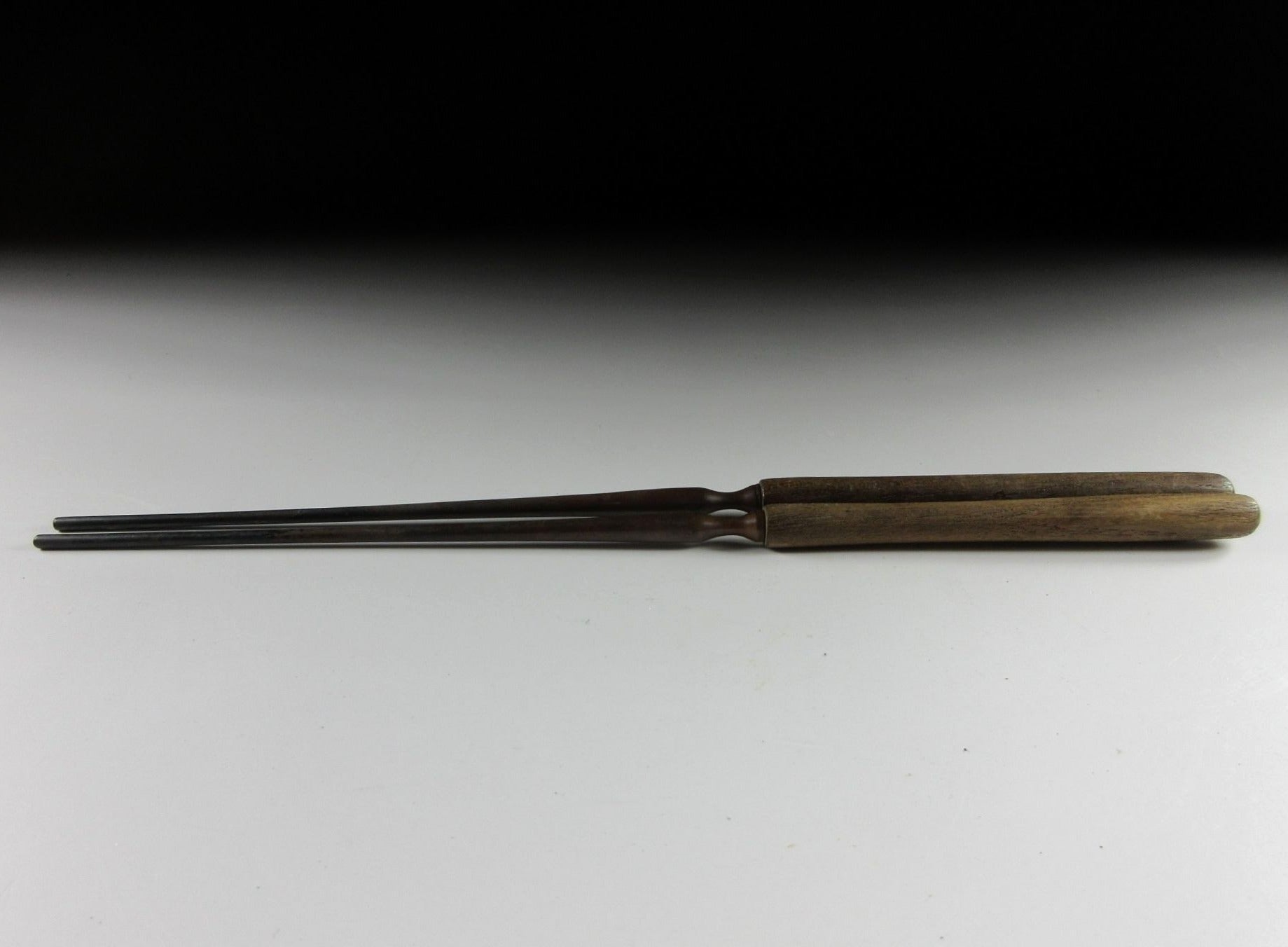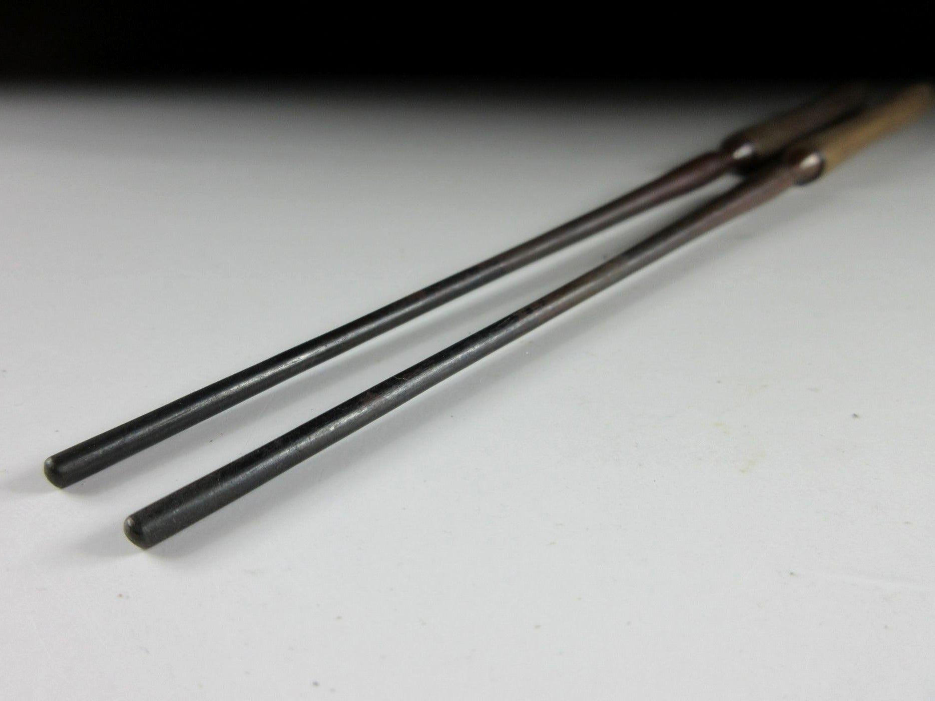 This listing is for a pair of vintage hibashi made about 40-50 years ago. Hibashi are chopsticks used for handling hot charcoal when using a hibachi (brazier). They are longer than regular chopsticks and the more expensive type usually have some kind of metal decoration on top. The hibashi in this listing have wooden handles which are much more practical than the all metal type when dealing with fire and heat.
