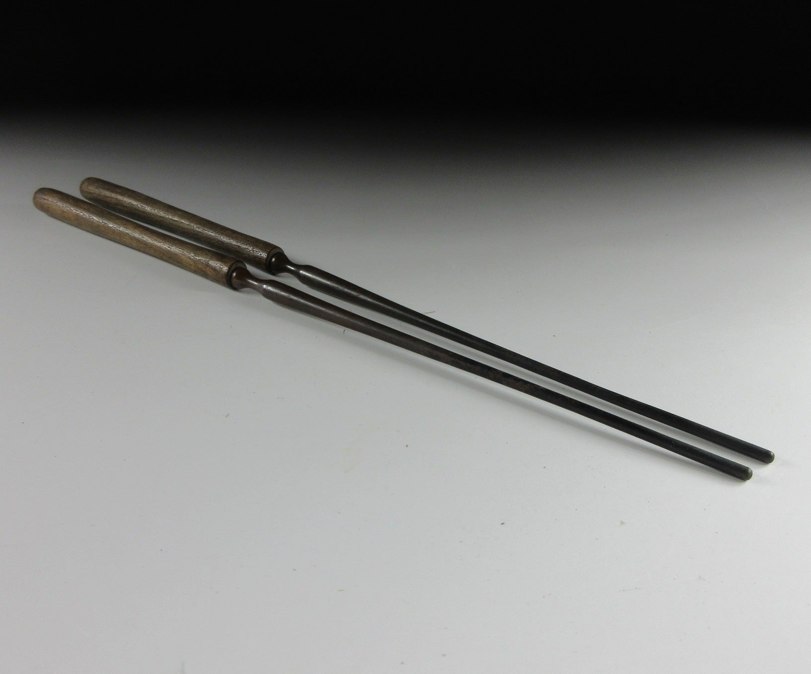 This listing is for a pair of vintage hibashi made about 40-50 years ago. Hibashi are chopsticks used for handling hot charcoal when using a hibachi (brazier). They are longer than regular chopsticks and the more expensive type usually have some kind of metal decoration on top. The hibashi in this listing have wooden handles which are much more practical than the all metal type when dealing with fire and heat.