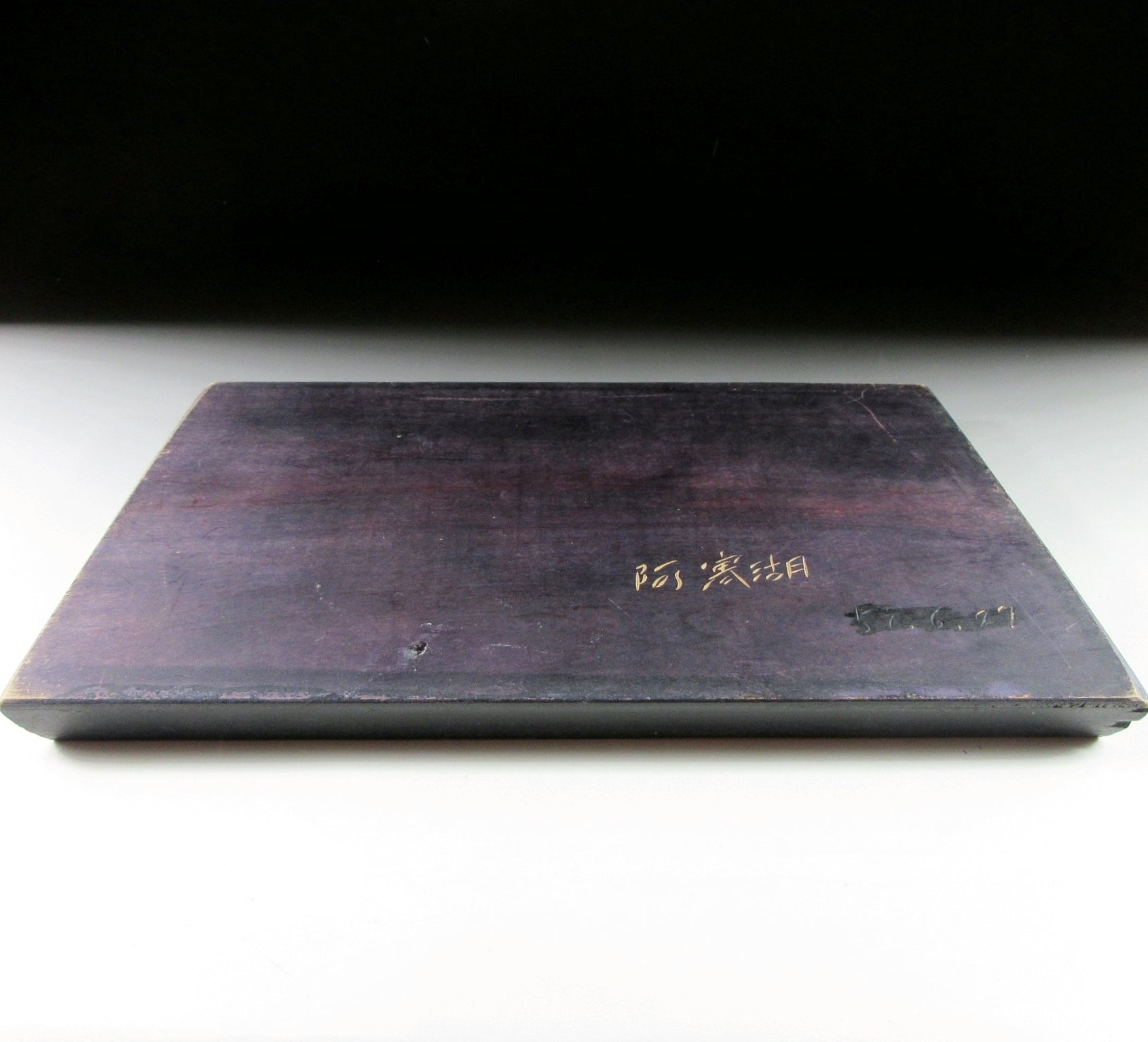 This listing is for a vintage higuma bear carving from the northern island of Hokkaido dated Showa 51(1976). The texture of the fur is rigorously carved, and the bear has a salmon in its mouth. The entire bear has been fashioned from one single piece of wood, and comes with a display board. This piece is a little unusual in that it has reddish coloured lacquer along its back, it’s a nice variation for those looking for something a little different.