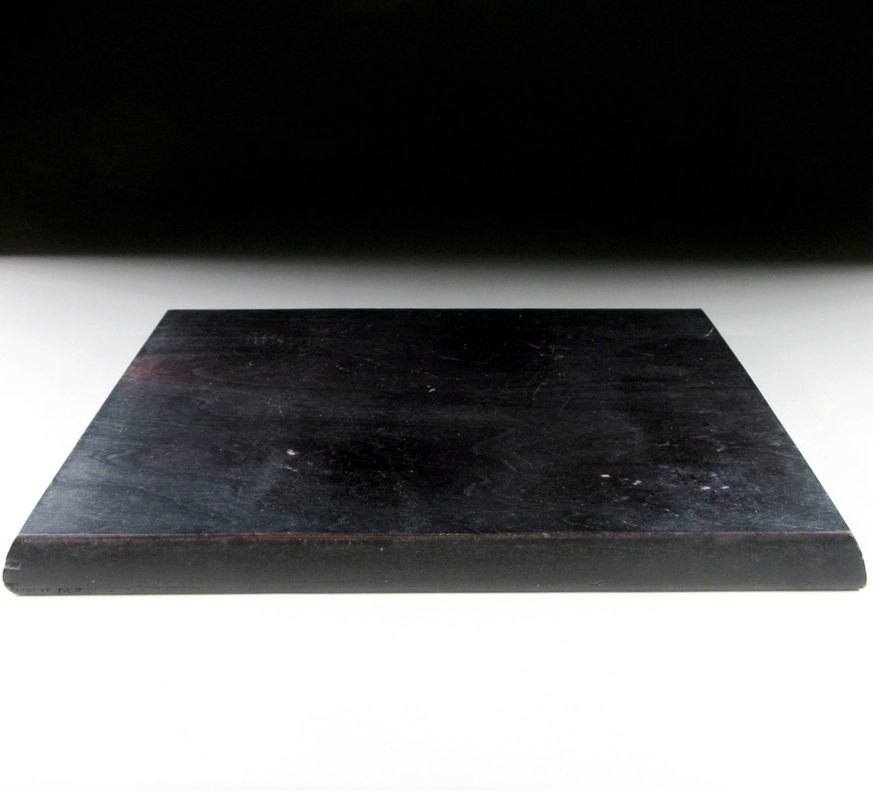 The bear has some dust build up and there’s some minor wear on the lacquer. The date is covered with marker on the bottom of the board, and there’s some wear along the edges and some light scratches and scuffing.