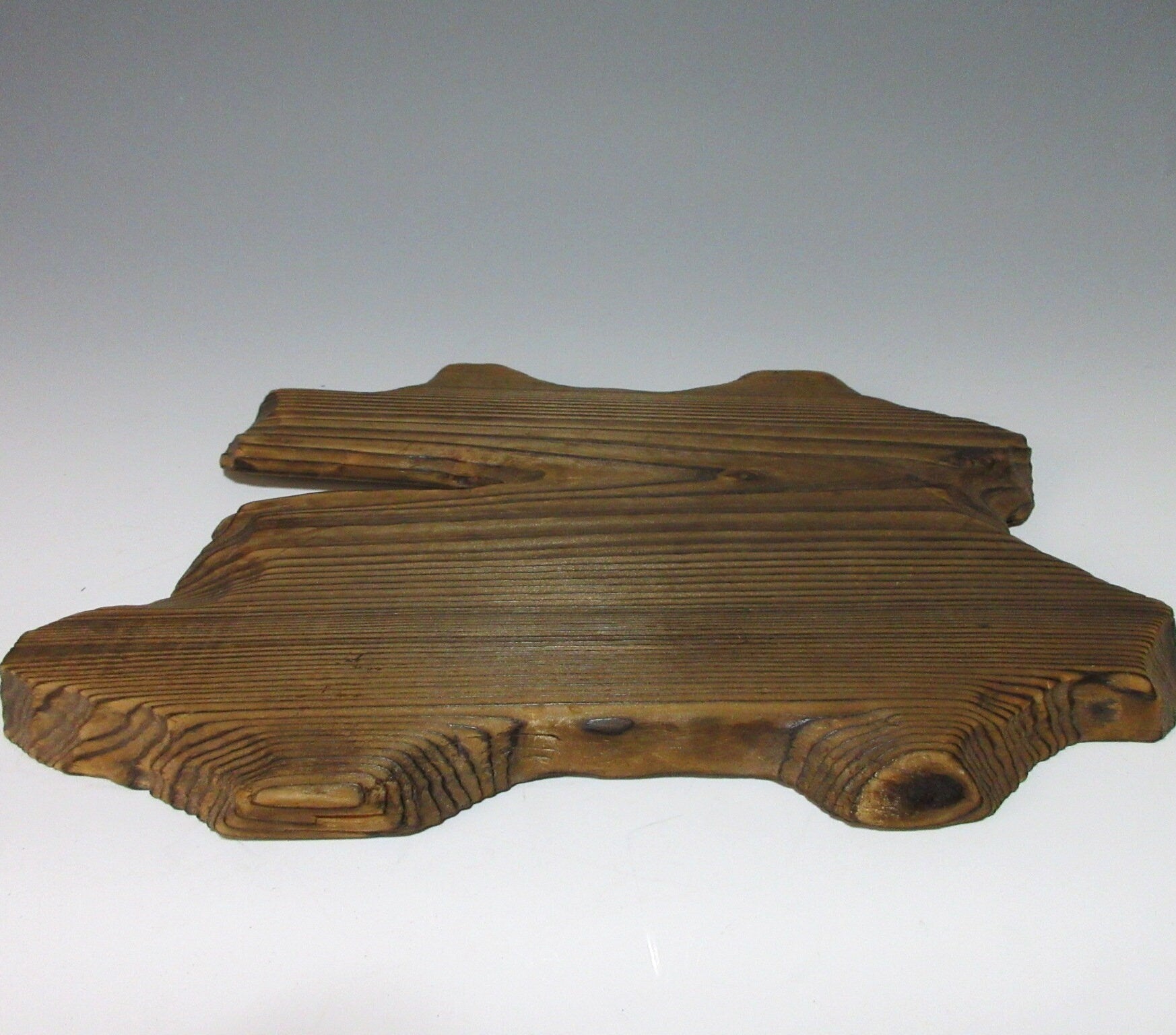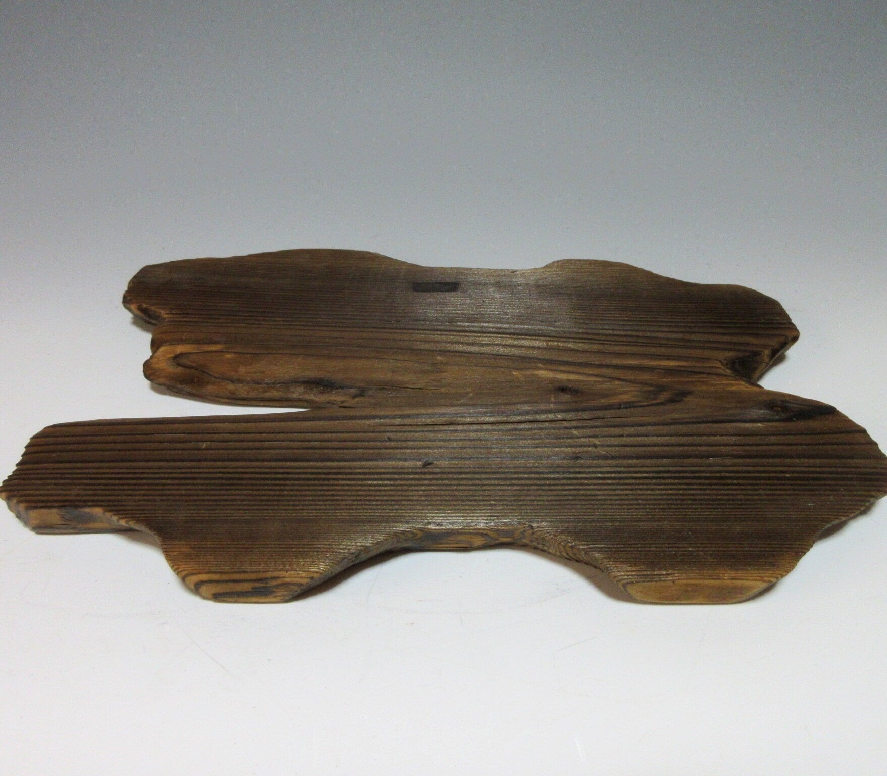 This listing is for a vintage higuma bear carving from the northern island of Hokkaido, and it was made about 50-60 years ago. The fur is wonderfully textured from where the tools have rigorously worked the surface, and it’s fashioned from a single piece of wood. This particular bear also comes with a wooden display board.