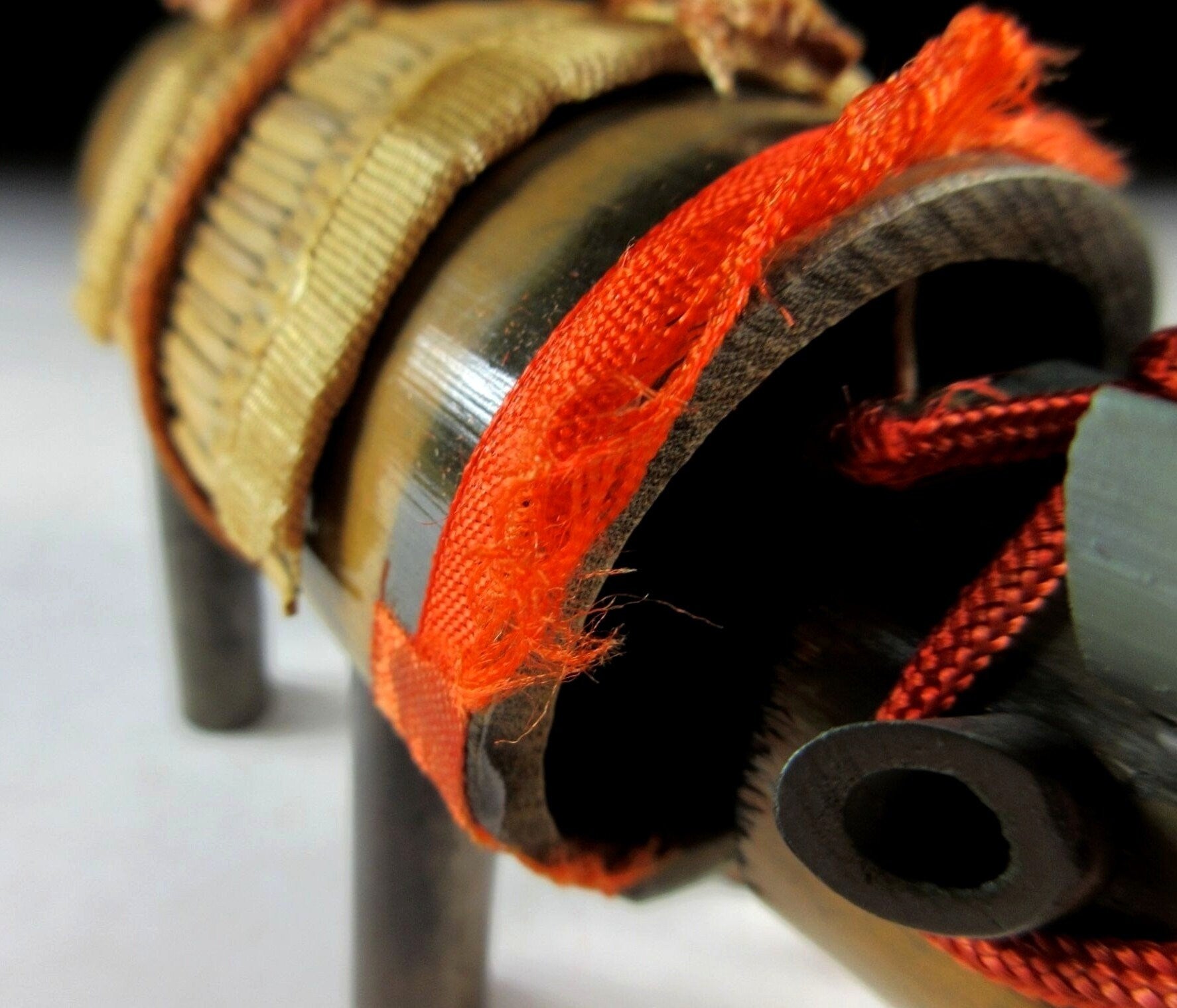 This listing is for a ‘kibi ushi’ folk toy from Tsuyama city in Okayama. It is made of bamboo and features a tatami saddle as well as fabric and string trim. This piece is quite old, and its natural bamboo colour. Kibi ushi are usually painted black, this one is a little more unusual. Please read below regarding the condition of the item, and please check the last three photos.