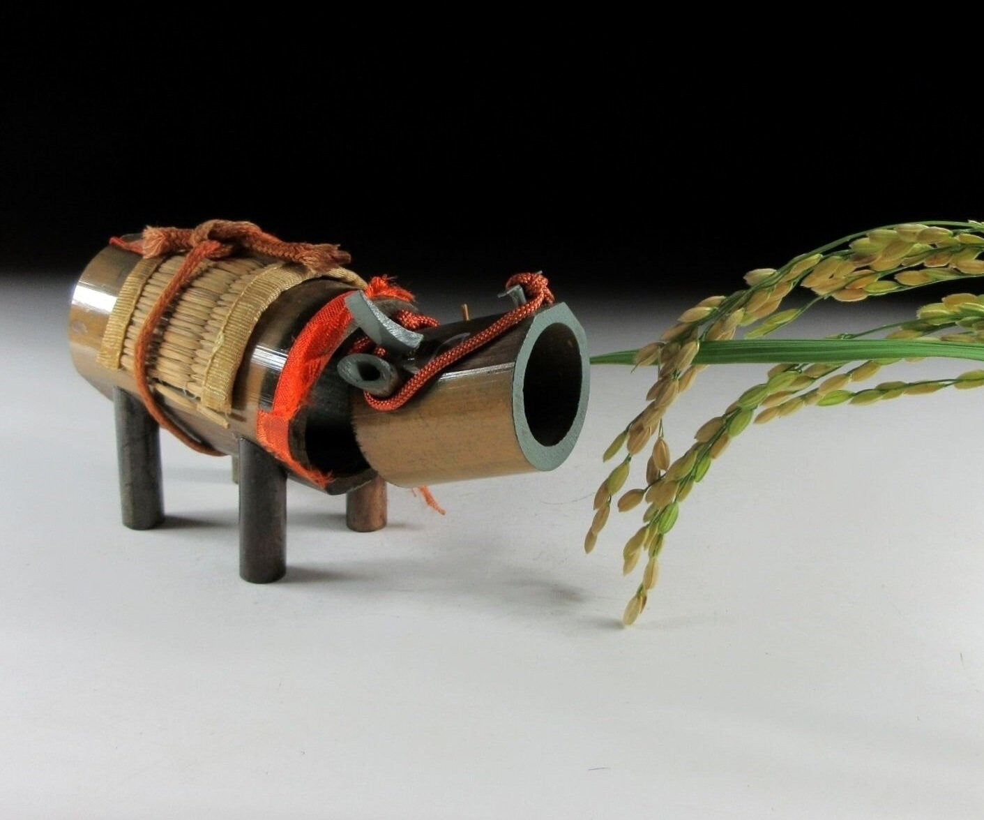 Tsuyama city is in Okyama is famous for its bamboo crafts, especially ‘Kibi Ushi’ bamboo cows. Kibi Ushi are folk toys modelled on the wagyu beef cattle raised in Sakushu in north-eastern Okayama Prefecture. The first kibu ushi was made in 1955, and since then artisans have expanded their range to include the 12 animals belonging to the Chinese and Japanese horoscope. Each critter is made from cut rings of bamboo and hand-painted one by one. Tsuyama Folk Art Company is one of the original bamboo crafts workshops in Tsuyama, and belongs to the Shiraishi family. It was established by Shiraishi Yasutaro and is now run by his son Yasushi (b.1953). In 1962 the Showa emperor visited Okayama and purchased a kibi ushi from the Shiraishi workshop, resulting in a sharp rise in popularity. **Fellow sellers, this information was researched by Kominka Zakka and CANNOT be used in your own listings.