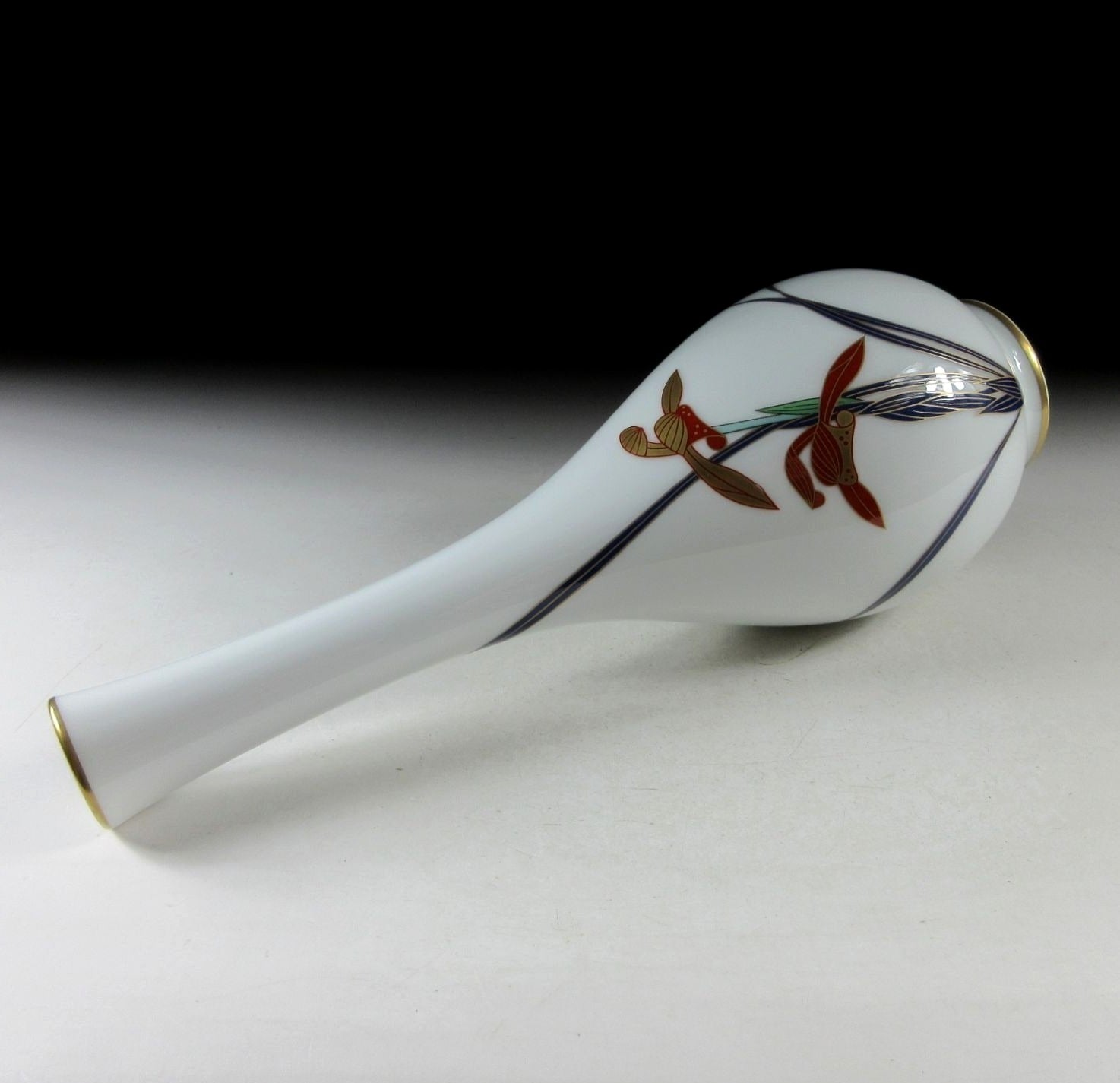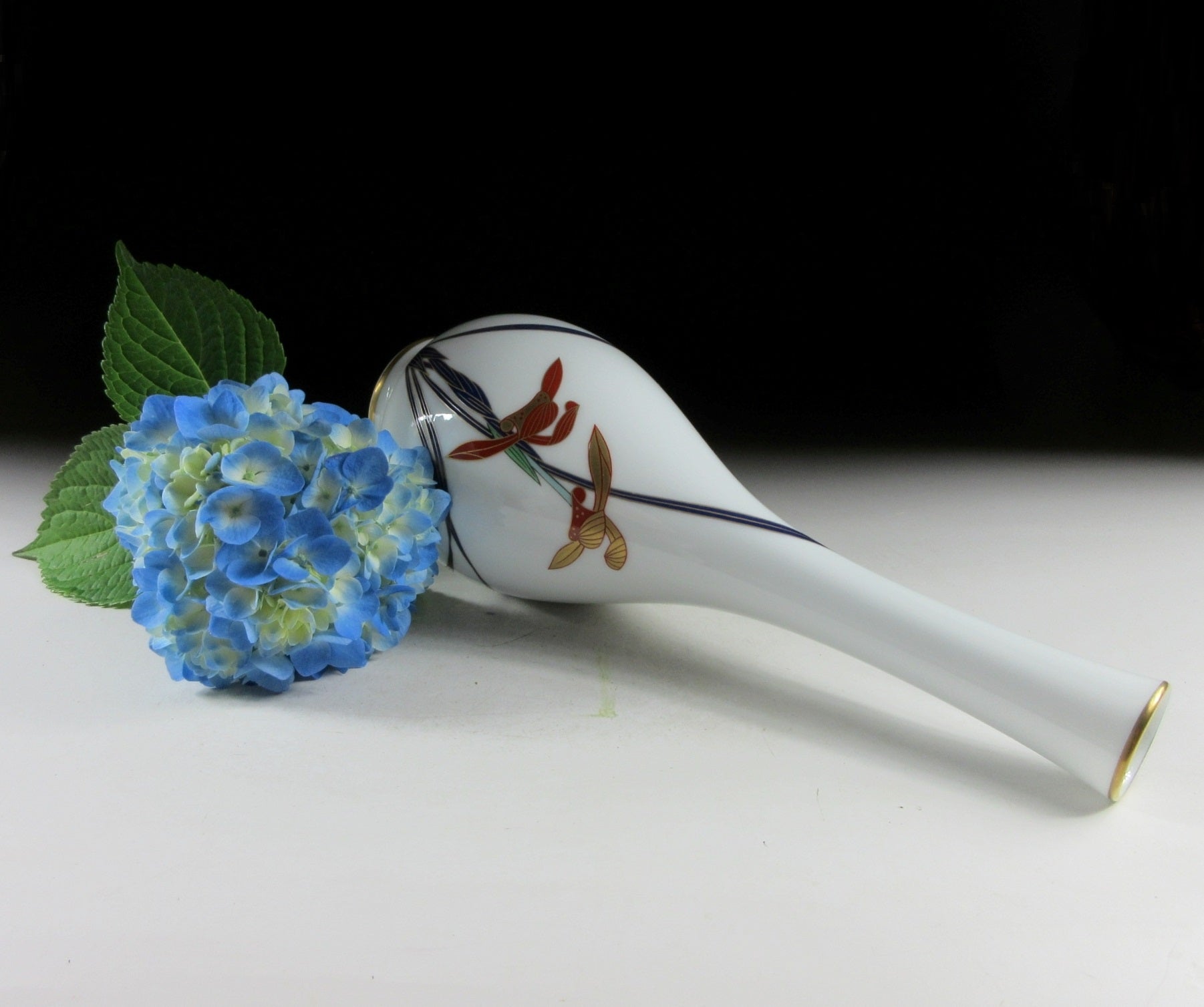 This listing is for a Koransha vase made around 20 years ago. It is made of porcelain and the front features an elegant orchid motif. The rim is trimmed with gold enamel, and the opening is just wide enough to accommodate a few thin stemmed flowers. The Koransha mark can be found on the bottom, sorry no box.