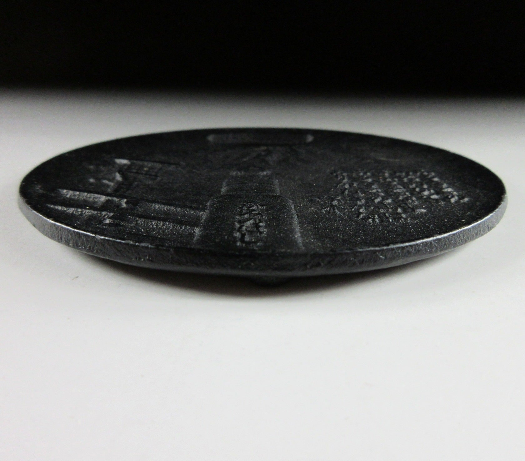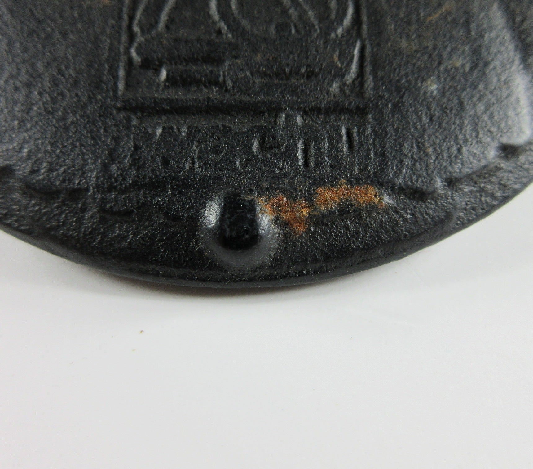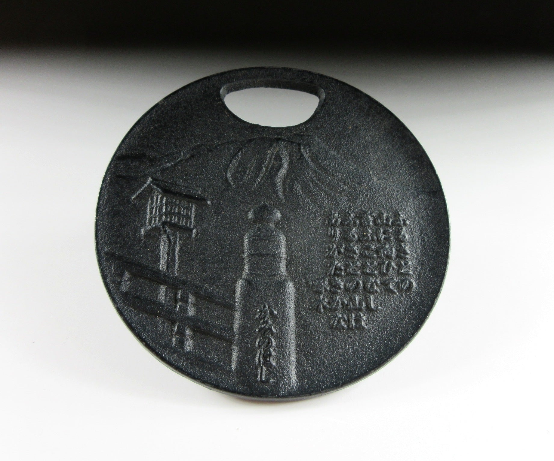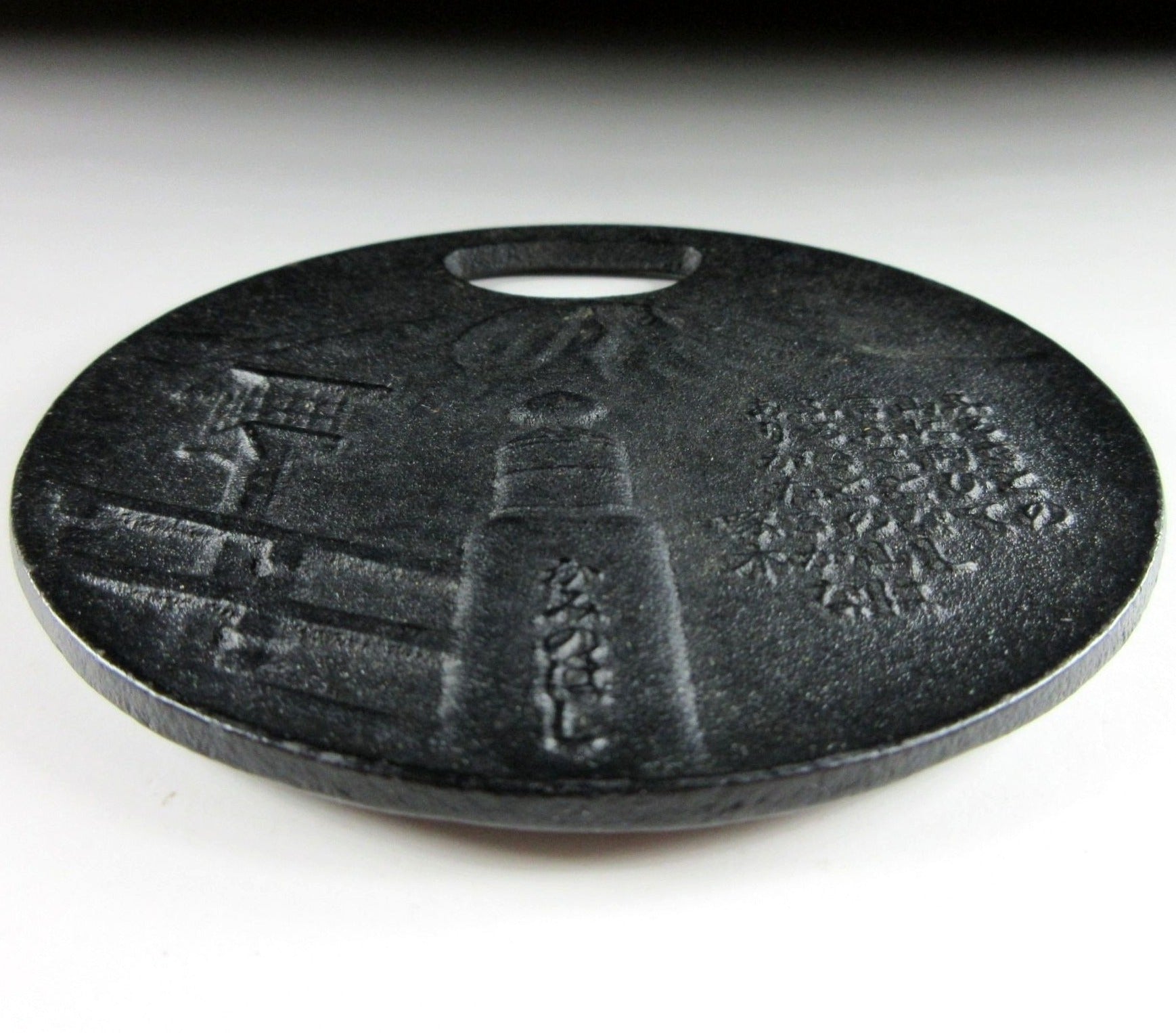 This listing is for a vintage Nambu tekki bottle opener made around 20-25 years ago by Iwachu Cast Ironworks in Morioka, Iwate Prefecture. It is made of cast iron and is a commemorative item from the Iwachu Ironware museum. The front is decorated with Mt. Iwate and the Upper Bridge in Morioka city, and the back features Iwachu’s tetsubin logo.