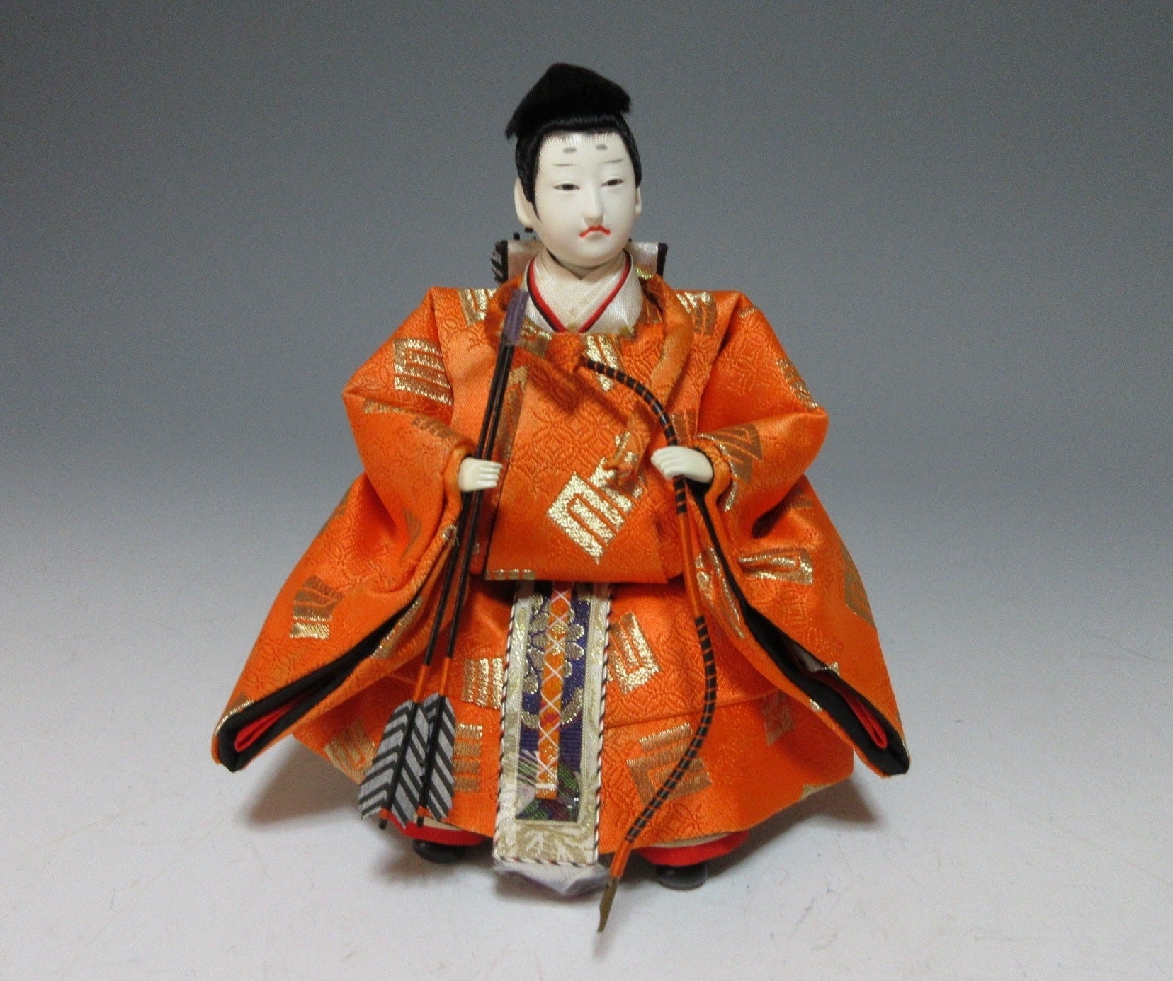 This listing is for a vintage hina ningyo doll made about 20 years ago. This particular doll is ‘U-daijin’, one of the imperial guards known as Zuijin. Zuijin are modelled on the ministers from the ancient imperial court. There’s the Minister to the Right (U-daijin) representing strength, and the elderly Minister to the Left (Sa-daijin) who represents wisdom. The doll in this listing is U-daijin, a young figure usually depicted carrying a bow and arrows. Zuijin occupy the fourth tier of a Hina doll display. This doll is in working condition and ready for display.