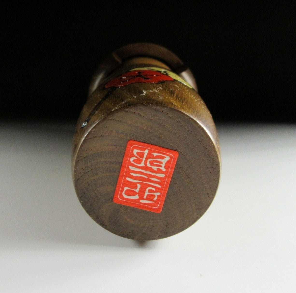 The Usaburo Kokeshi workshop was established in 1950 by Okamoto Usaburo (1917-2009). Okamoto spent his early years working with artificial stone and metal, but switched to making kokeshi at 33 years old. In 1979 he developed a system for mass-producing kokeshi with the help of machines, thus the Usaburo studio became one of the biggest producers of kokeshi in Japan. The Showa Emperor visited the workshop and purchased Okamoto’s masterpiece named “Camellia in Winter”. Today around 15,000 kokeshi are produced each month using high-quality wood from within Gunma. **Fellow sellers, this information was researched by Kominka Zakka and CANNOT be used in your own listings.
