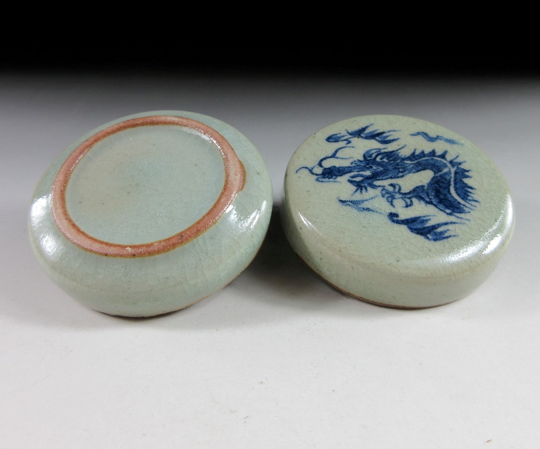 This listing is for a vintage kogo made around 12 years ago. It is wheel-thrown and the lid is decorated with a blue dragon. Its size and shape is suitable for holding both woodchip and kneaded incense, though pottery kogo are typically used for kneaded incense during the cooler months. This piece was most likely made to commemorate the Year of the Dragon in 2012.