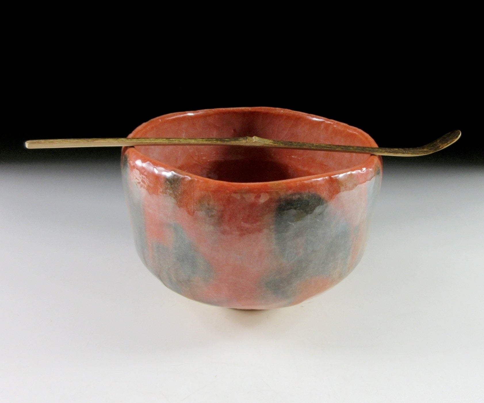 Raku ware refers to low-fired ceramic ware first made in Kyoto by the Raku Family, its origins going as far back as the 16th century. It is traditionally characterised by being hand shaped rather than thrown. Raku is typically delicate, lightweight, and earthy to the touch. Aka (red) raku bowls are fired at 800 degrees, whilst the kuro (black) bowls can be fired up to 1200 degrees. The glaze for black bowls is made from crushed black stones retrieved from the Kamogawa River in Kyoto. Red bowls are coloured by adding translucent glaze over a pinkish clay body. When using raku bowls you should always wipe well with a warm cloth before use. It is possible to cause small cracks if you suddenly add boiling water.