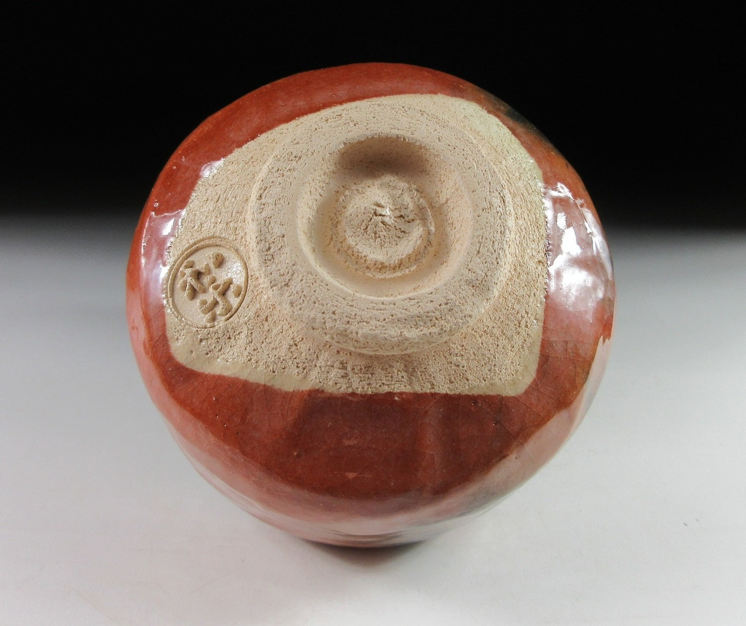 Waraku Kawasaki VII (b.1936, now known as Kizou) is a Raku-ware potter and the seventh generation master of the Waraku kiln lineage. Waraku was born in Kyoto and is the eldest son of the 6th generation. In 1954 he graduated from Hiyoshigaoka Ceramics High School and began studying at the Kyoto Prefectural Ceramics Training Institute's moulding and glazing department. He graduated two years later and began studying under his father. In 1970 he was appointed as the 7th generation master by Marshal-Admiral the Marquis Togo Heihachiro. Togo Heihachiro was an admiral of the fleet in the Imperial Japanese Navy and one of Japan's greatest naval heroes. In 1975 he was given the seal ‘Shin Waraku’ by former head priest of Daitokuji Temple Hotani Komei (1913-1995). In 1996 he held a 60th birthday exhibition at Daimaru in Kyoto, and 1998 marked the 180 year anniversary of the Waraku family tradition. The Waraku family kiln has been producing beautiful Raku pieces since the latter part of the Edo period, and their tea wares are reputed to be some of the best on the market. Waraku bowls are unique because they are wheel-thrown as opposed to hand-turned. Their organic appearance comes from the process of cutting and pinching. The kiln is now in its eighth generation and headed by Kizou’s son Waraku Kawasaki VIII (Motoo). **Fellow sellers, this information was researched by Kominka Zakka and cannot be used in your own listings.