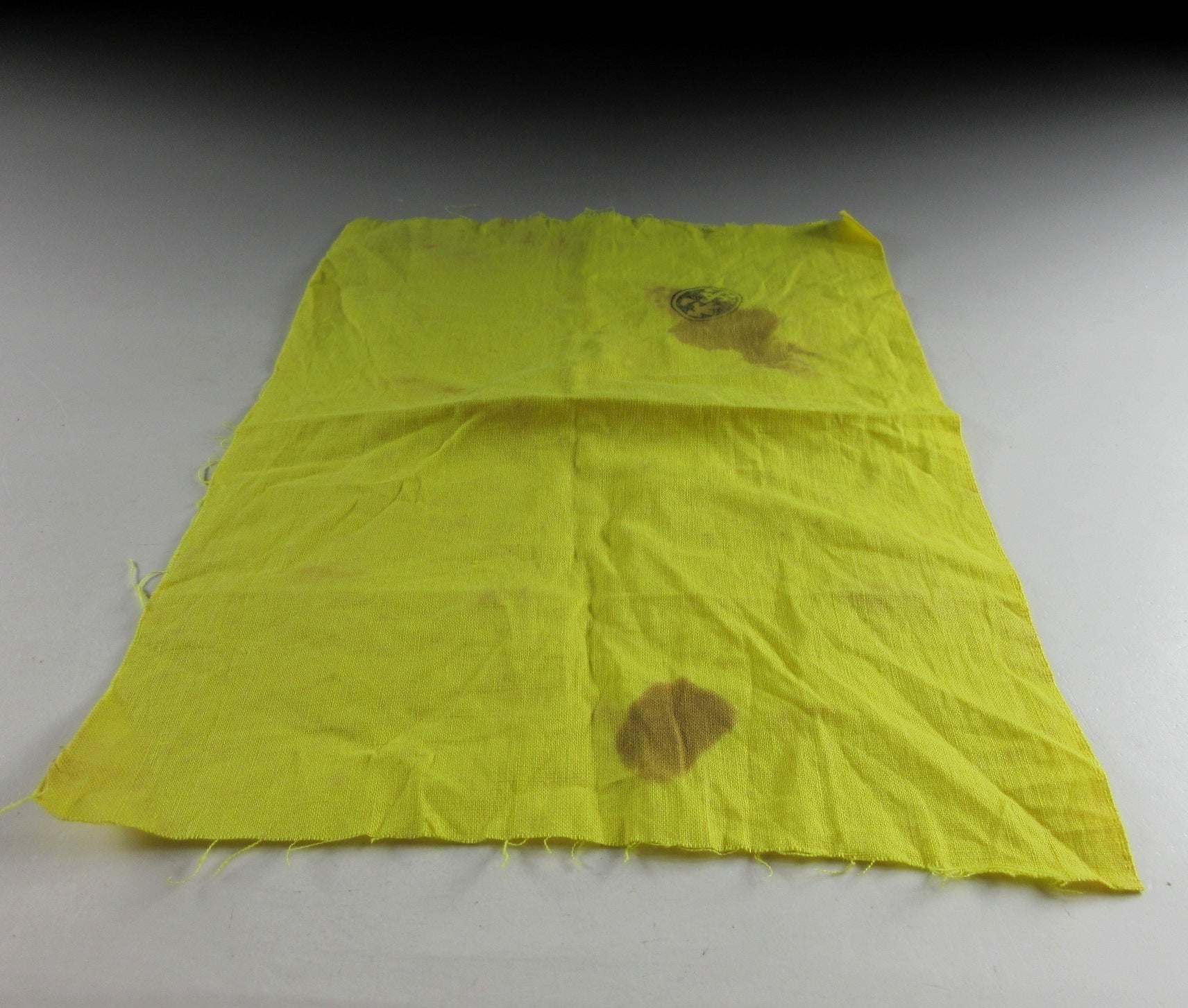It’s in good condition aside from a chipped glaze spot on the interior, and the cloth has two stains.