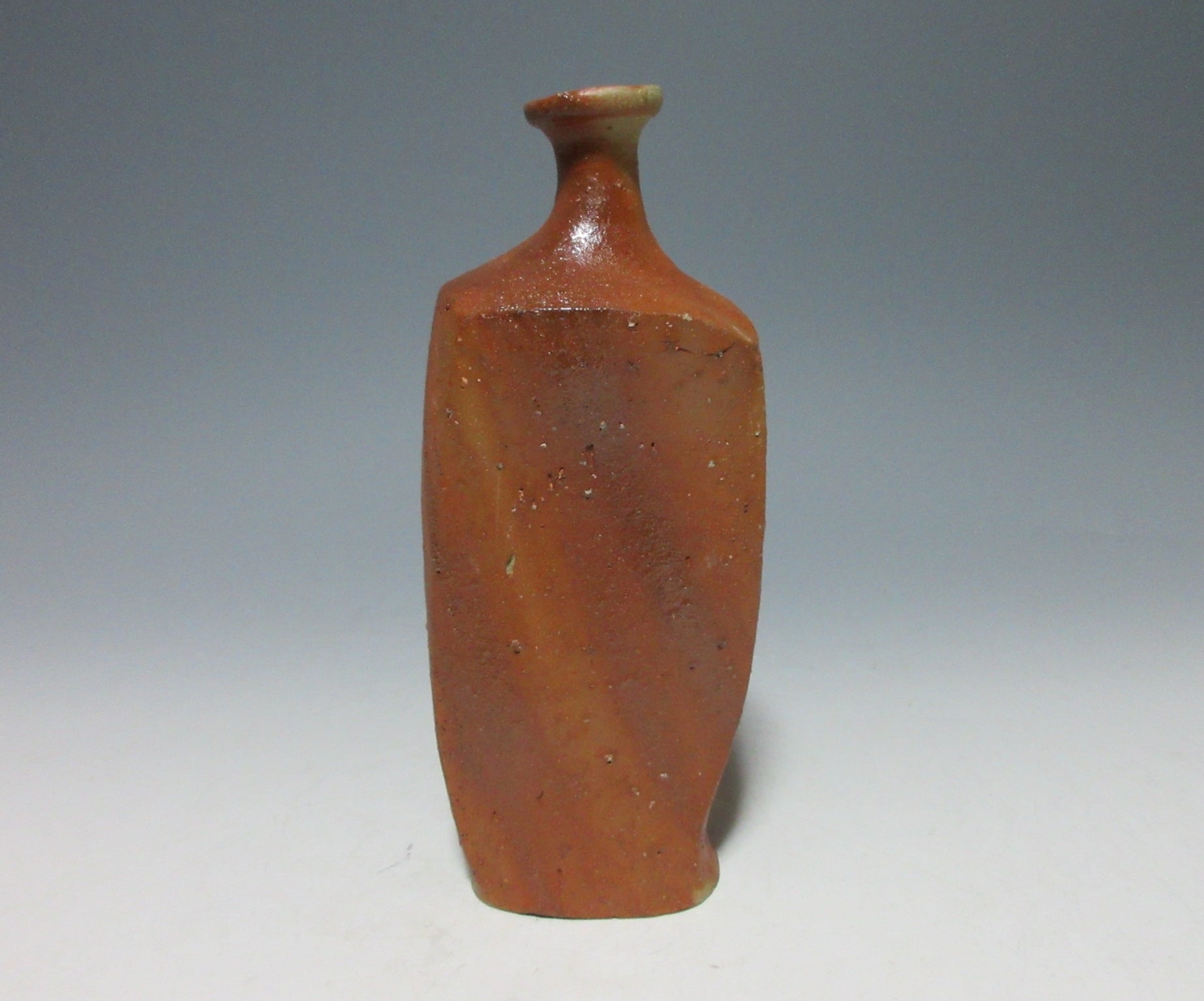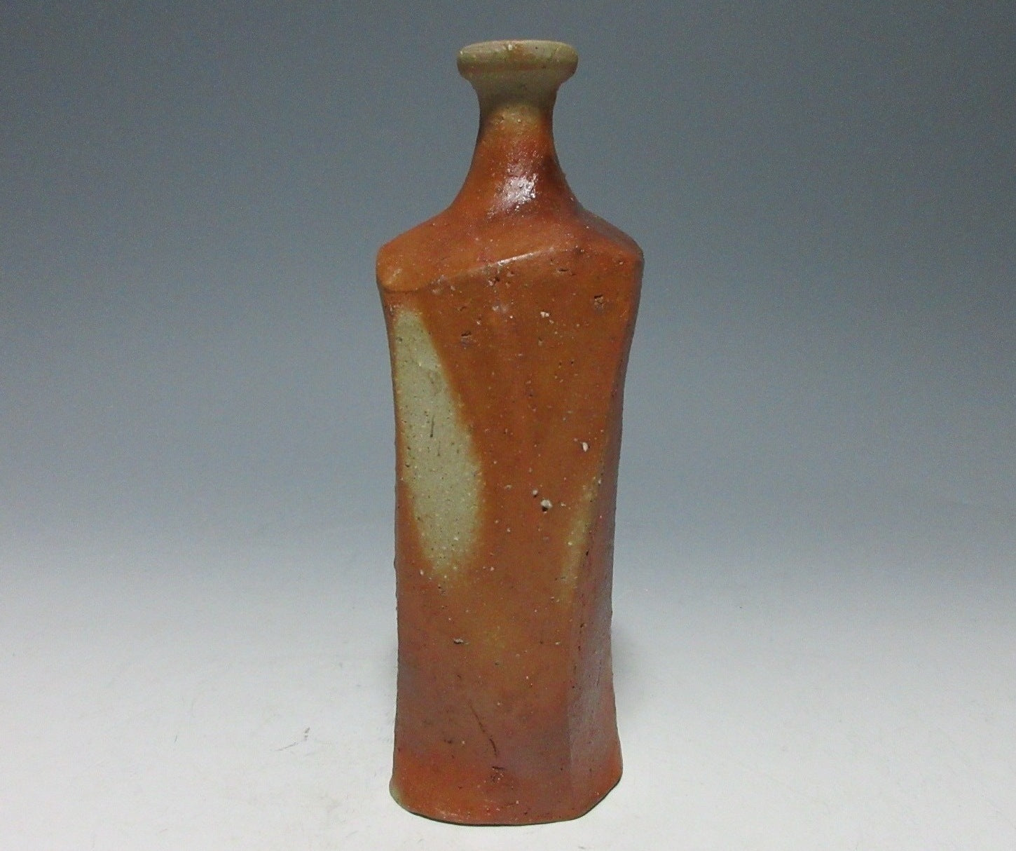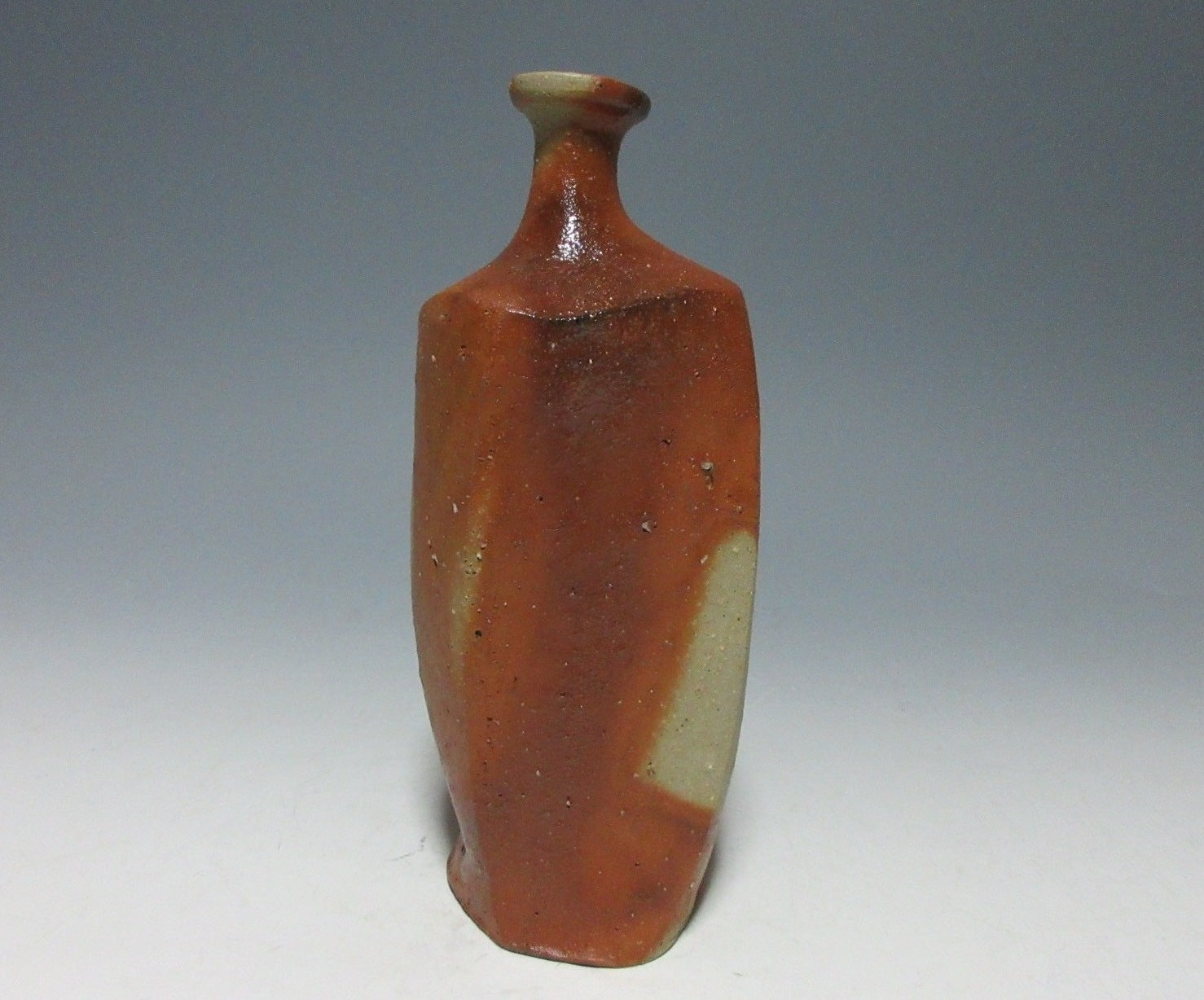 This listing is for a reasonably large chamfered Bizen-ware tokkuri made around 5 years ago by Christopher Ravenhall. It is wood-fired and the exterior is scorched a deep red colour. The bottom also features red streaks known as hidasuki. Hidasuki refers to the process of wrapping wares with cords of straw, which are then fired off resulting brilliant shades of red. This piece is contemporary in style and would also make a wonderful vase. The signature of the potter can be found on the bottom, sorry no box for this one.