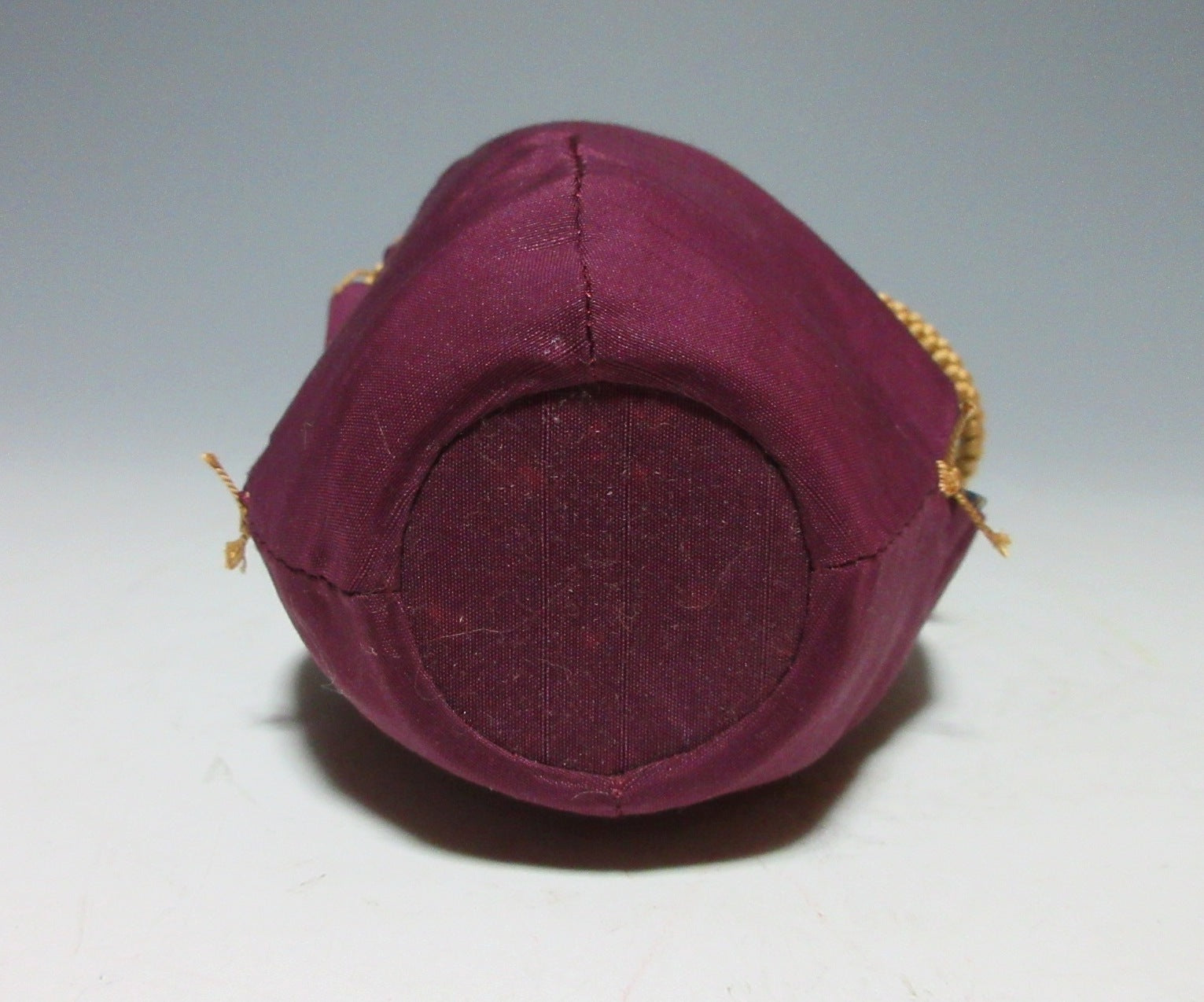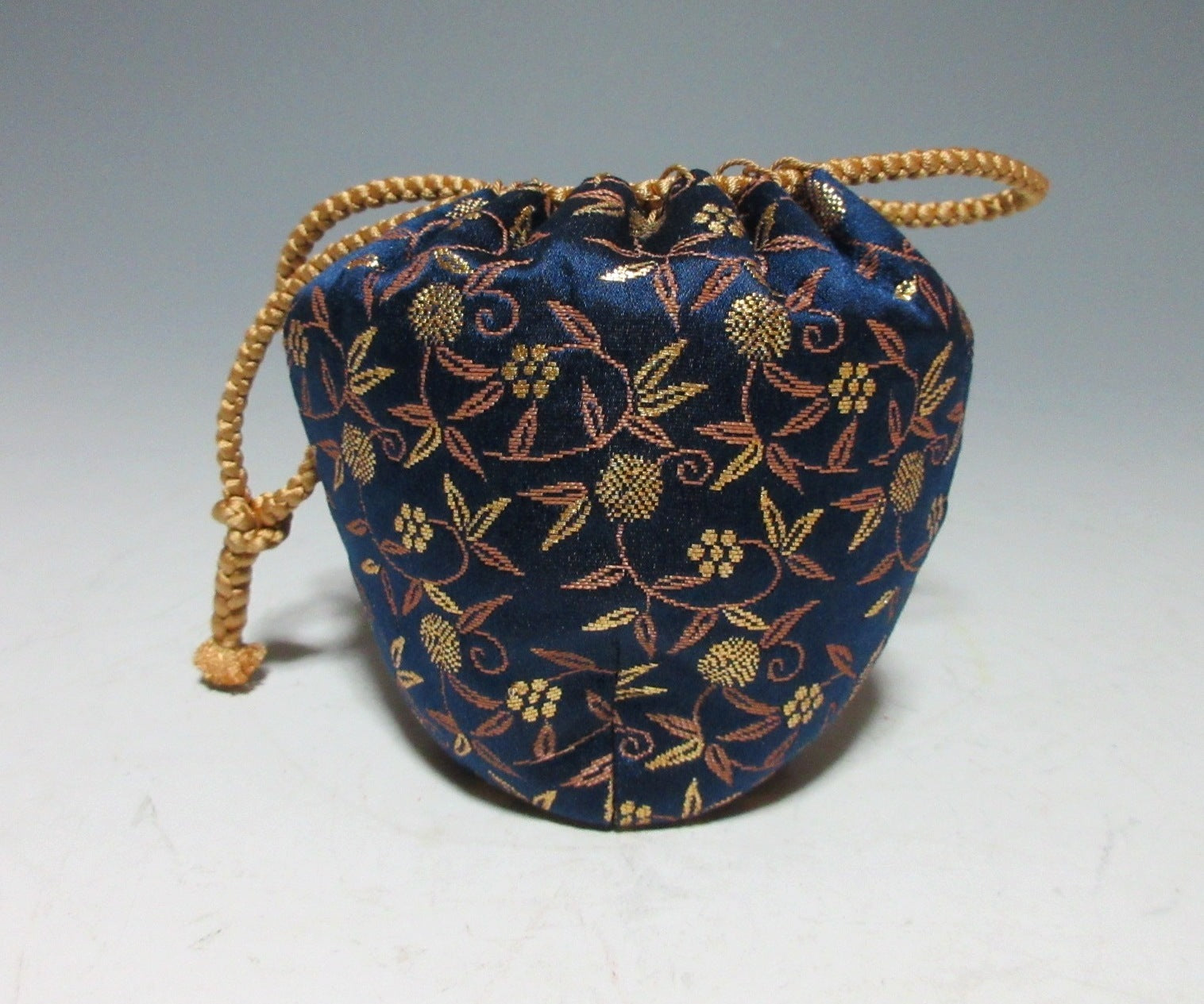 This listing is for a wooden natsume tea caddy with shifuku and tomobako. Natural wood natsume are ideally used during the summer months, especially in humid climates. This particular natsume also features black lacquer on the interior , and it is signed under the lid. The inscription on the underside of the box lid was written by Hotani Komei, head priest of Daitokuji temple. Hotani Komei (1913-1995) was a high-ranking priest of the Daitokuji school of the Rinzai sect, and was known as a master calligrapher. As a priest, he served as the chief abbot (representative) of the Daitokuji sect, and had made great achievements such as working hard to restore historic sites. This particular item also comes with a shifuku. The pattern is called ‘sasazuru’, a pine cone, bamboo, and plum textile originally from China during the Ming Dynasty 15th-16th century.