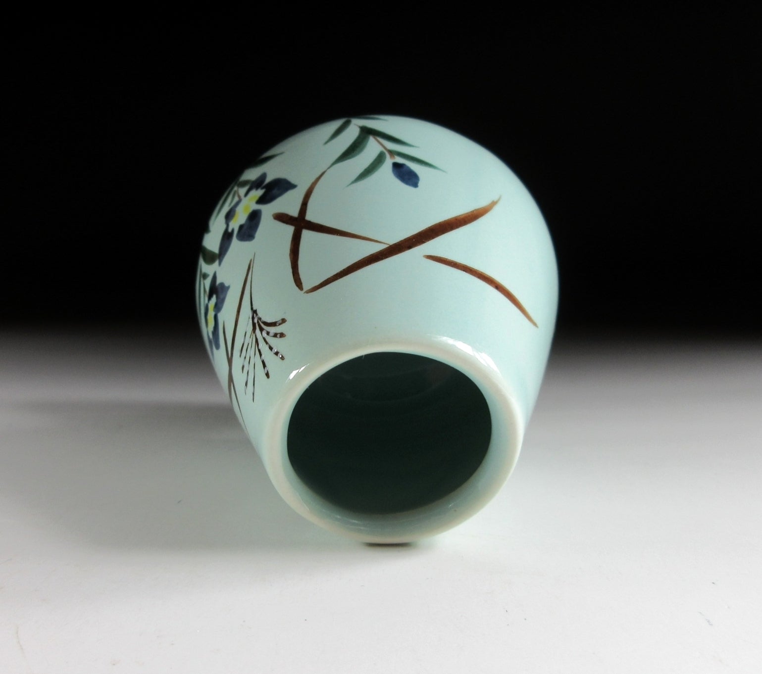 Kyo-ware originated in the 17th century in Kyoto and features overglaze enamel pigments on a porcelain base. The porcelain base acts as white canvas, allowing for beautiful and superior quality designs to be painted. Kyo-ware artisans traditionally produced chawan and utensils for the tea ceremony, however contemporary potters specialize in tableware, tea ceremony items, incense holders, and okimono. Kyo-ware was designated as a traditional craft in 1977.