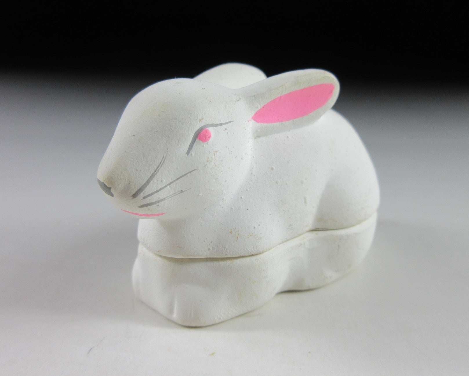 This listing is for a sweet little rabbit kogo made around 20 years ago by Yakushi Gama. The twelve animals and mythological beasts of the Japanese astrological calendar are known as junishi in Japanese. Junishi kogo are very popular and they are usually decorated with auspicious symbols relating to luck and longevity, and they often feature bright colours painted with either glaze or gesso. The kogo in this listing is suited to holding kneaded incense, although the woodchip type may also be possible. Earthenware kogo are generally intended for holding kneaded incense during the cooler months. It comes with its original paper box, please read below regarding the condition of both items.
