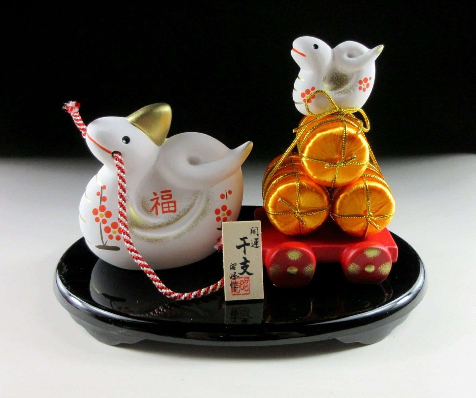 Japanese okimono figurines are decorative items used for display purposes. Junishi okimono are those commemorating the twelve animals and mythological beasts from the astrological calendar. The Japanese astrological calendar is known as eto, and the twelve creatures are called junishi. The Zodiac’s popularity peaked during the Edo Era, and it was then that junishi okimono production became more widespread. These days, potters and production kilns produce hundreds of junishi each year to welcome the coming New Year. These are often displayed in shops, restaurants, people’s homes, and in tea rooms.