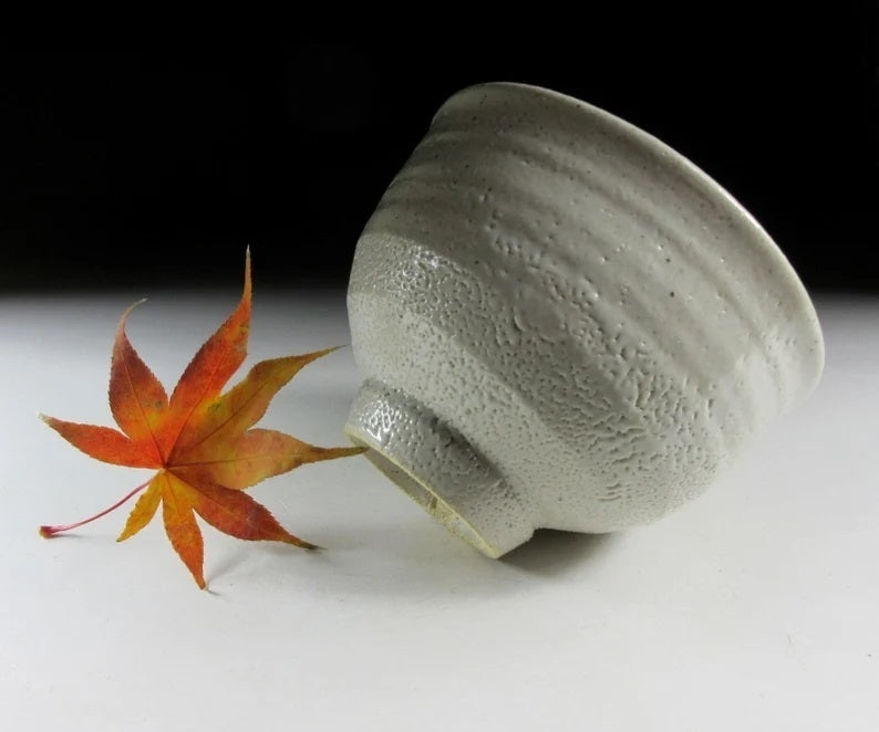 This listing is for a Mashiko-ware chawan made around 30-40 years ago by noted potter, Yamaguchi Tsutomu. It is wheel-thrown and coated in white straw ash glaze. This is a nice robust piece suitable for the cooler months, and perfect for those who prefer more modest pieces. The stamp of the potter can be found on the bottom, and it comes with its original signed wooden storage box. *PLEASE NOTE THAT THE CHASHAKU TEA SCOOP IS NOT INCLUDED IN THIS LISTING.