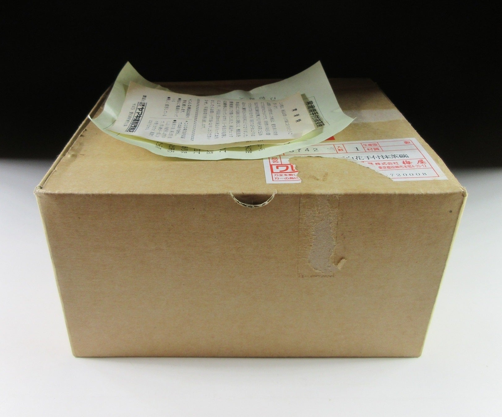 It’s in very good condition with no chips or cracks, however there are some very minor marks on the bottom. The paper box is in decent condition but the paper label is torn and there are tape marks.