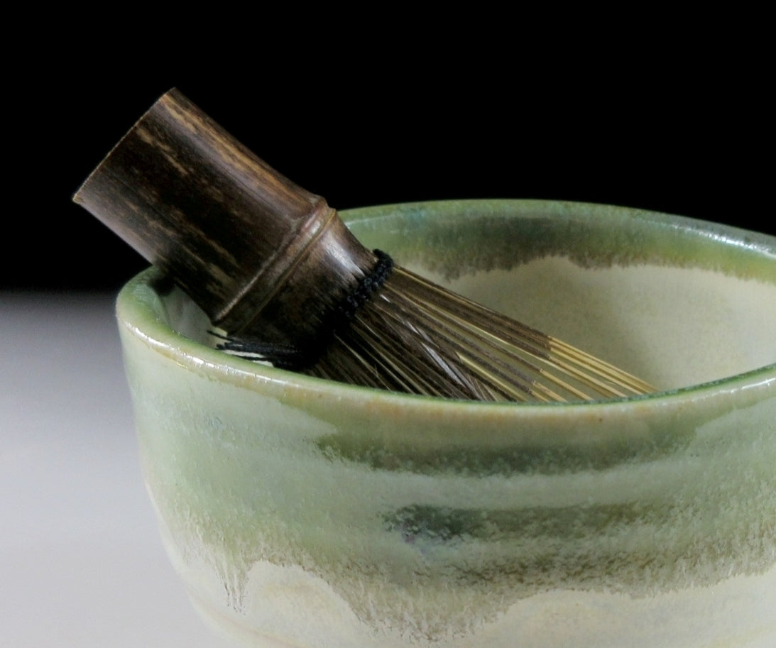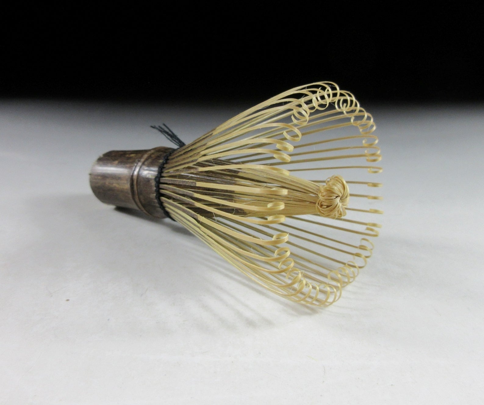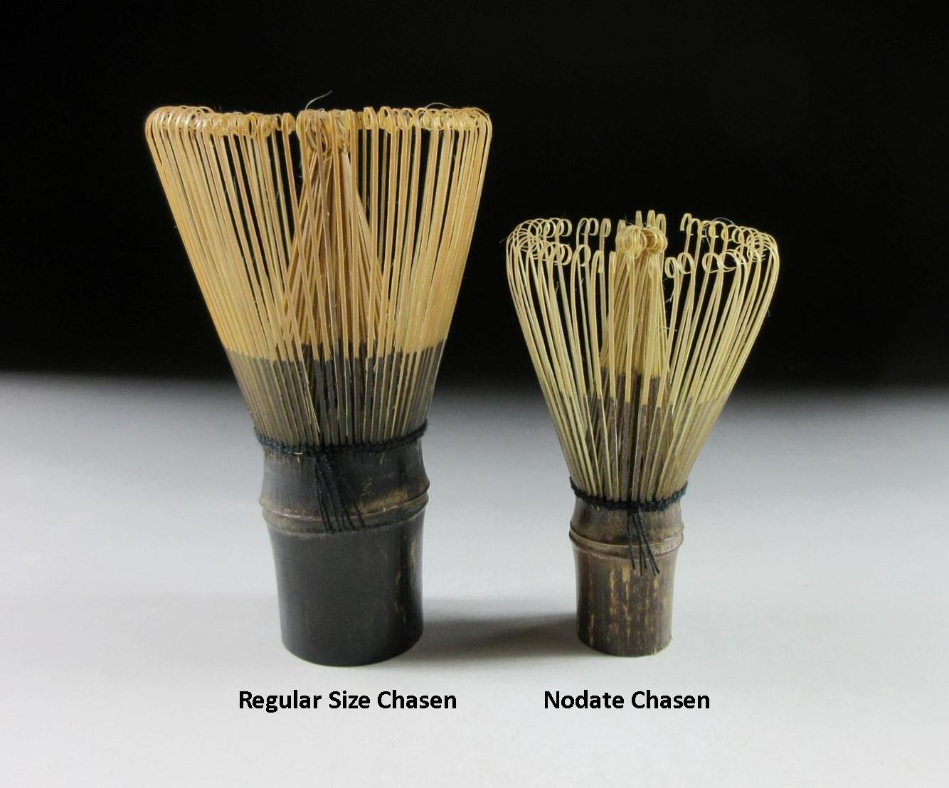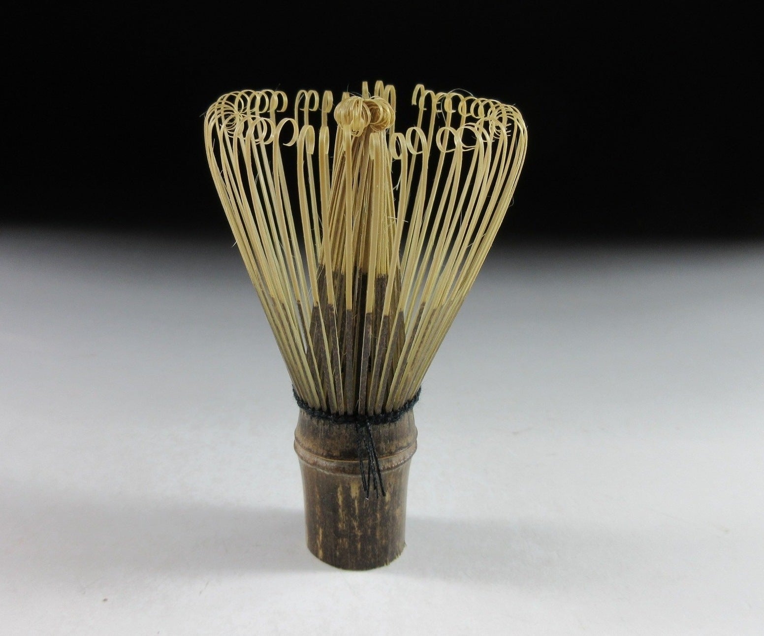 This listing is for a black bamboo nodate chasen made by Yamamoto Takizayikuya. The chasen is tulip shaped and split from one piece of bamboo into 100 small prongs. The 100 tine type is popular because more prongs result in more foam and a better frothy texture. Nodate chasen are smaller than regular size chasen and are intended for outdoor tea ceremony, we have included a photo so you can compare sizes. It comes with a plastic storage case, please note that this particular whisk is produced at Yamamoto Takizayikuya’s workshop in China.