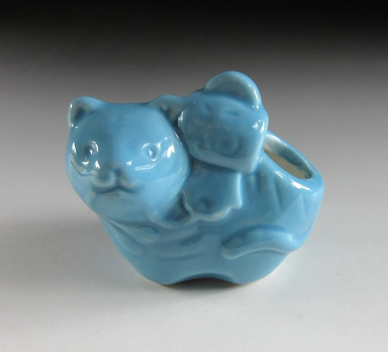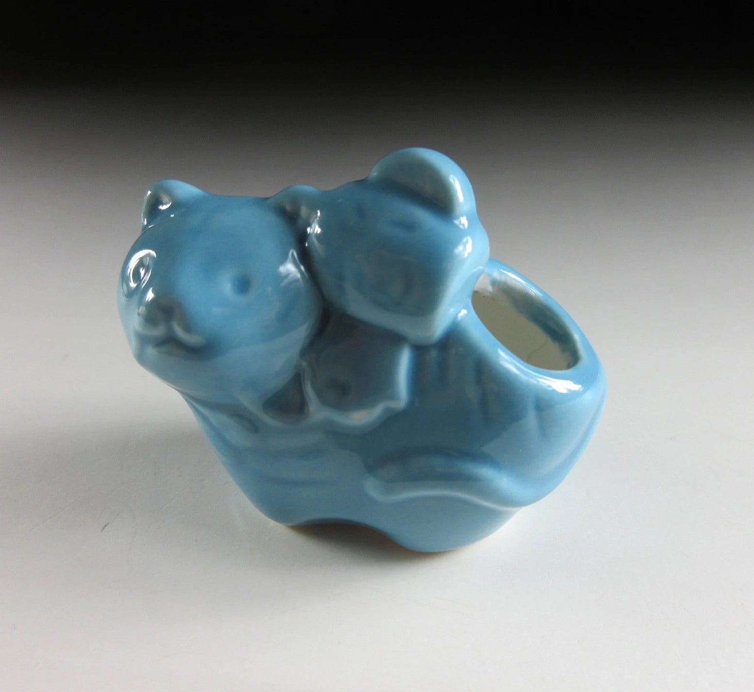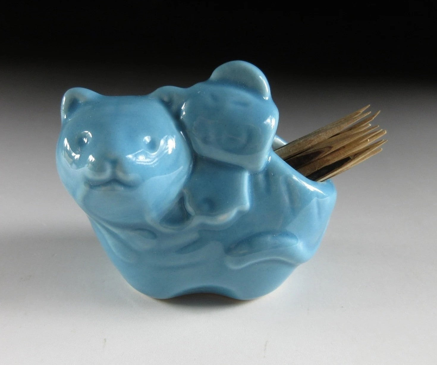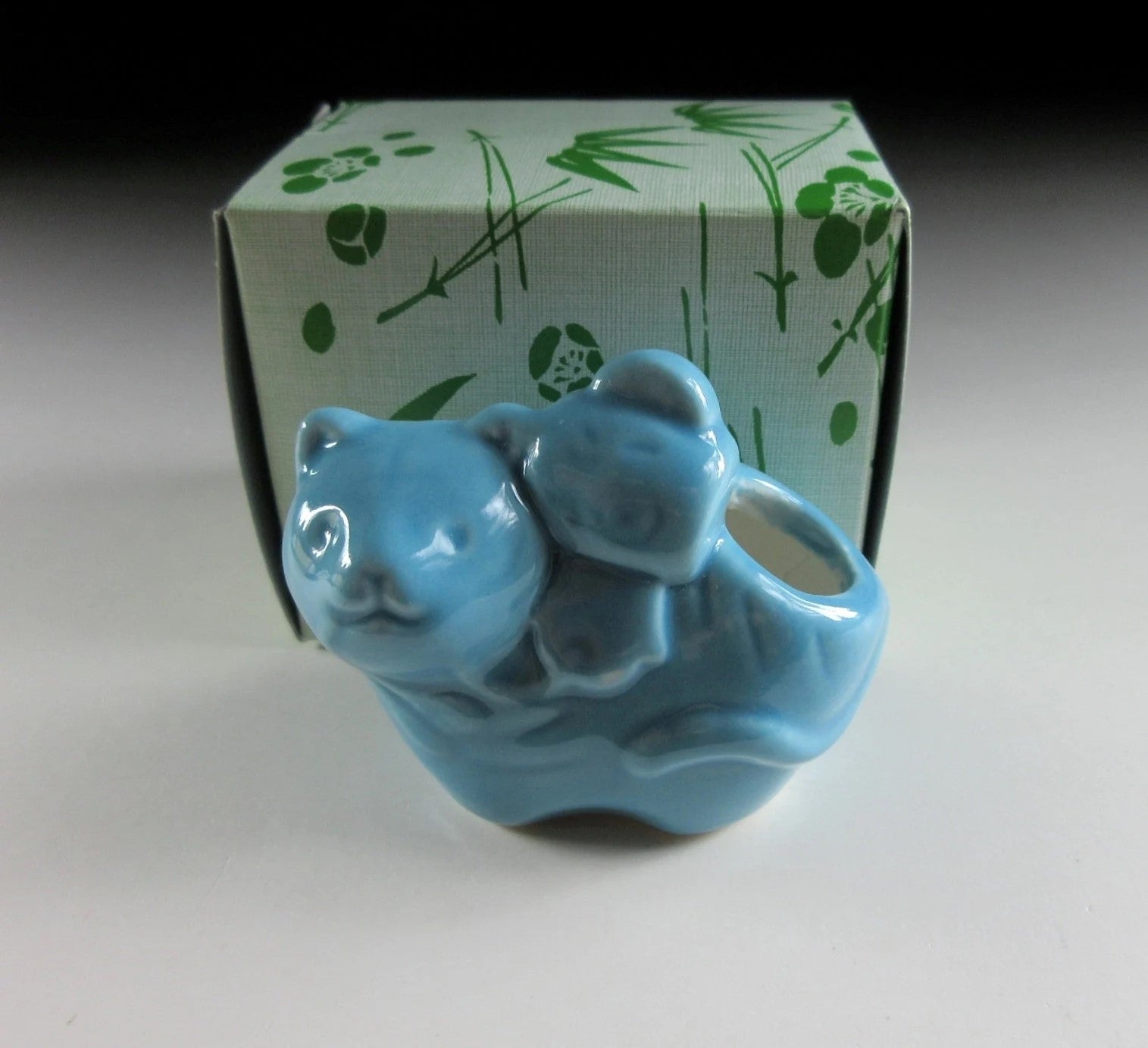 This listing is for a Year of the Tiger toothpick holder. It was made using a press mould and coated in blue glaze, and the decoration includes a uchide-no-kozuchi lucky mallet. It is believed that striking an uchide-no-kozuchi will bring anything you wish for, so they are symbol of good fortune. Toothpick holders like these are also ideal for growing air plants.