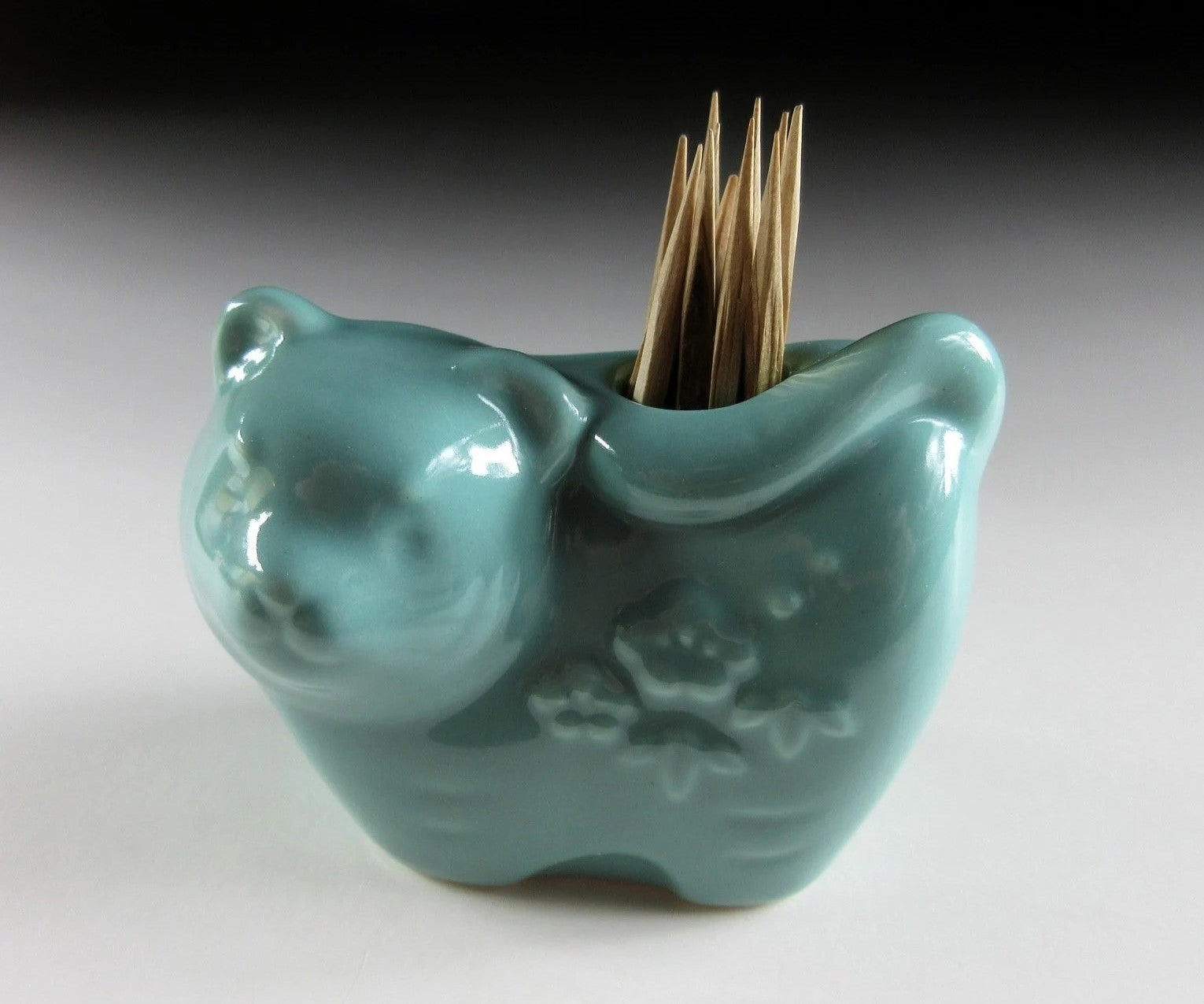 This listing is for a celadon glaze Year of the Tiger toothpick holder. It was made using a press mould and glazed a green-blue colour. Toothpick holders like these are also ideal for growing air plants.