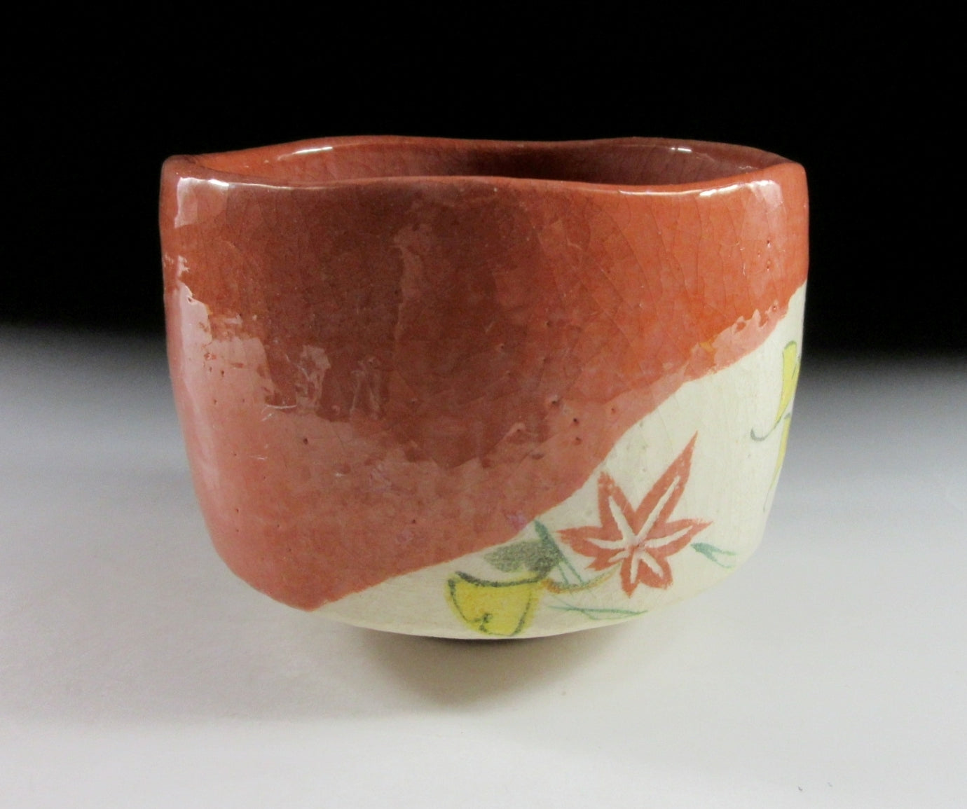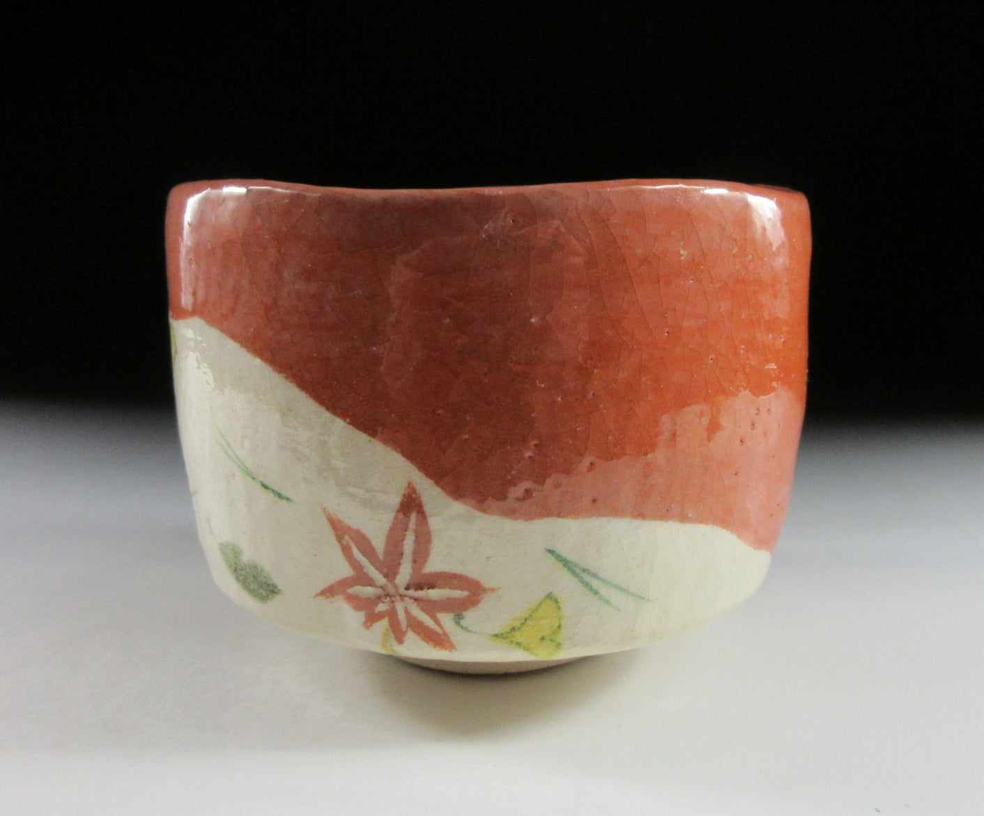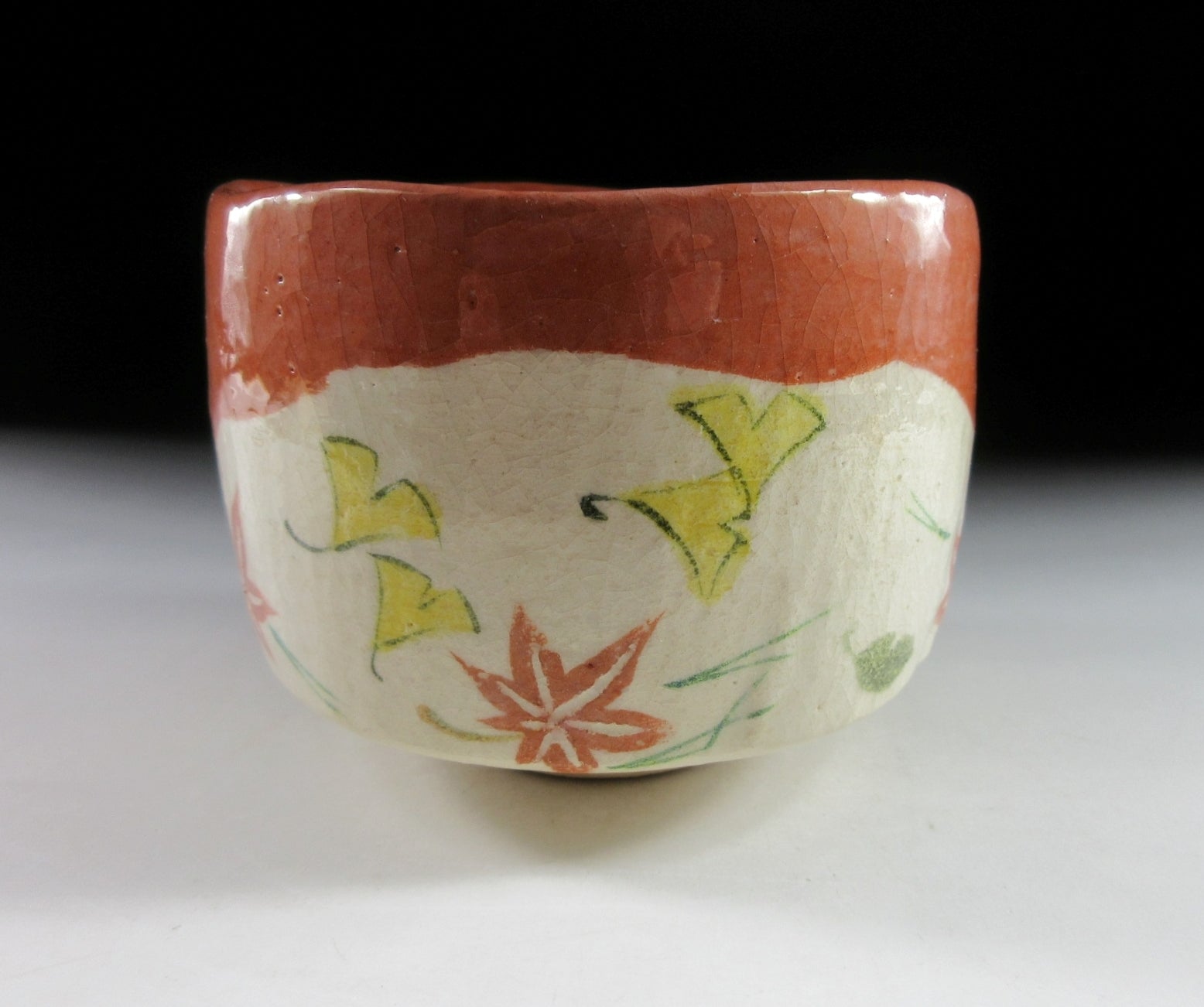 This listing is for a raku-ware chawan made around 10 years ago by noted potter, Yoshimura Rakunyu III. It is hand-turned and the front is decorated with a ‘fukiyose’ leaves in the wind pattern. This pattern is traditionally linked to autumn, and usually consists of momiji leaves, ginkgo and matsuba pine needles. The stamp of the potter can be found on the bottom, and it comes with a paper storage box. *PLEASE NOTE THAT THE CHASHAKU TEA SCOOP IS NOT INCLUDED.